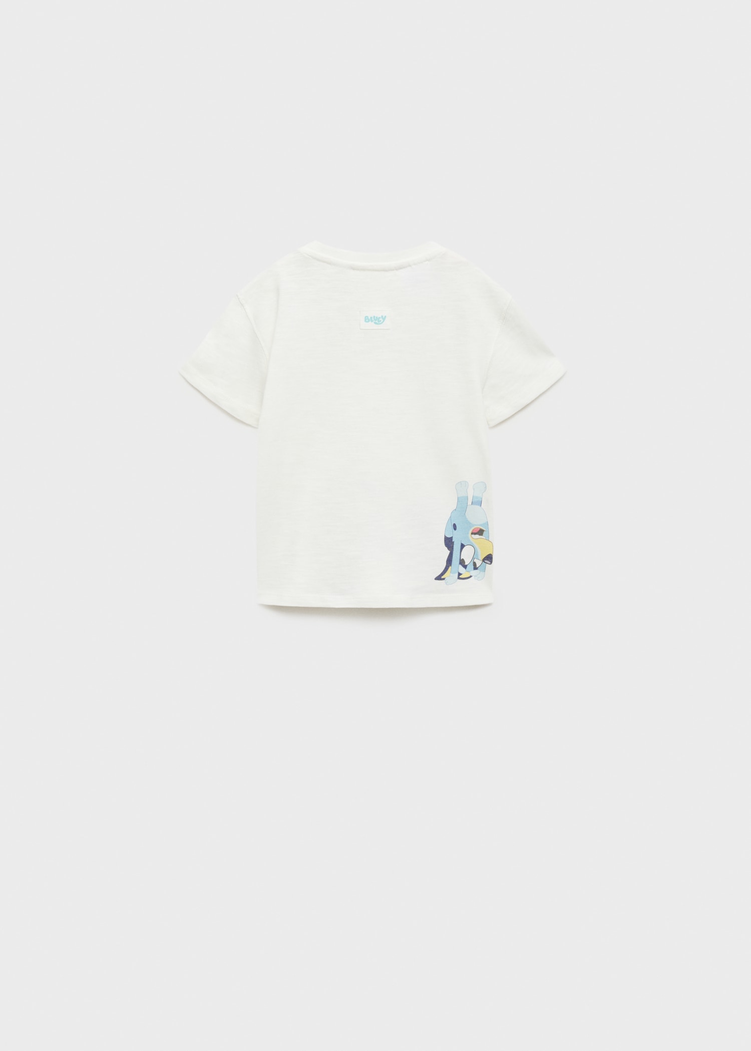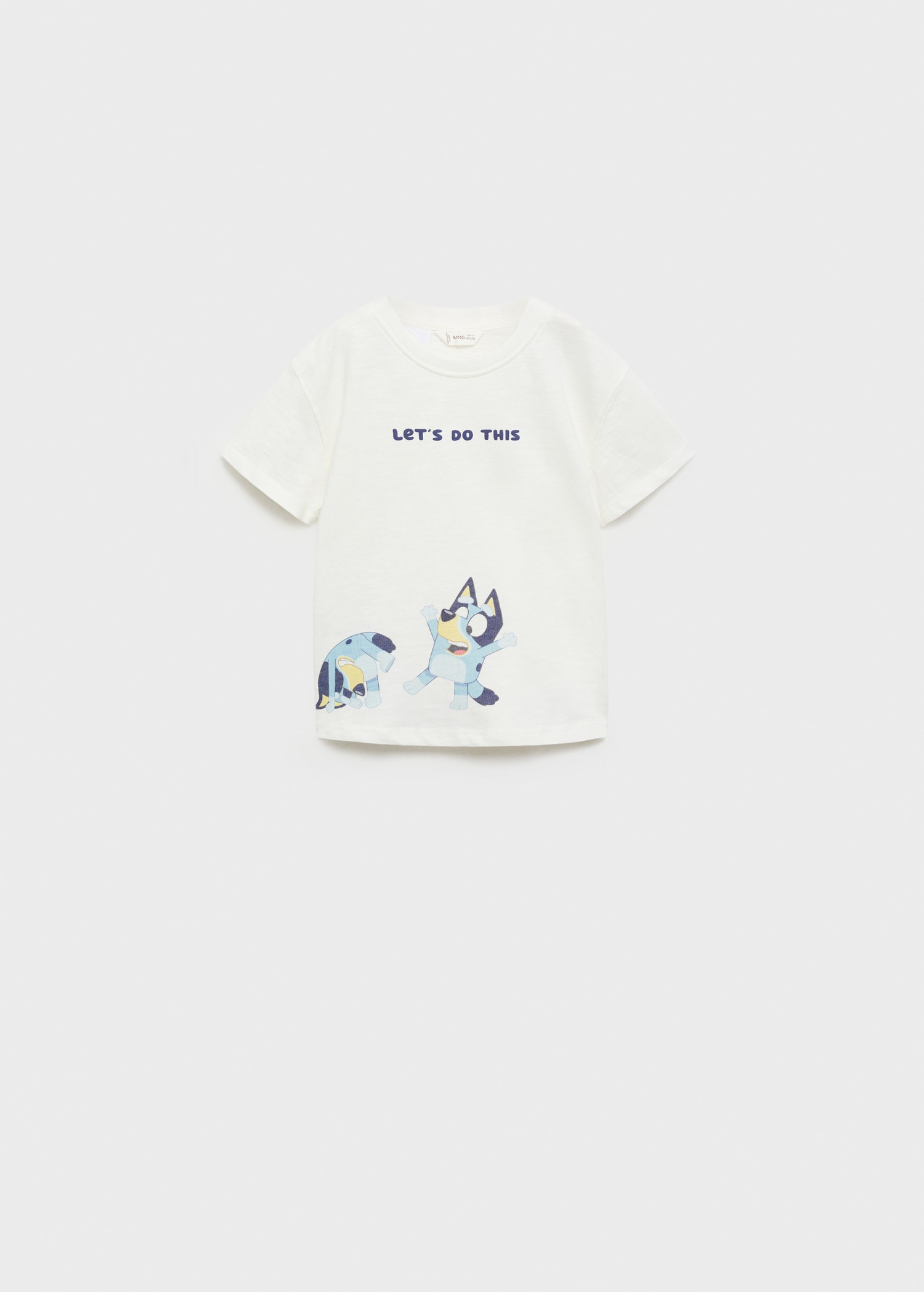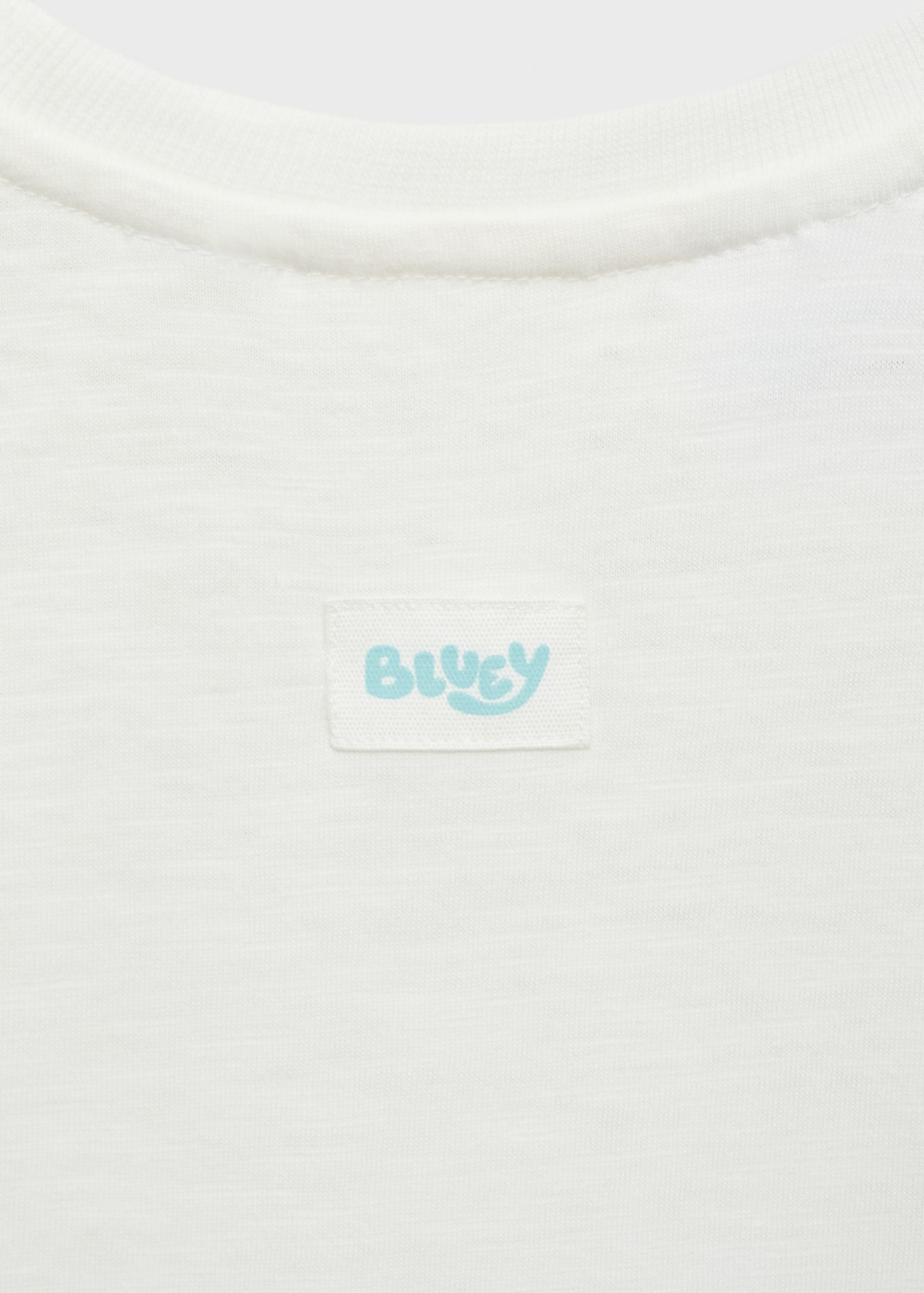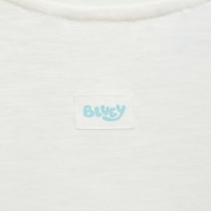 100% cotton fabric. Printed design. Bluey Design. Straight Design. Crew neck. Short sleeve. Front and back draw. Licenses