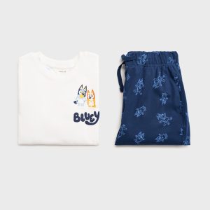 Licenses. 100% cotton fabric. Long design. Front print design. Bluey Print. Round Neck. Long Sleeve. Pants with elastic waistband and adjustable drawstring