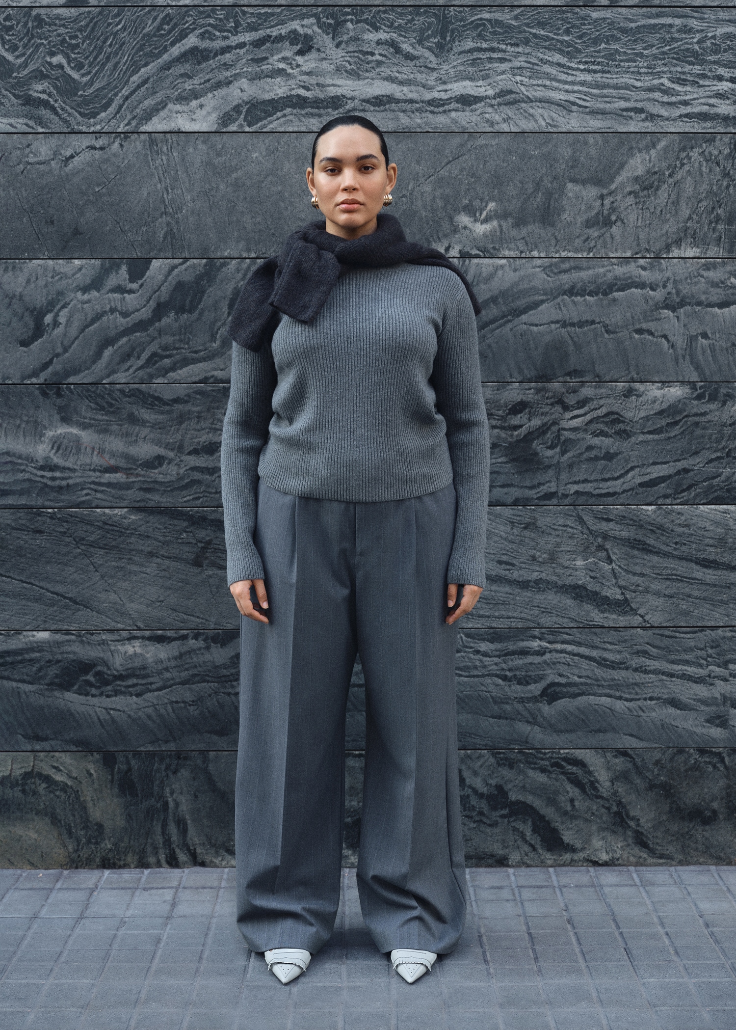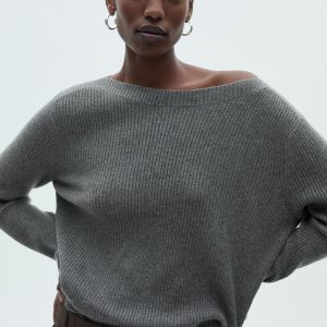 Boat neck ribbed sweater