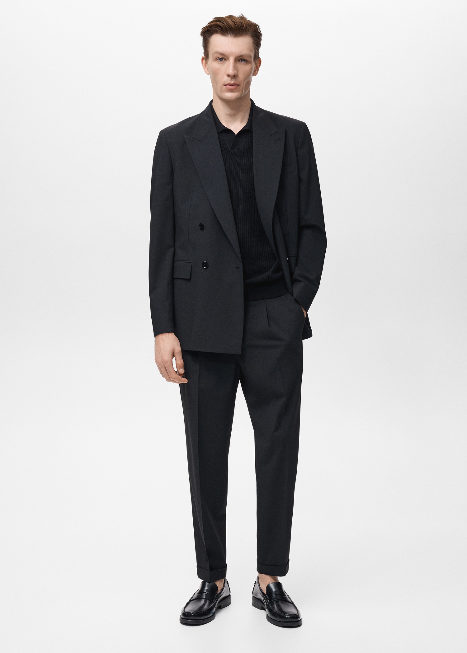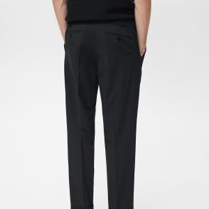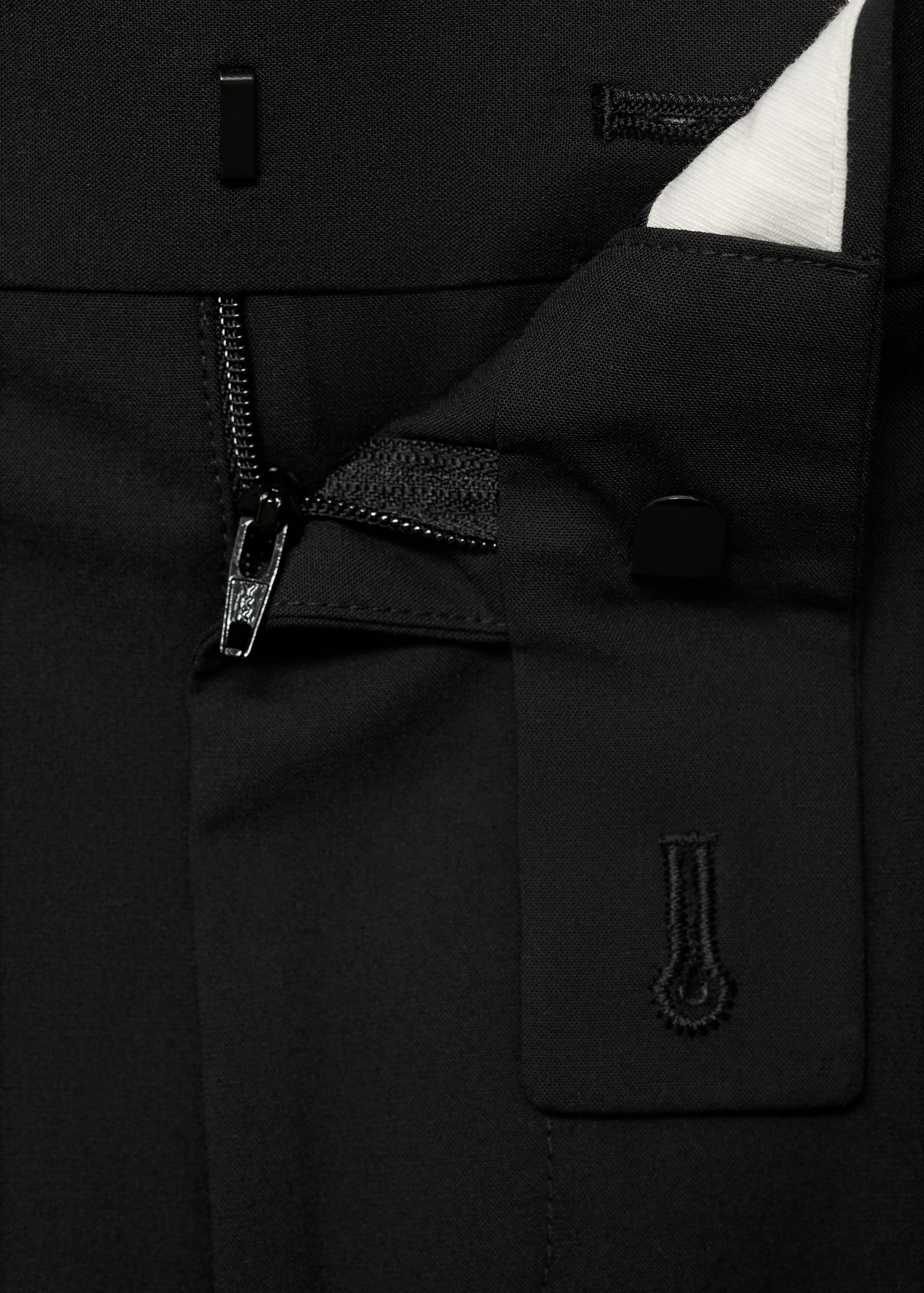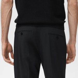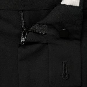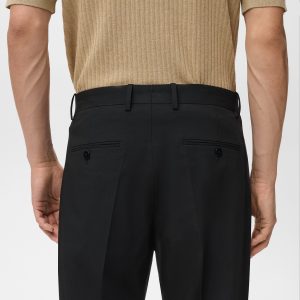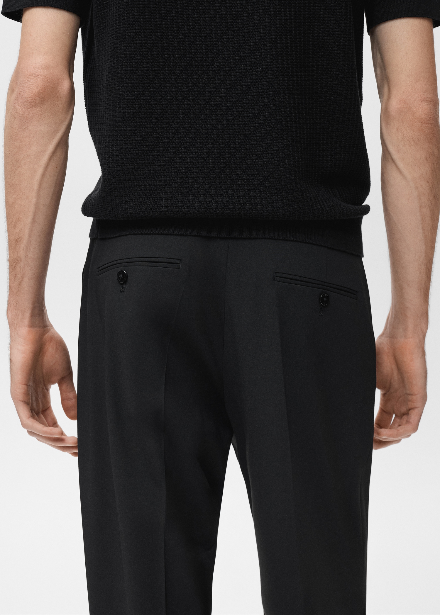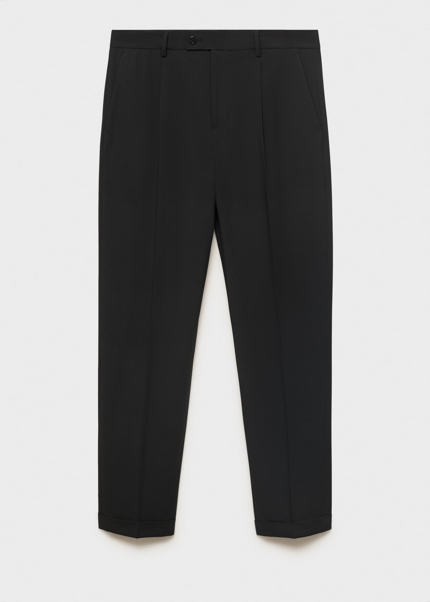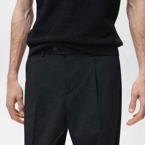 Tailoring collection. Regular fit. Crop design. Darts on the front. Button, hook and zipper closure. Belt loops. Two side pockets. Coin pocket. Two welt pockets with button at the back. Cuffed hem