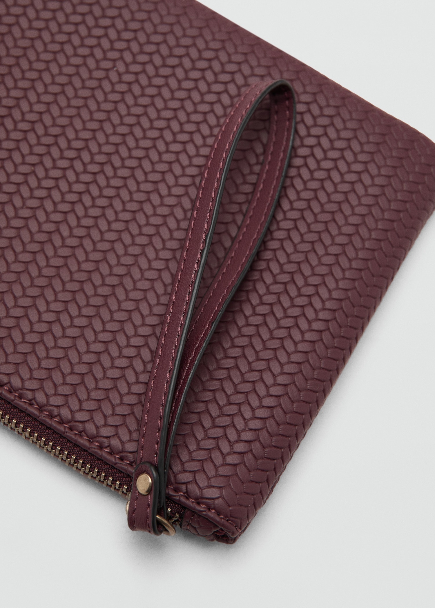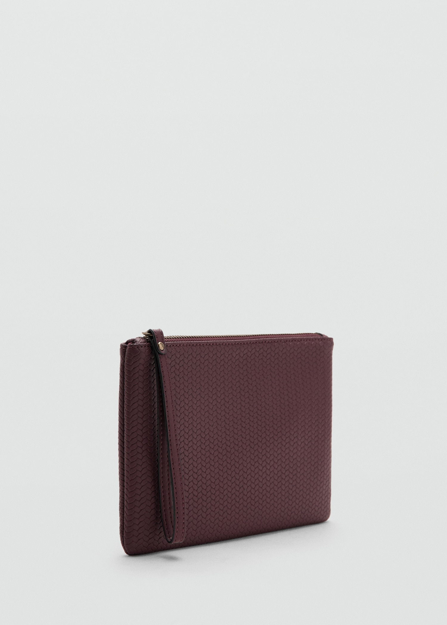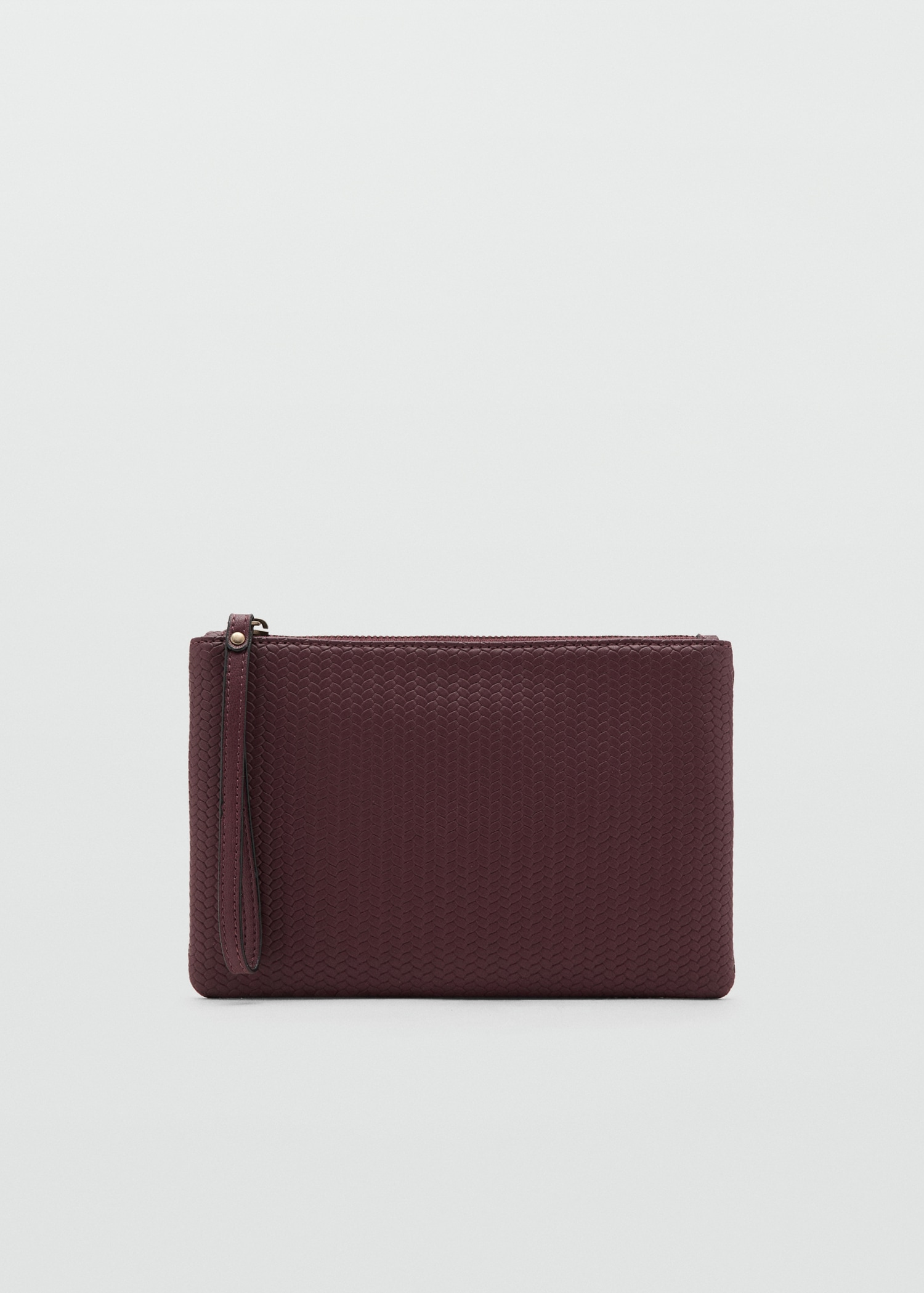 Leather-effect fabric. Leather effect. Square design. Zipper closure. Interior pocket