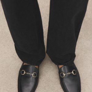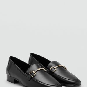 Bovine hide. Flat. Round toe. Decorative buckle. No closure. Inner lining