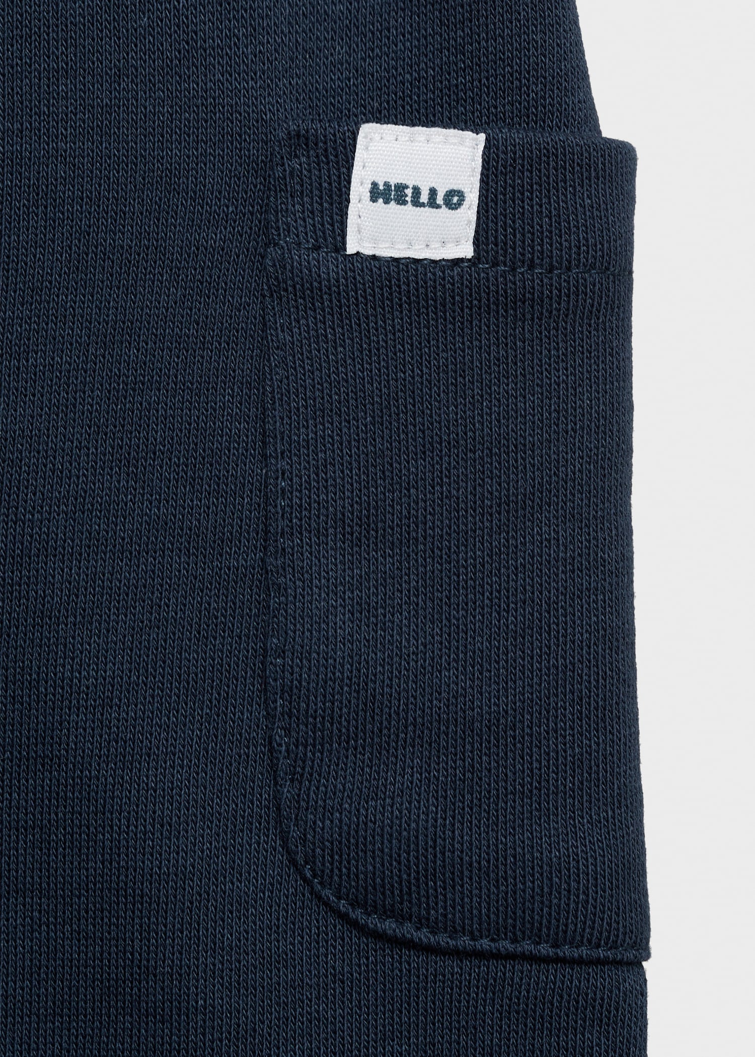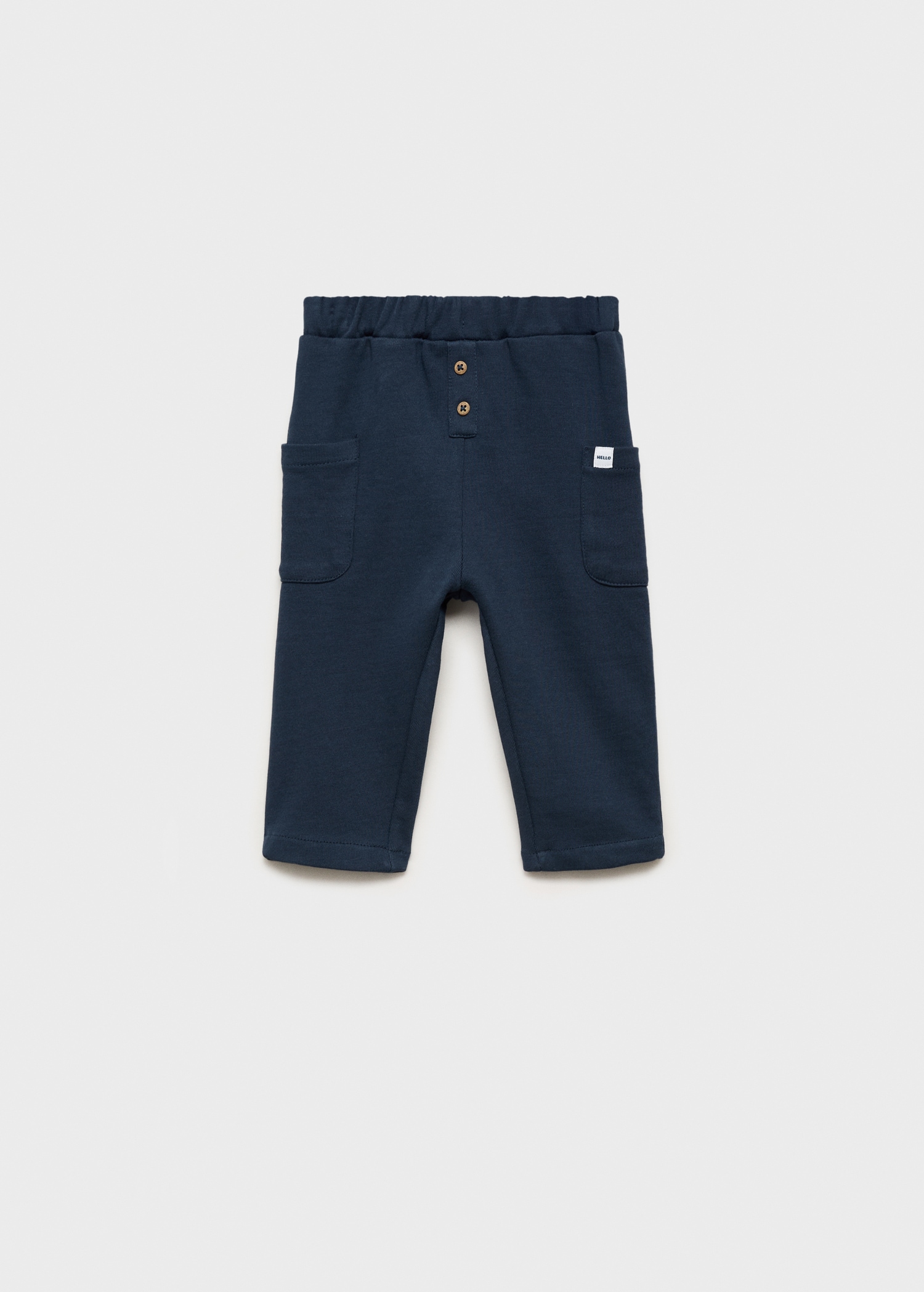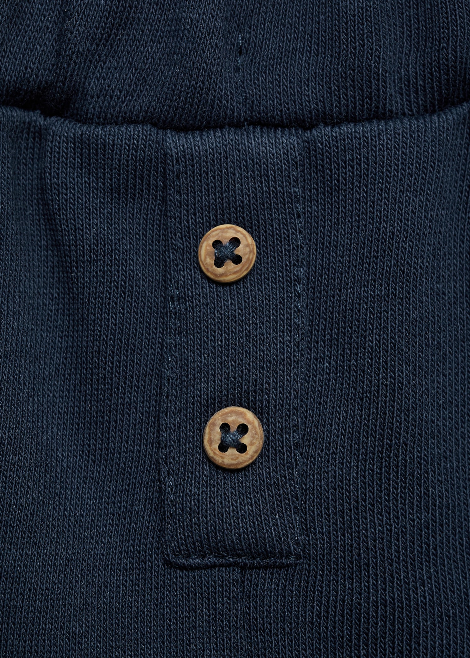 100% cotton fabric. Long design. Straight Design. Two side patch pockets. Decorative buttons. Elastic waistband