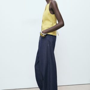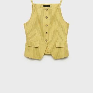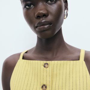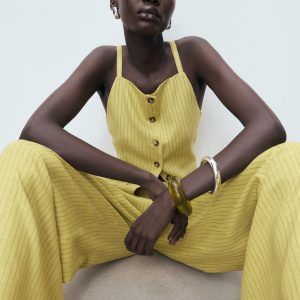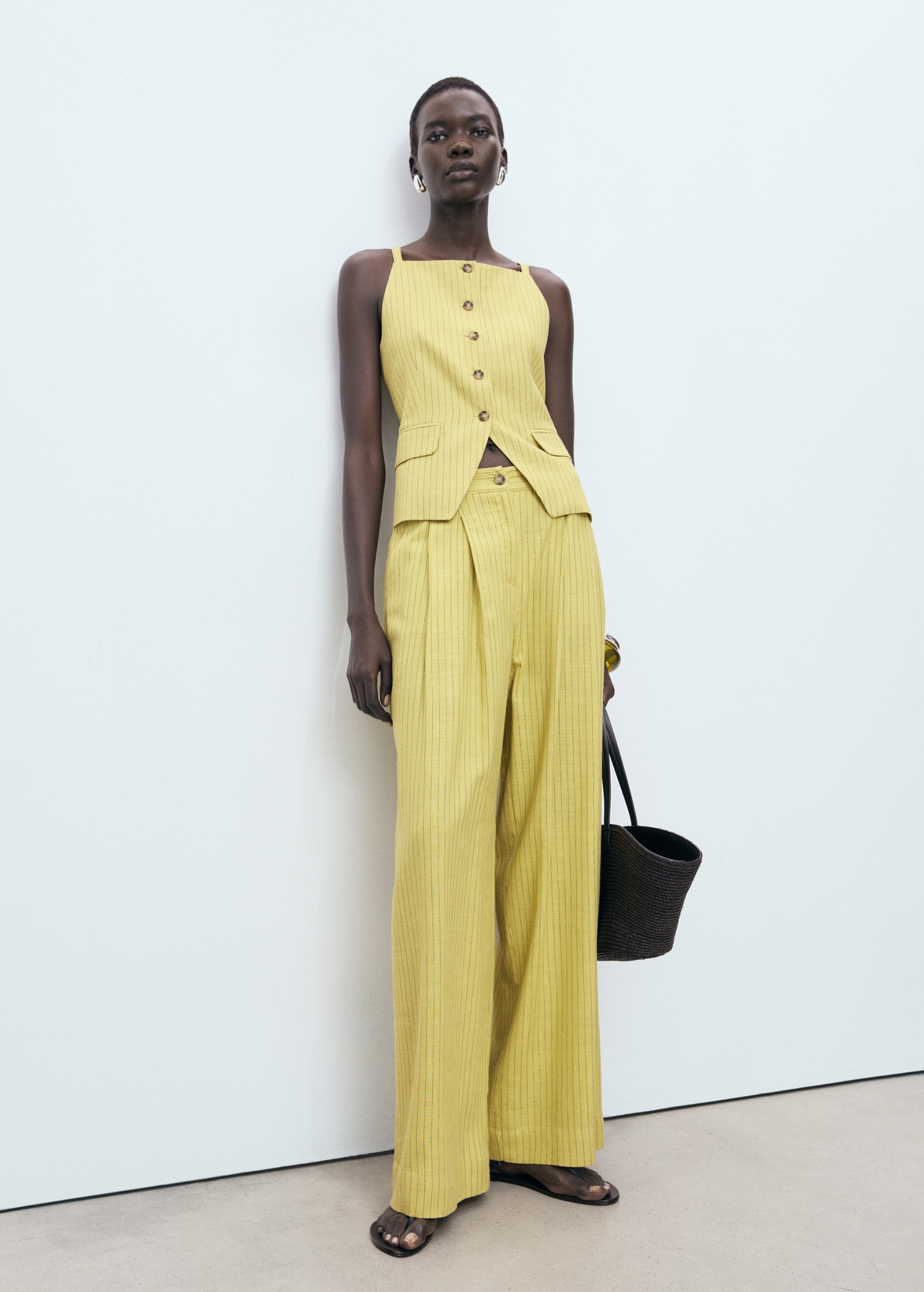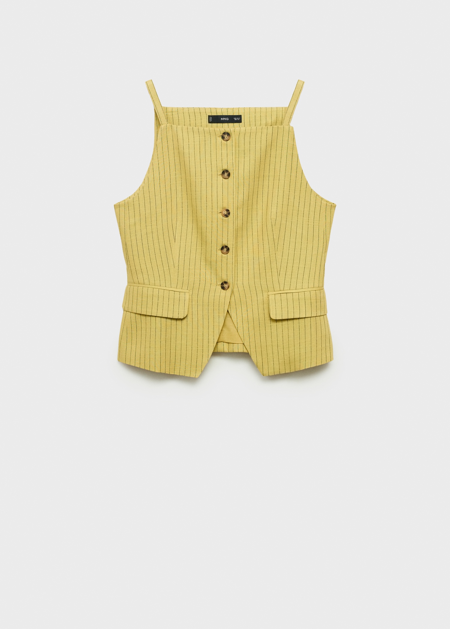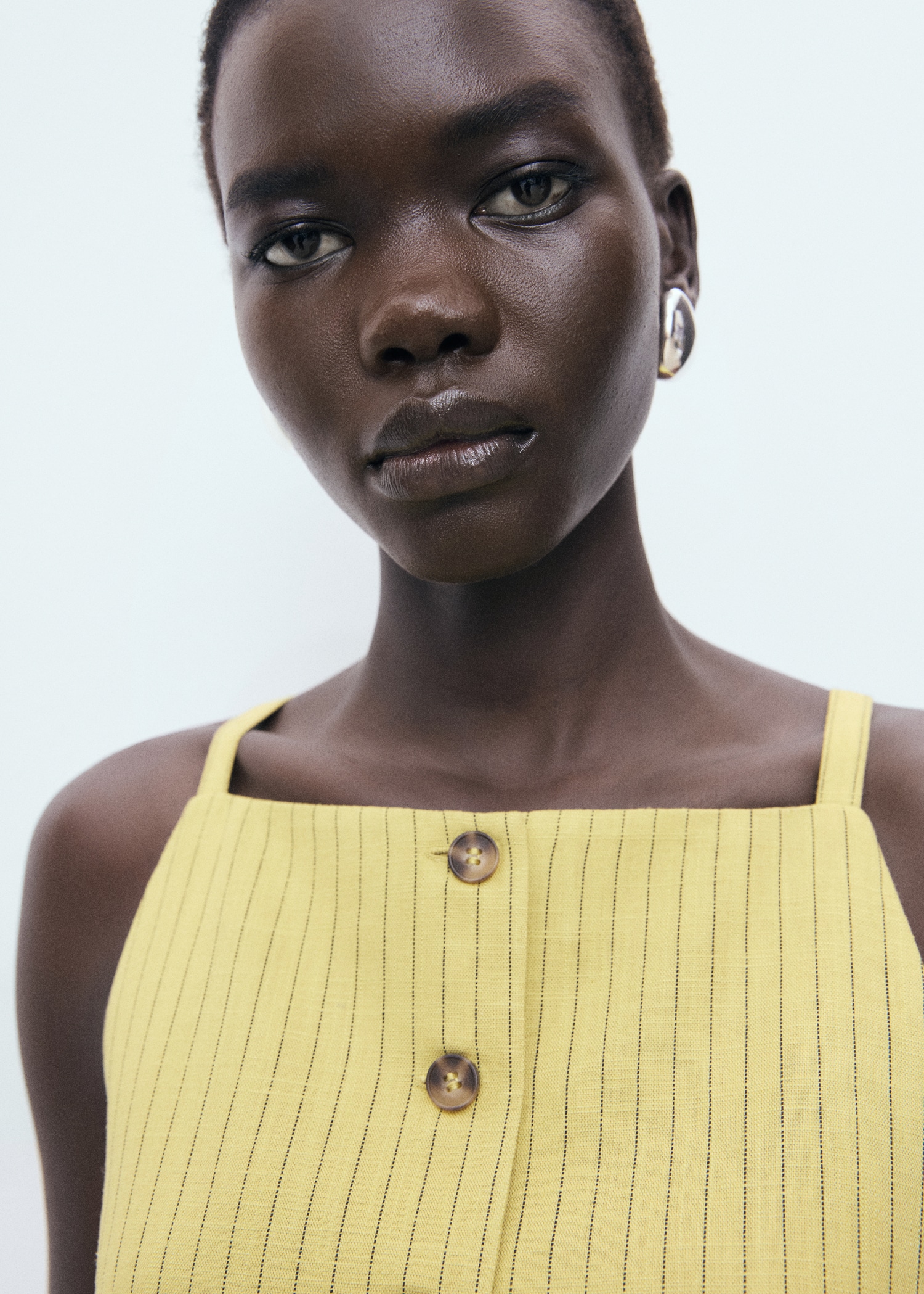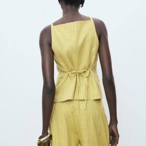 Striped suit-style top with a structured design and a straight neckline. Contains a blend of lyocell and linen. Thin straps and an adjustable tie at the back that enhances the figure. Perfect for a coordinated total look with the matching pants