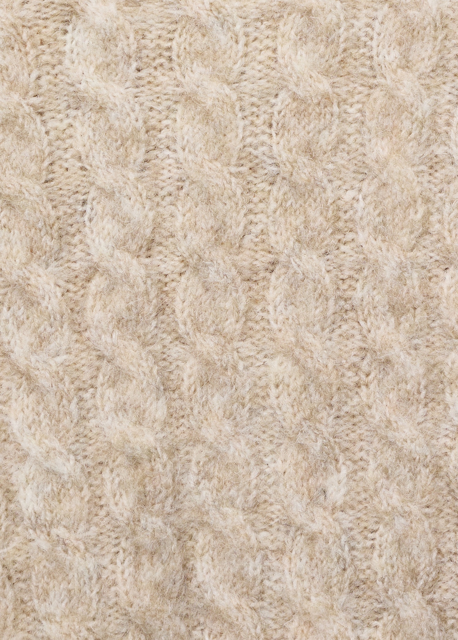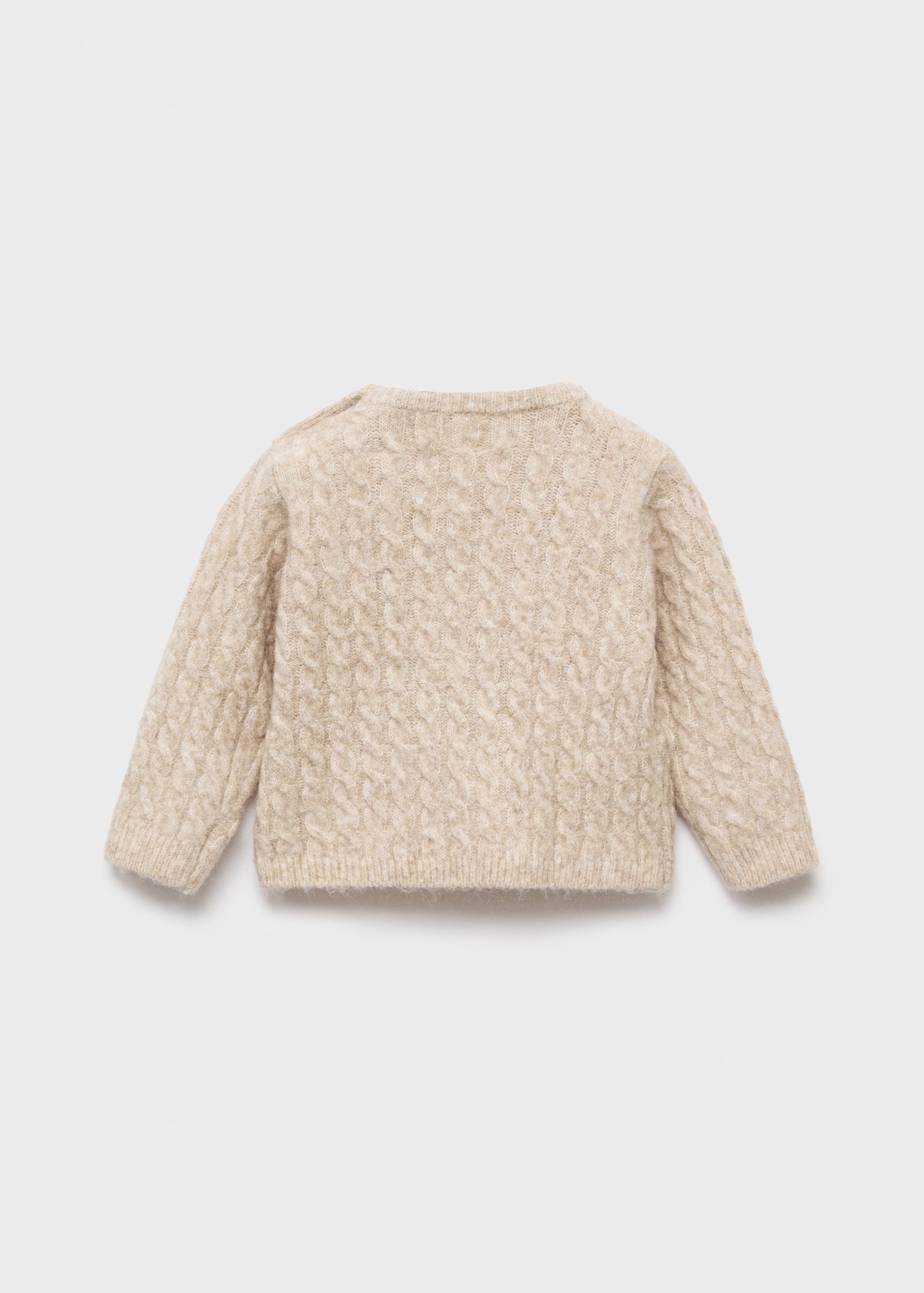 Knitted fabric. Cable stitch. Straight Design. Rounded neck with button fastening. Long Sleeve. Total look