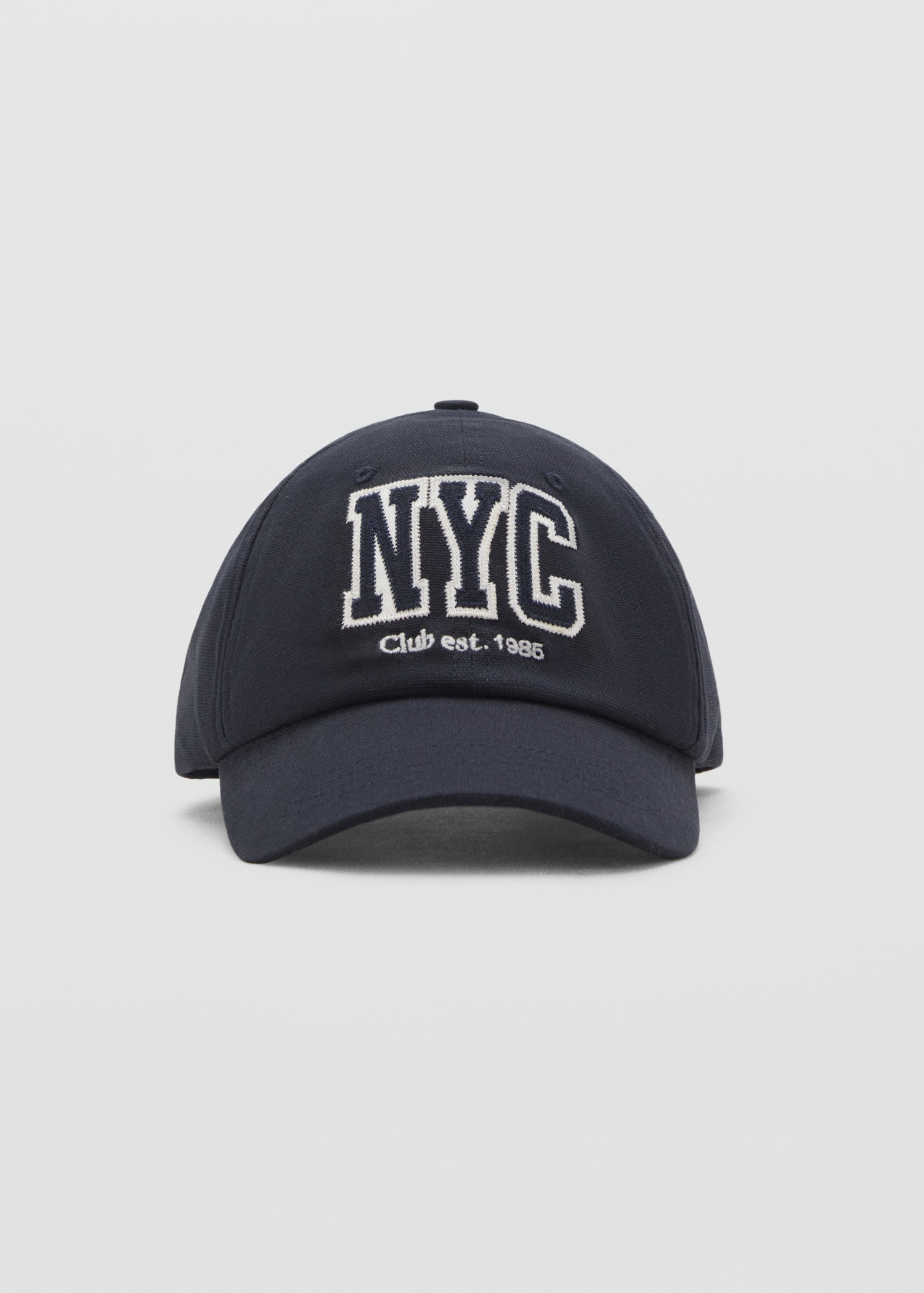 Cap style. Embroidered lettering on the front. Adjustable closure