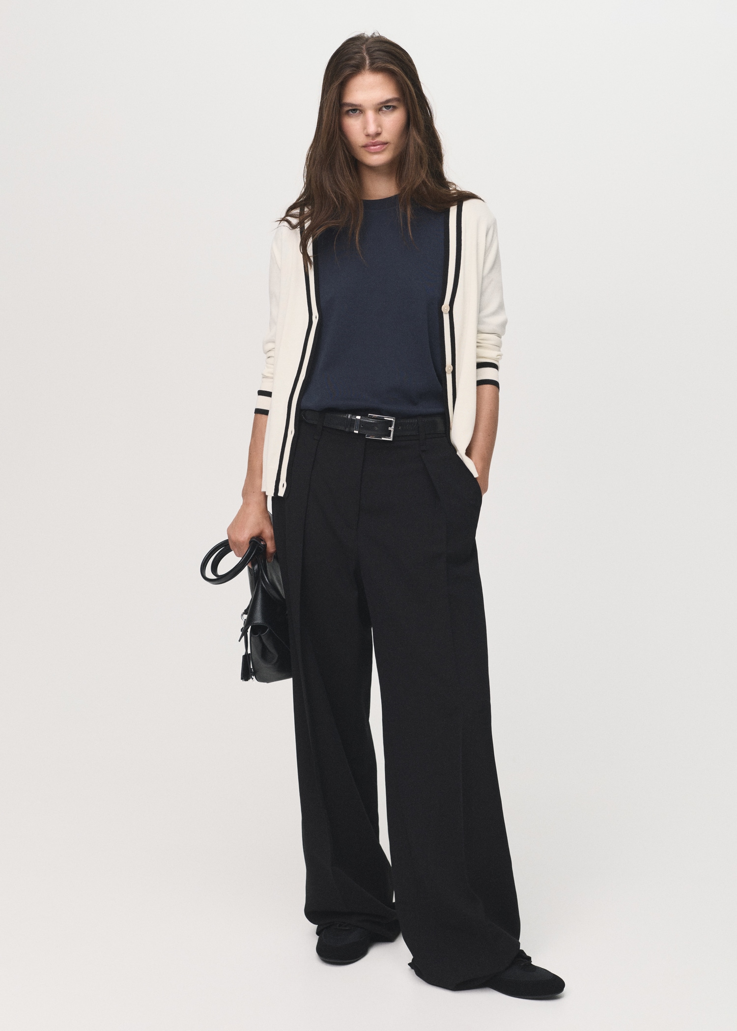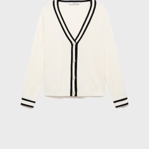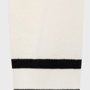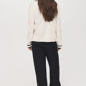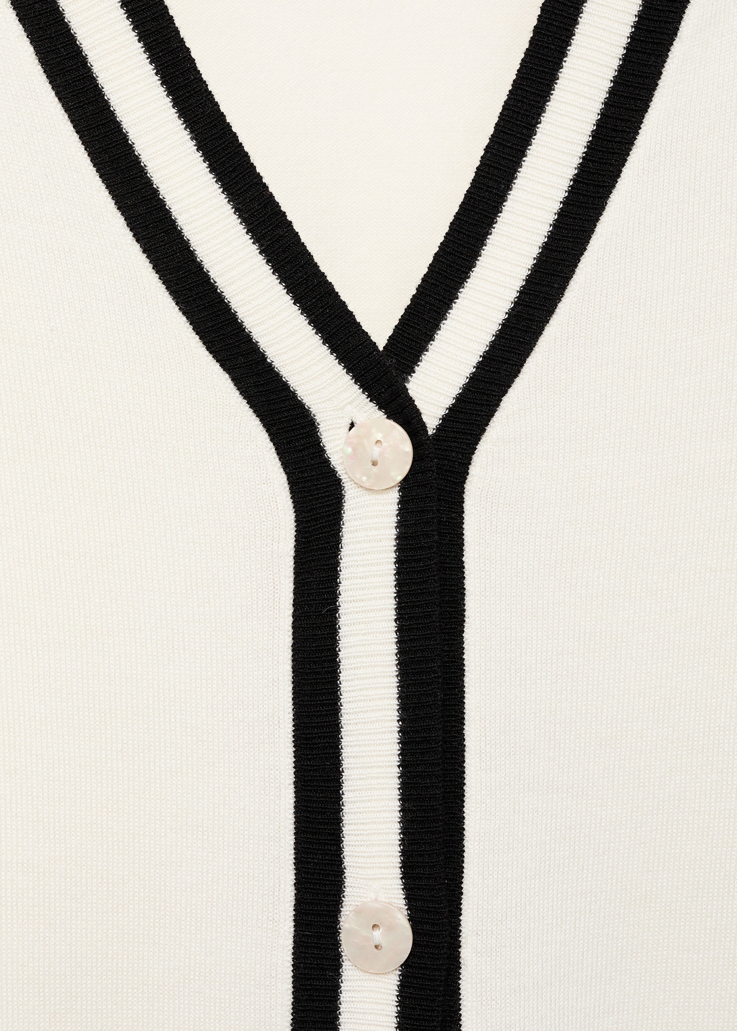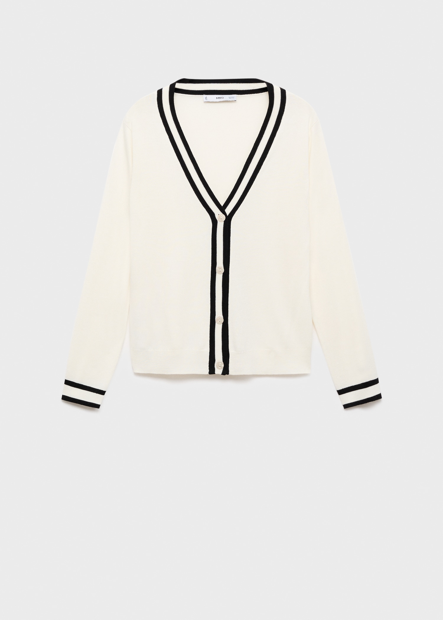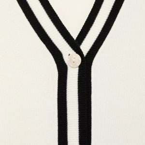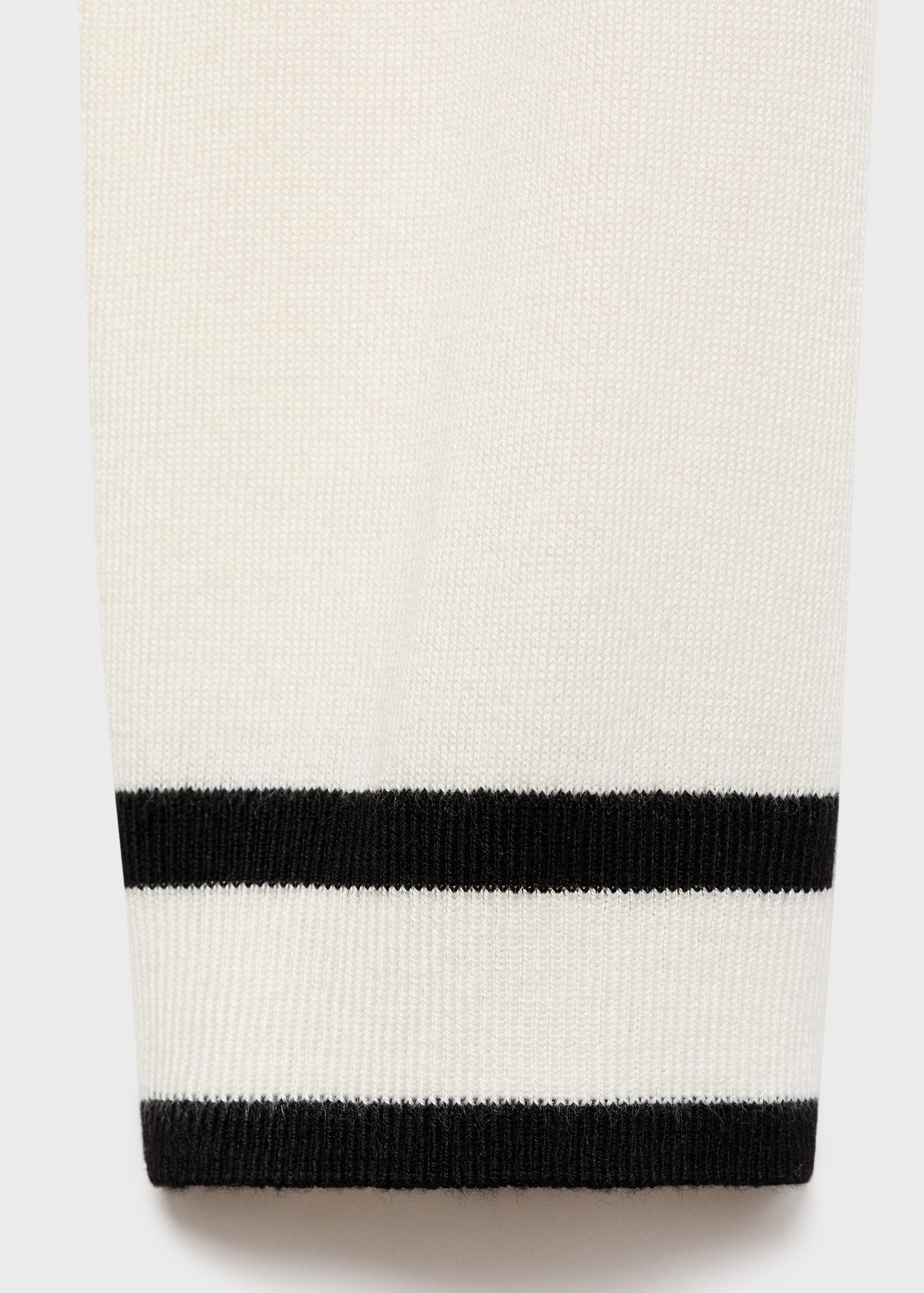 Crafted from fine-knit fabric, this straight design features a V-neck and long sleeves. The contrasting stripes give it a distinctive air