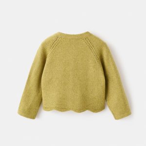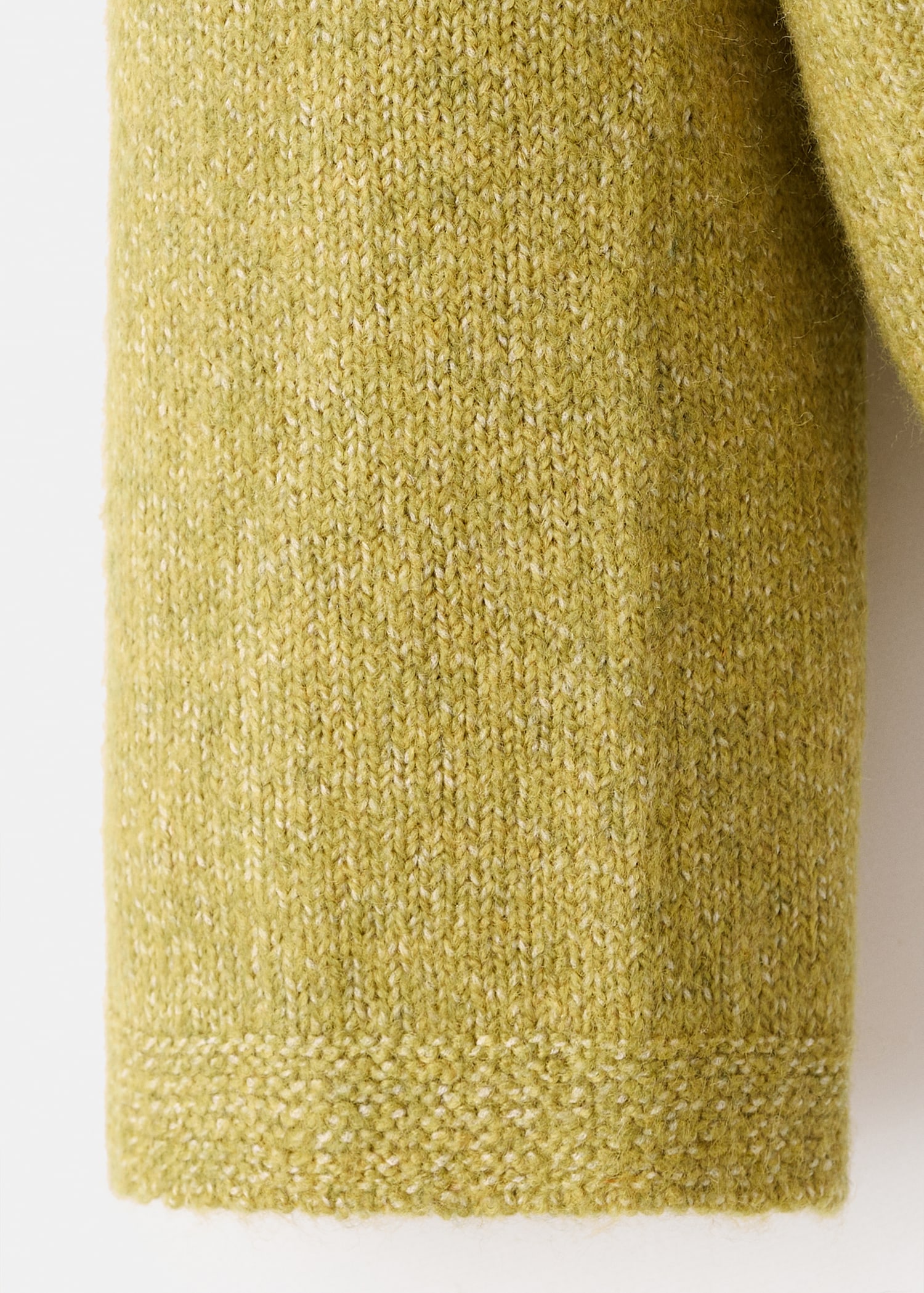 Knitted fabric. Straight Design. Crew neck. Long Sleeve. Front button closure. Openwork details