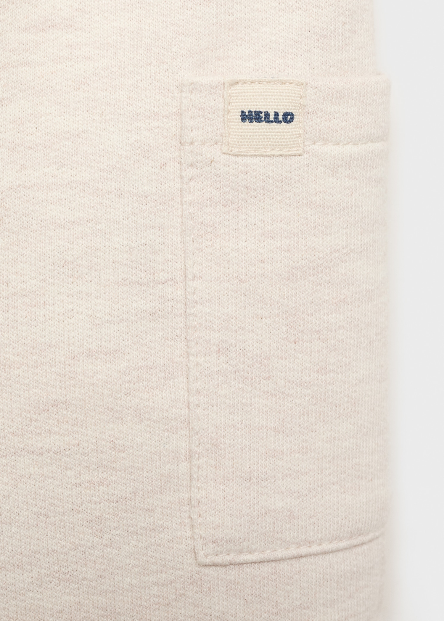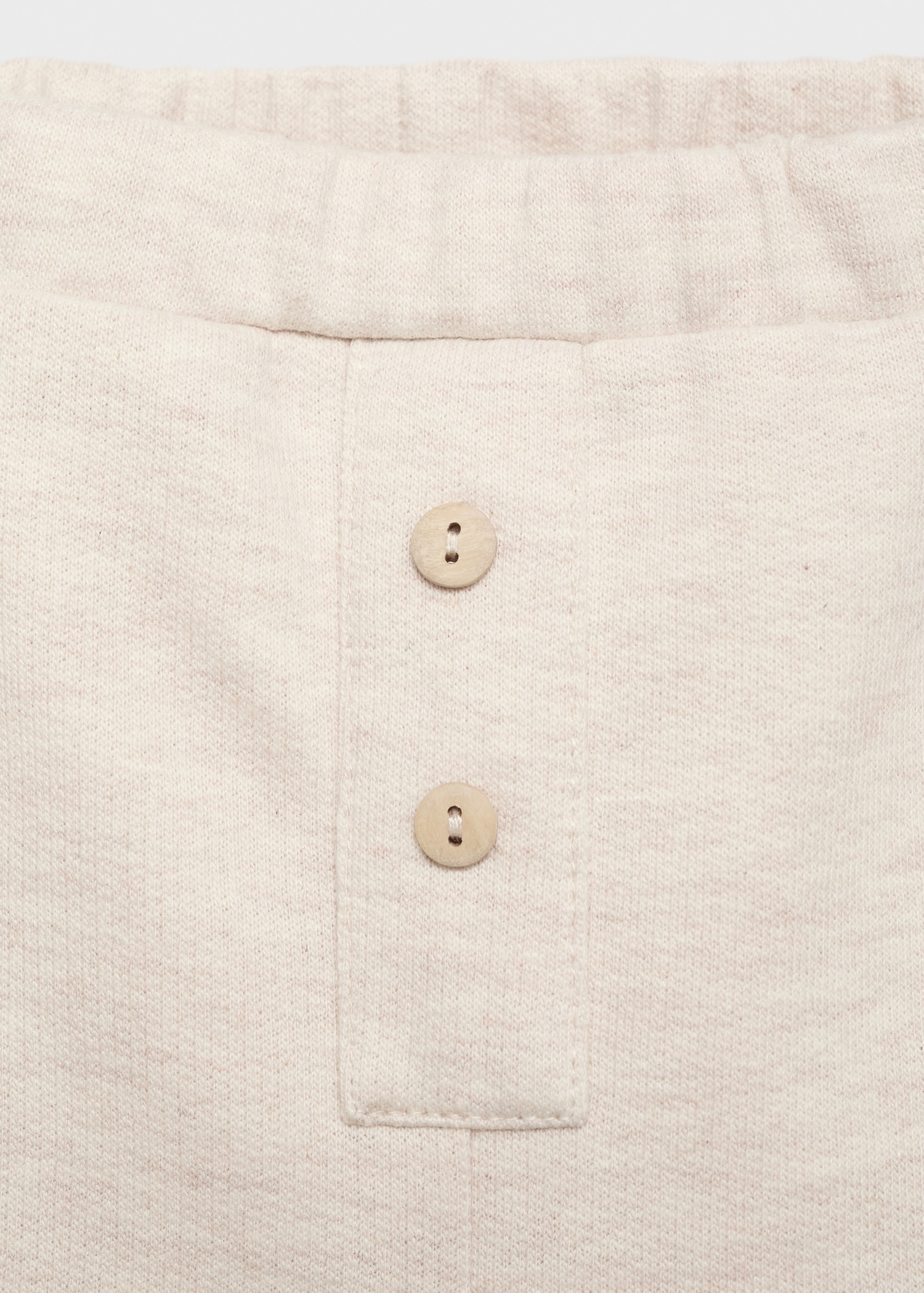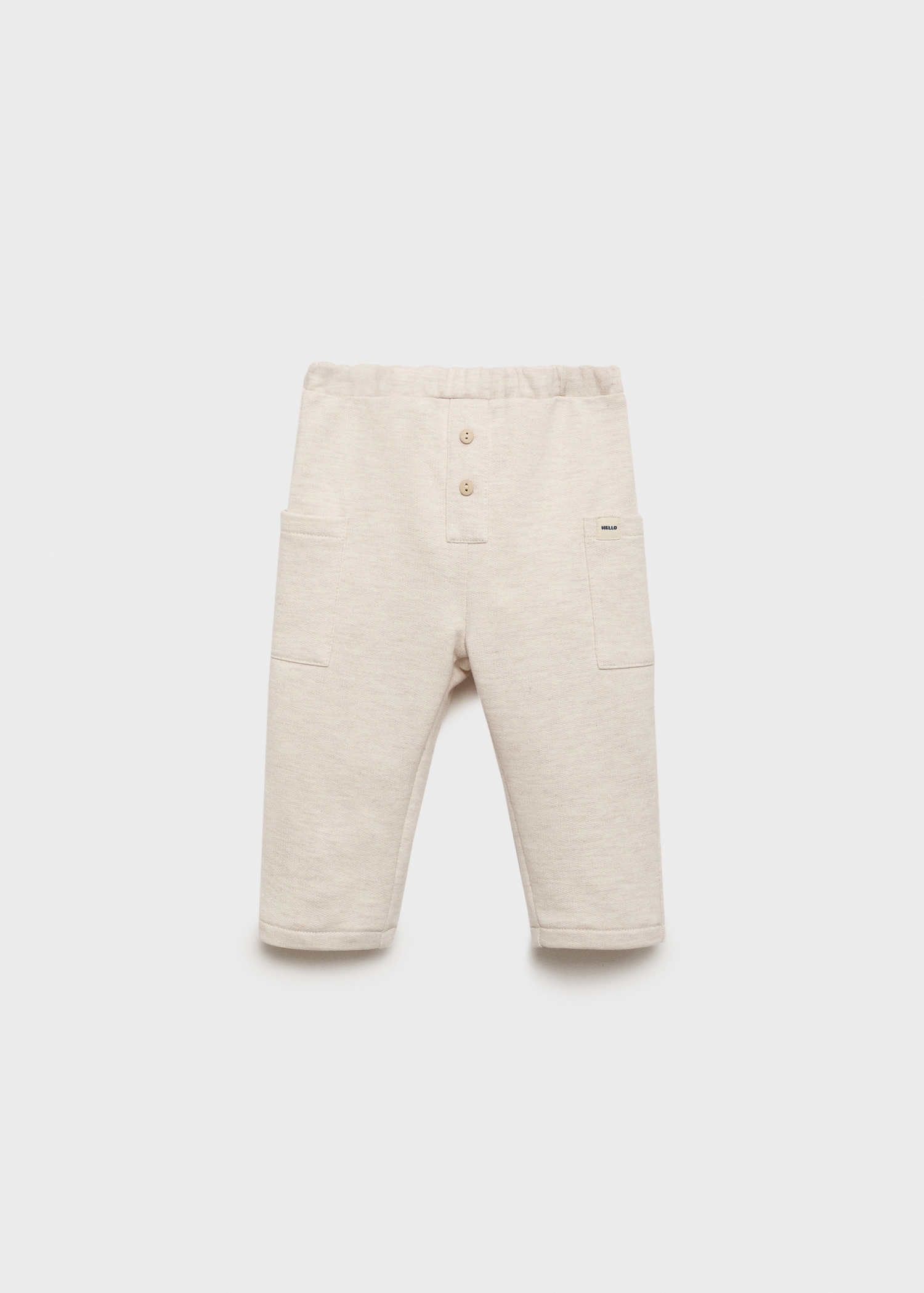 Cotton fabric. Polyester fabric. Long design. Jogger design. Cargo design. Elastic waist. Decorative button detail
