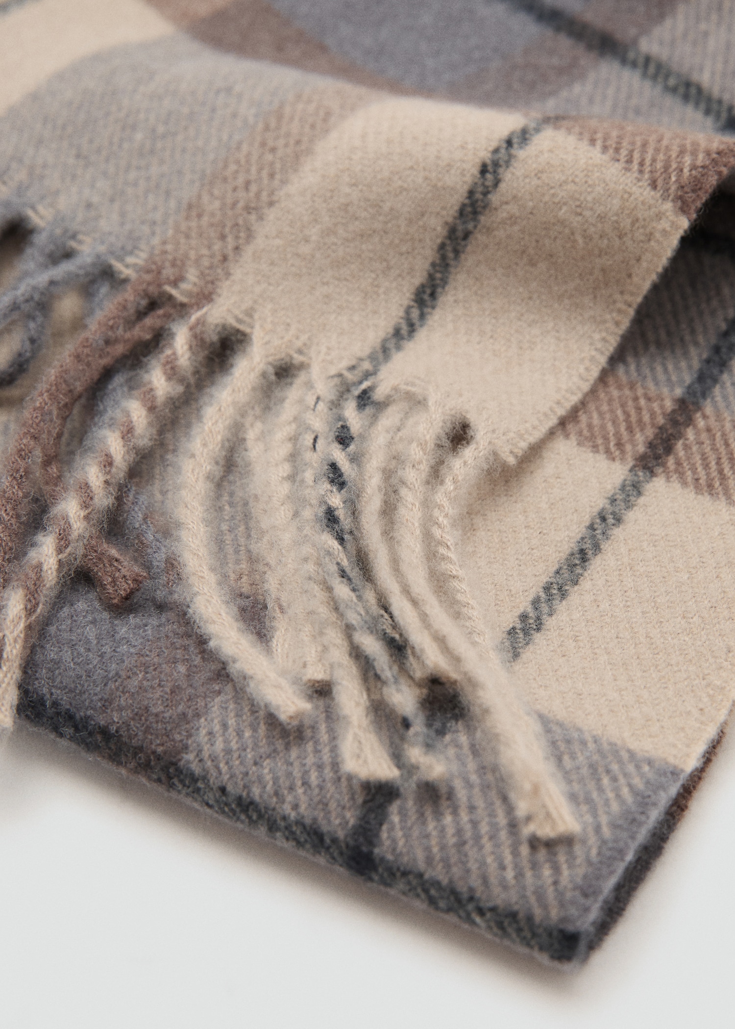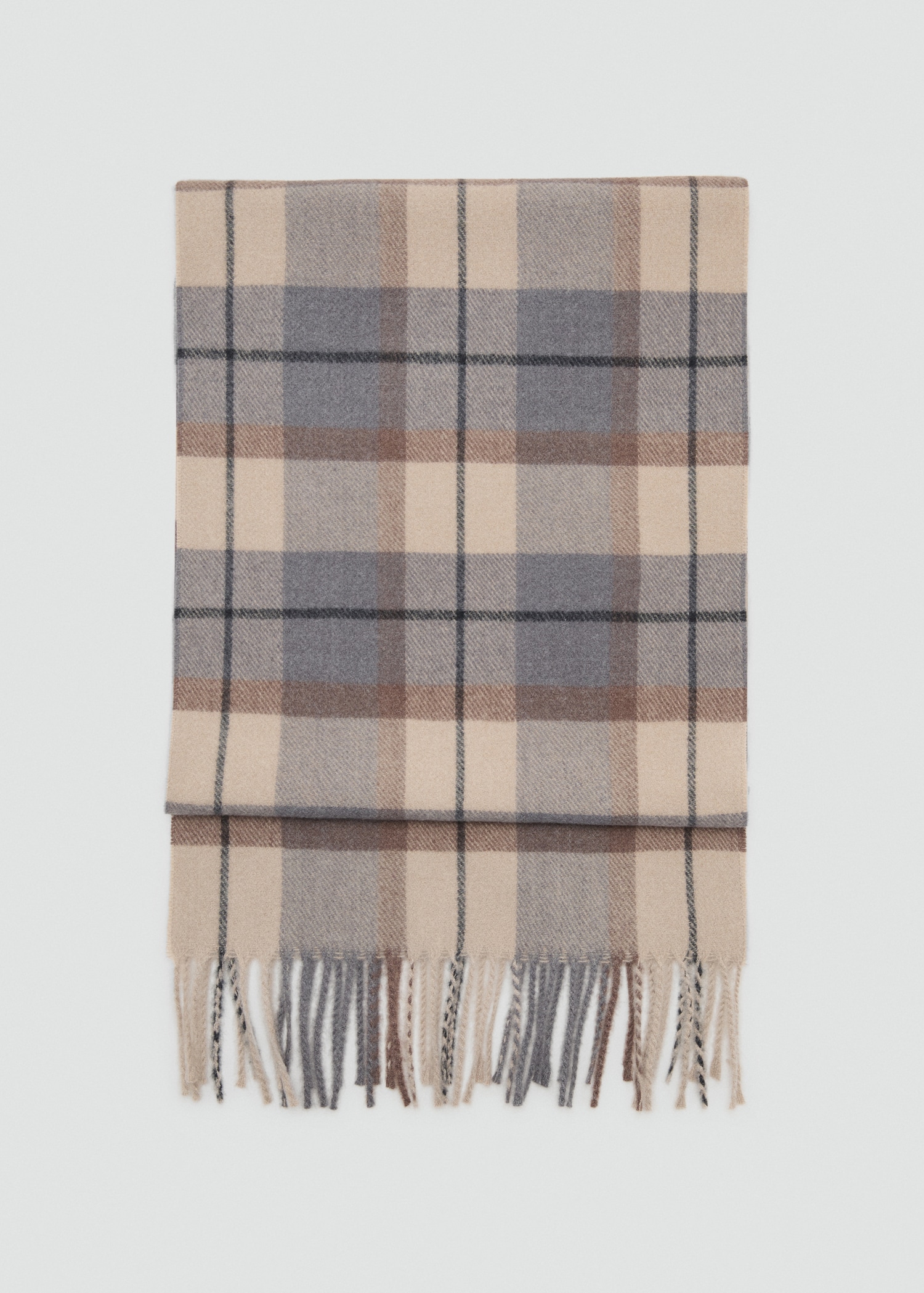 Viscose-blend fabric. Check design. Fringed finish. 70.87×70.87×13.78 in (Length x Height x Width)