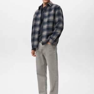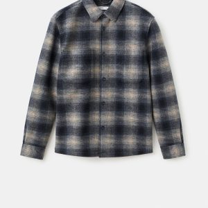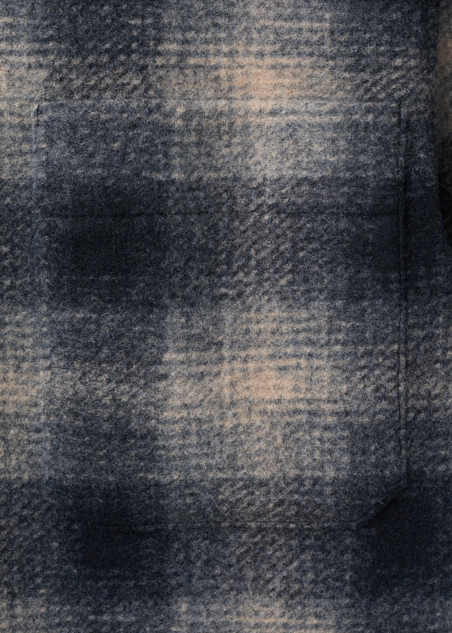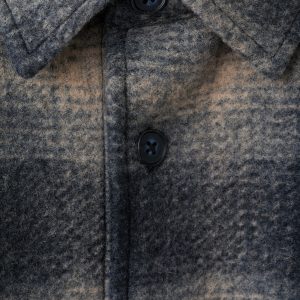 With a standard length and long sleeves, this garment features a front fastening and a shirt collar with a lapel.