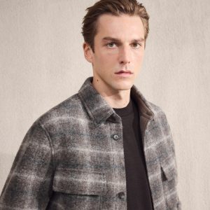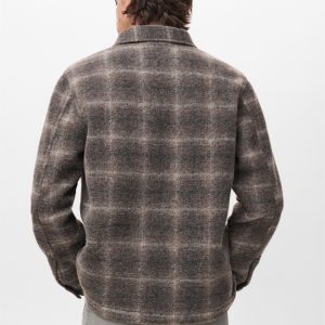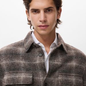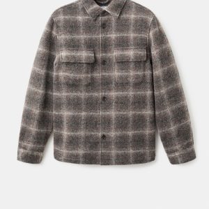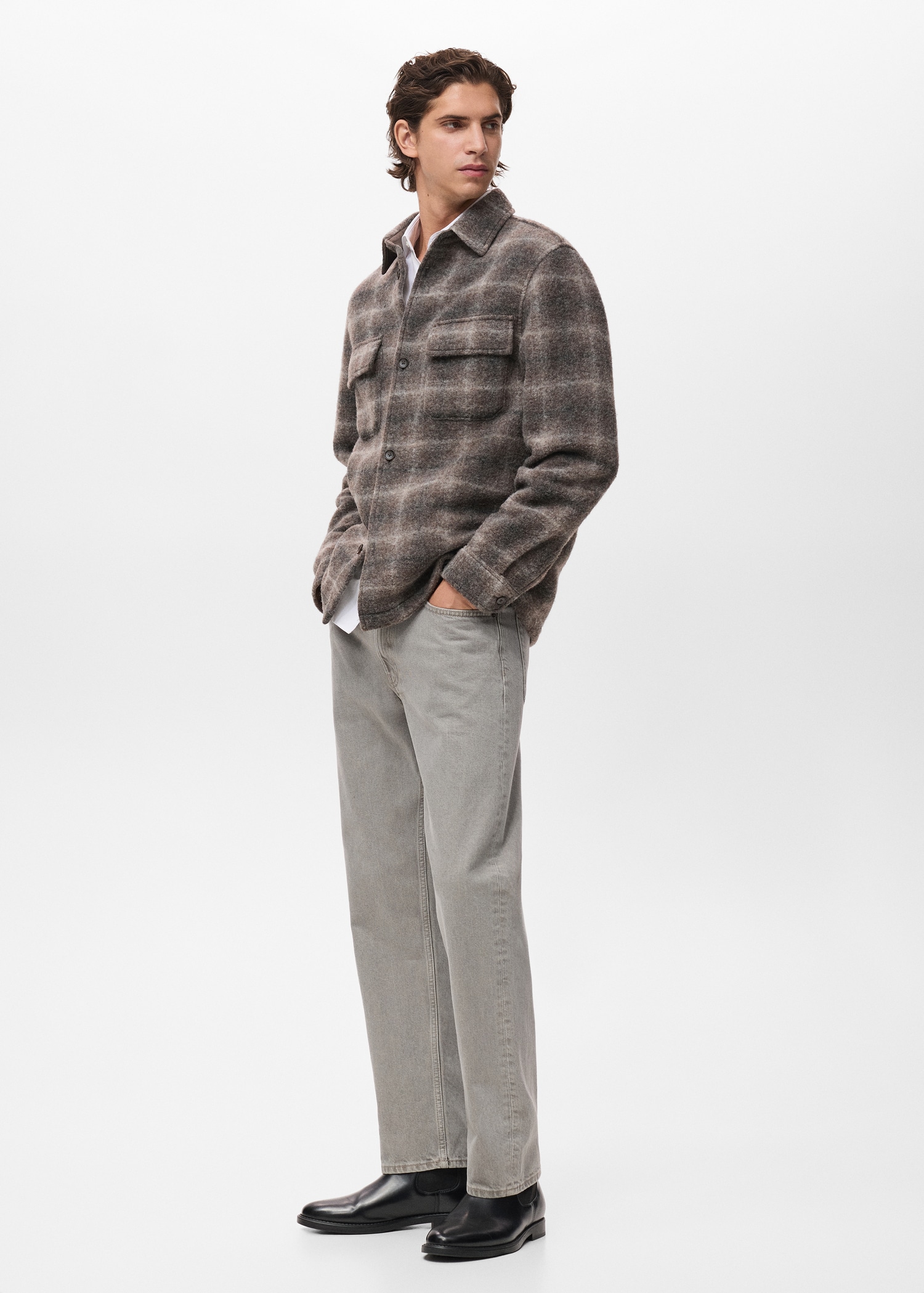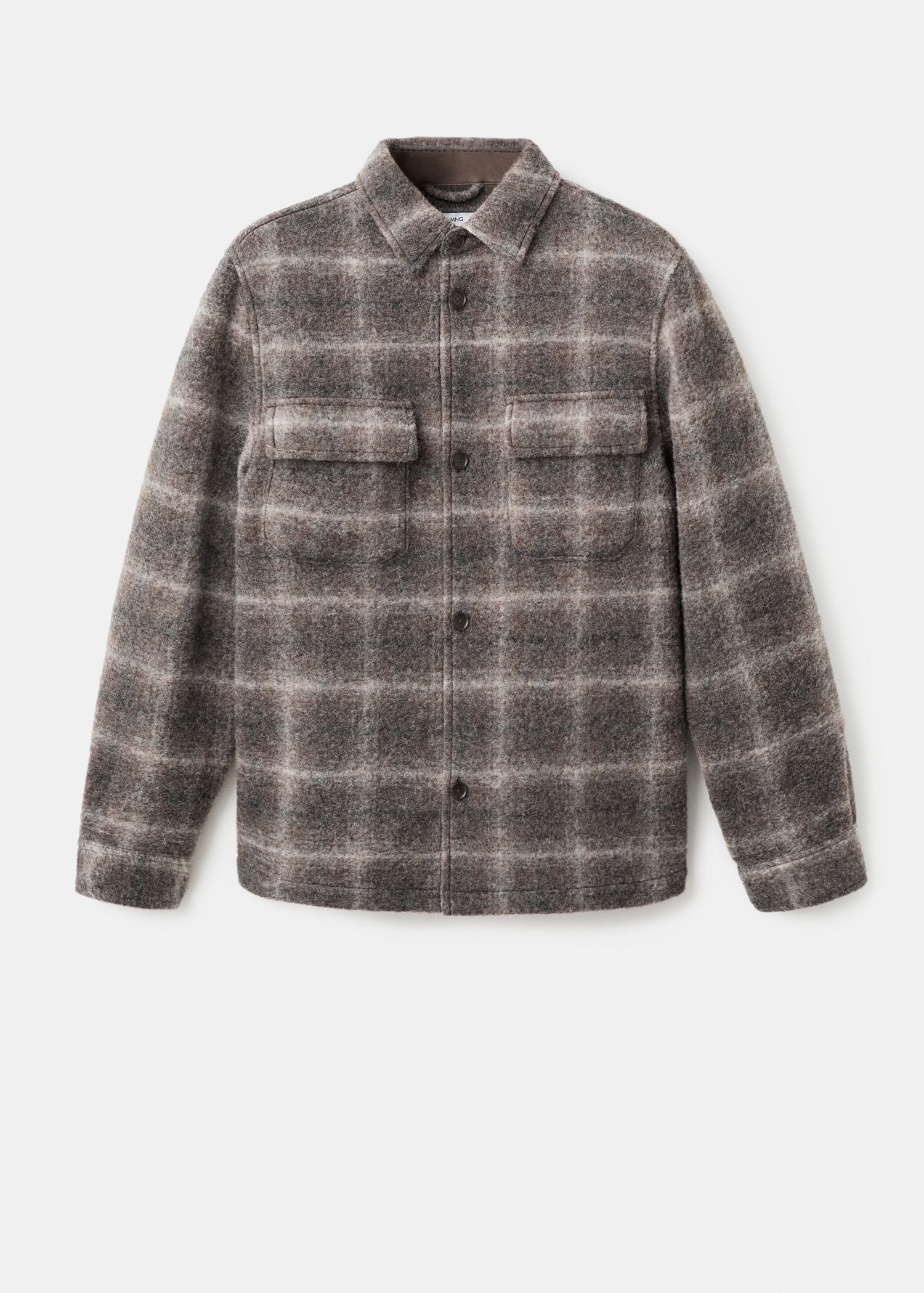 Relaxed fit. Recycled wool mix fabric. Checkered design. Shirt collar. Two chest pockets with flaps. Front button closure. Long sleeves with buttoned cuffs. Rounded hem