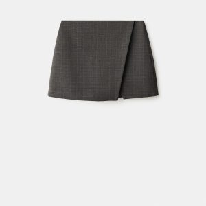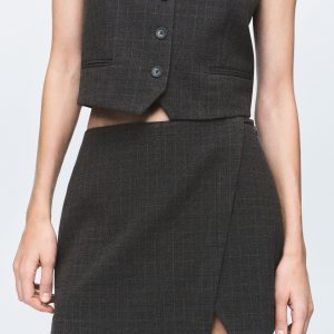 Short design. Wrap design. Checkered design. Mid-rise. Side zip closure