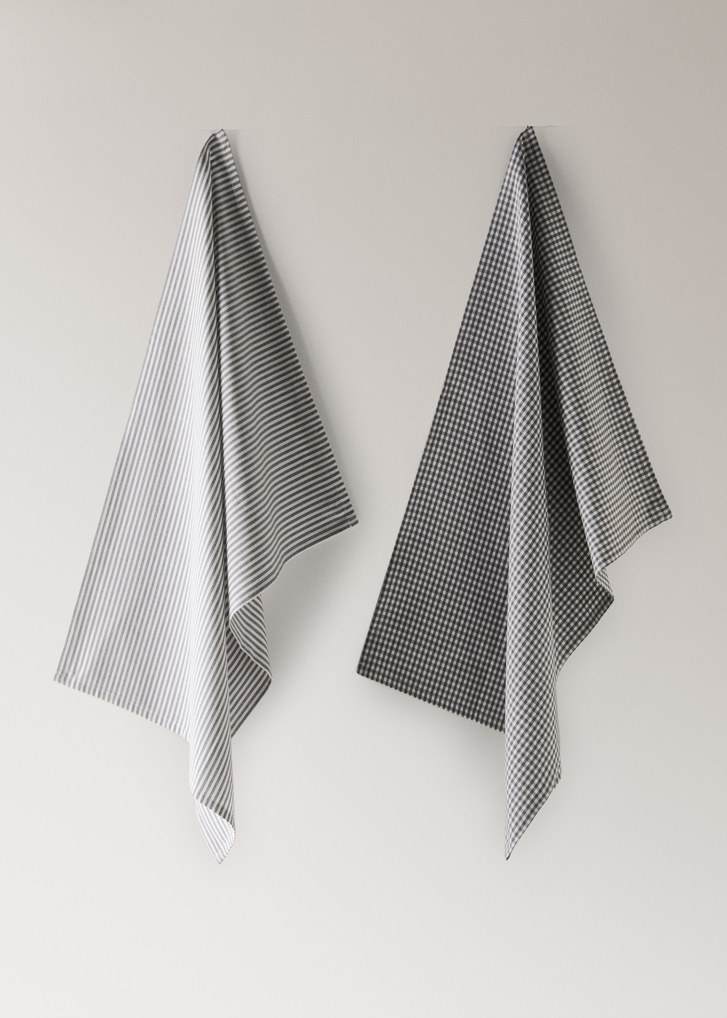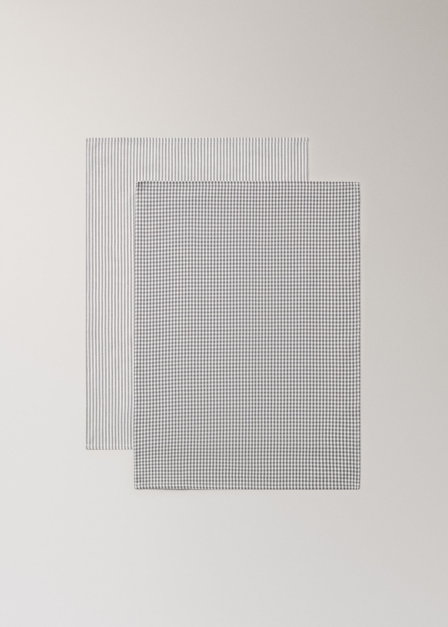 Pack of 2. Size: 50x70cm. 100% Cotton. Checked print. Striped print. Two-tone design. Coordinates with more products from the collection