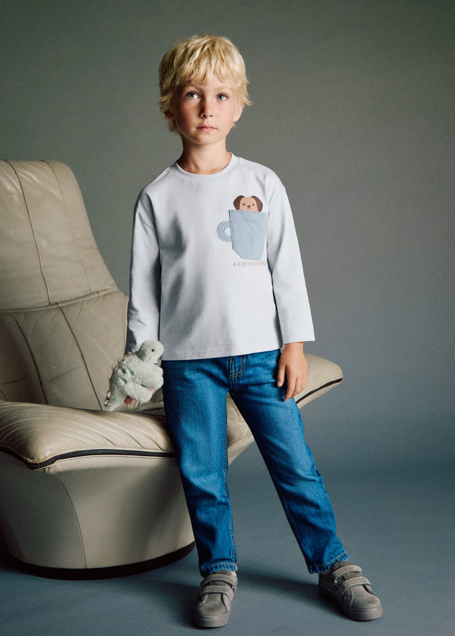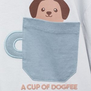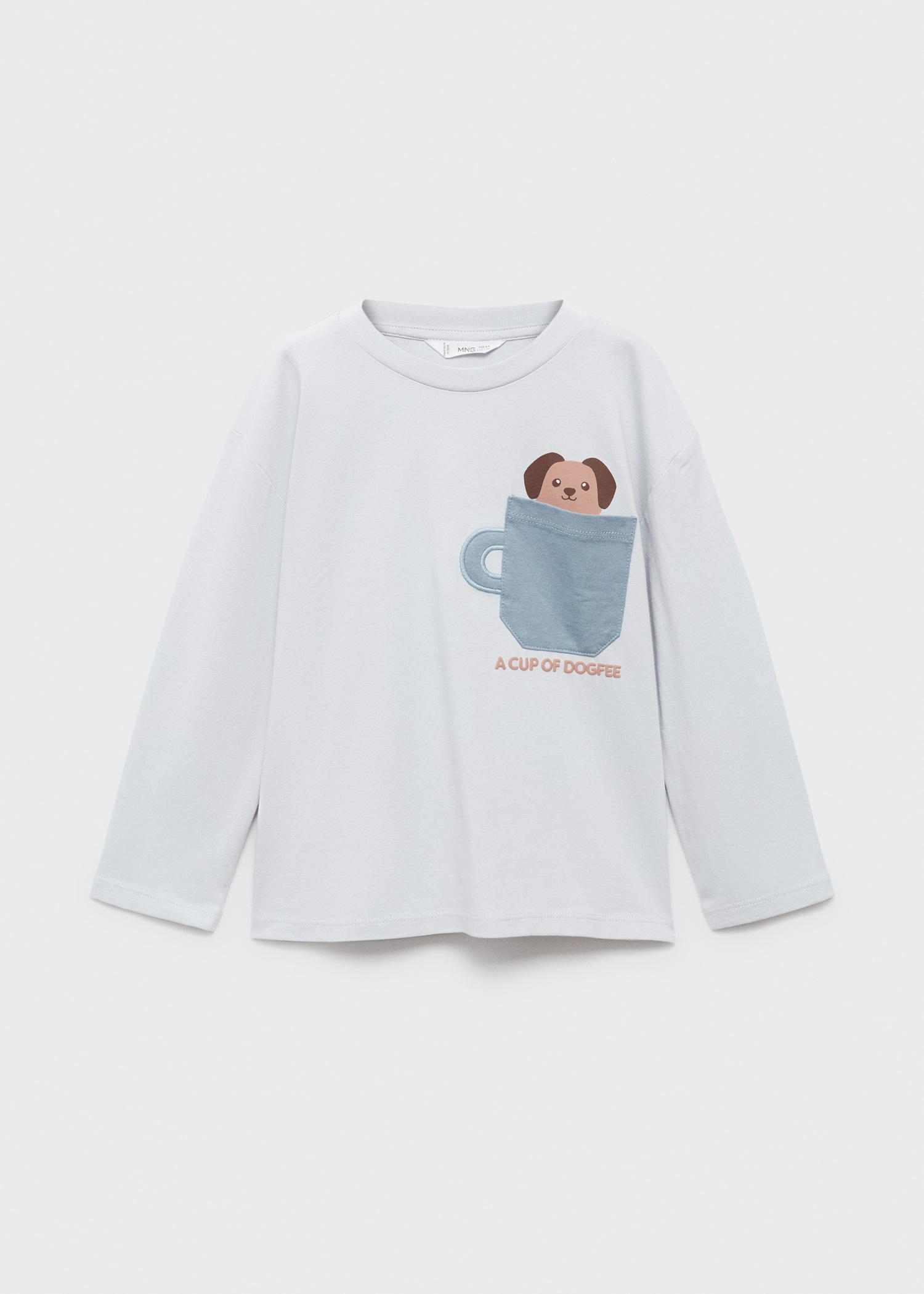 100% cotton fabric. Straight Design. Printed design. Chest pocket. Dog print. Printed animal. Crew neck. Long Sleeve