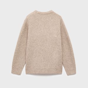Chunky Knit Fabric. Wool fabric. Straight Design. Crew neck. Long Sleeve. Ribbed neck, cuffs, and hem