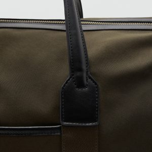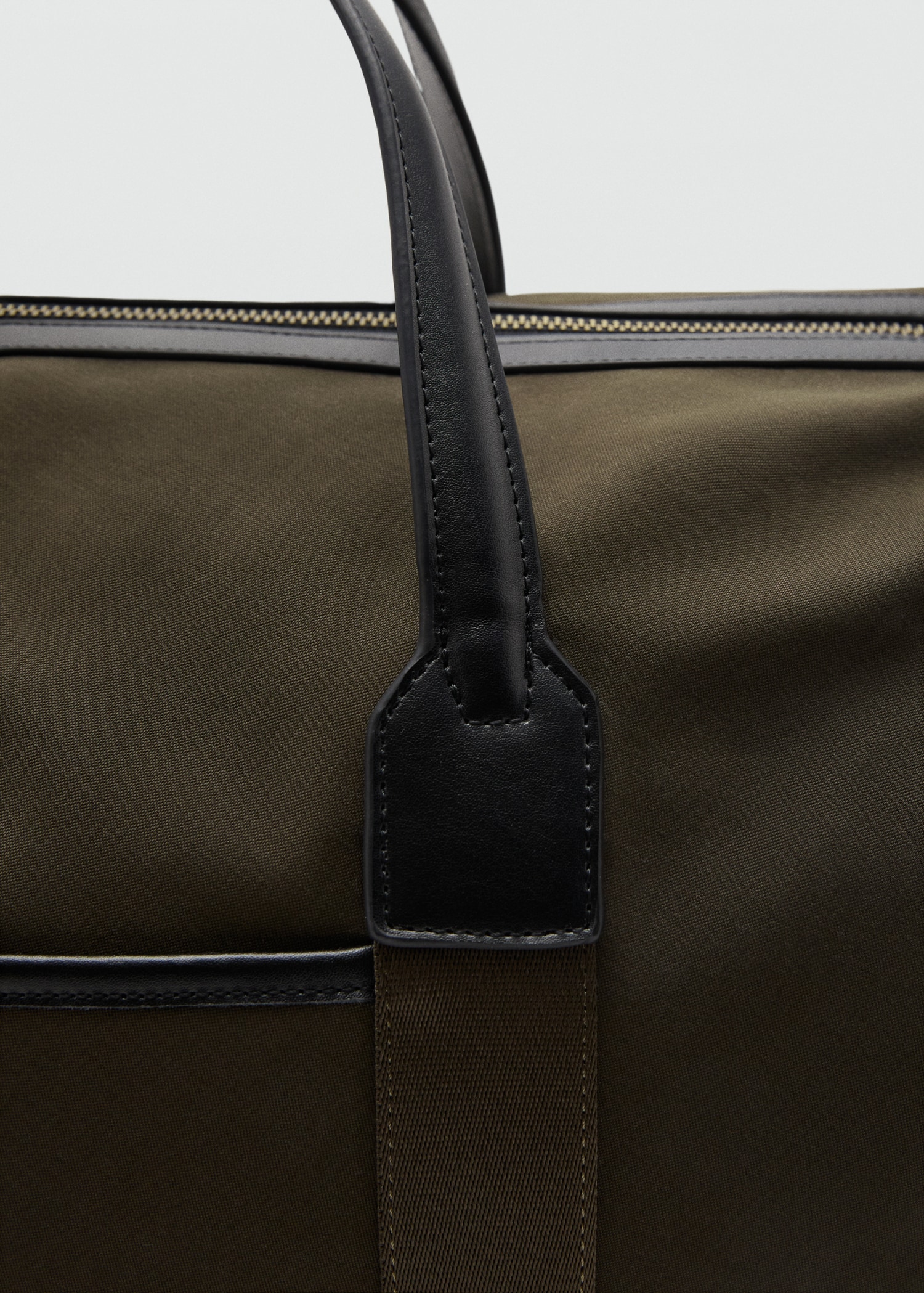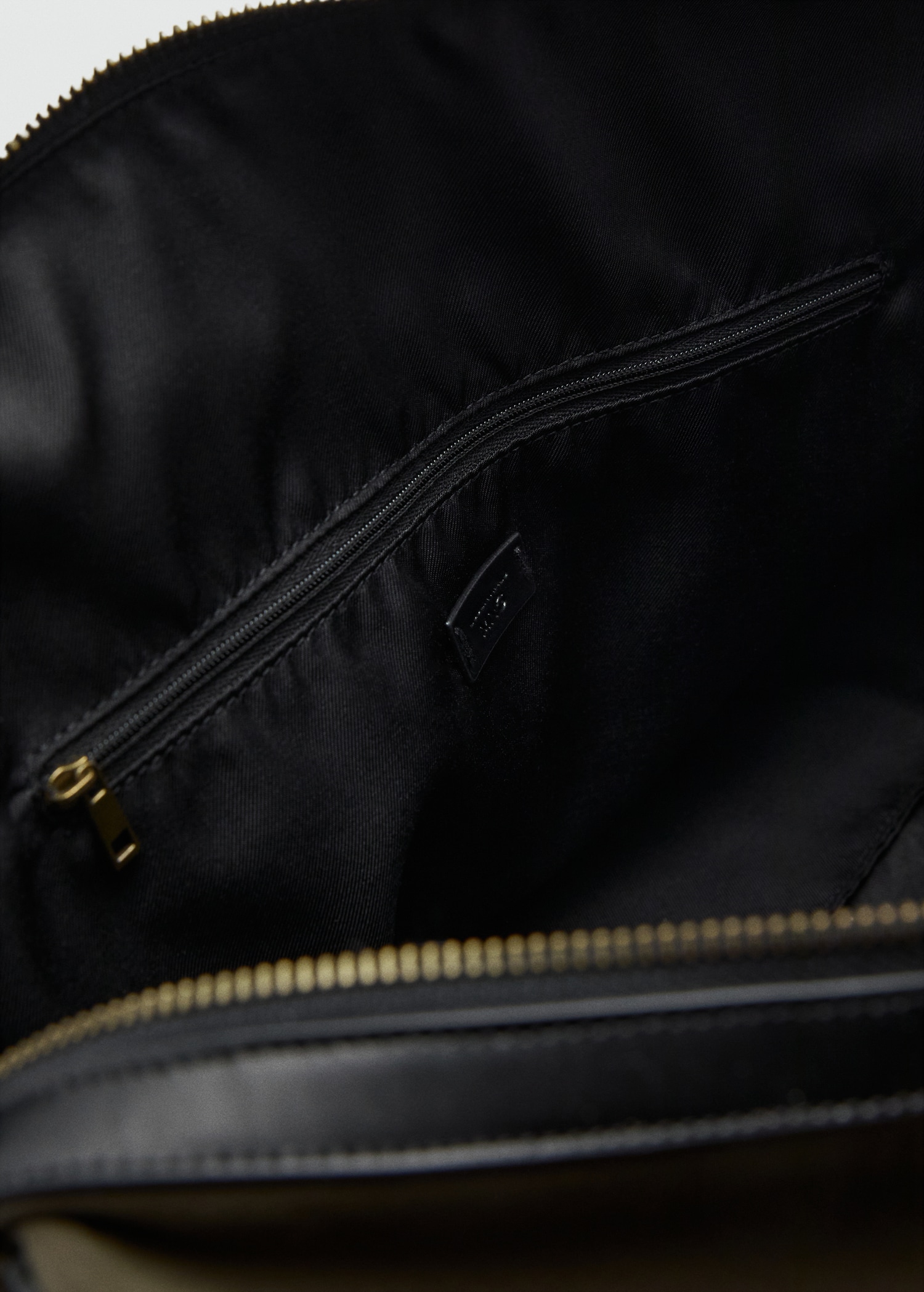 Cotton and lyocell-blend fabric. Bovine hide. Long adjustable shoulder strap with detachable option. Double handle. Zip fastening. Multiple pockets. ESSENTIALS: Made to last. We have strengthened our quality standards by adding new endurance tests to our garments. Designed with careful consideration of their construction, they are even more durable, versatile and timeless. 17.72×9.84×9.06 in (Length x Height x Width)
