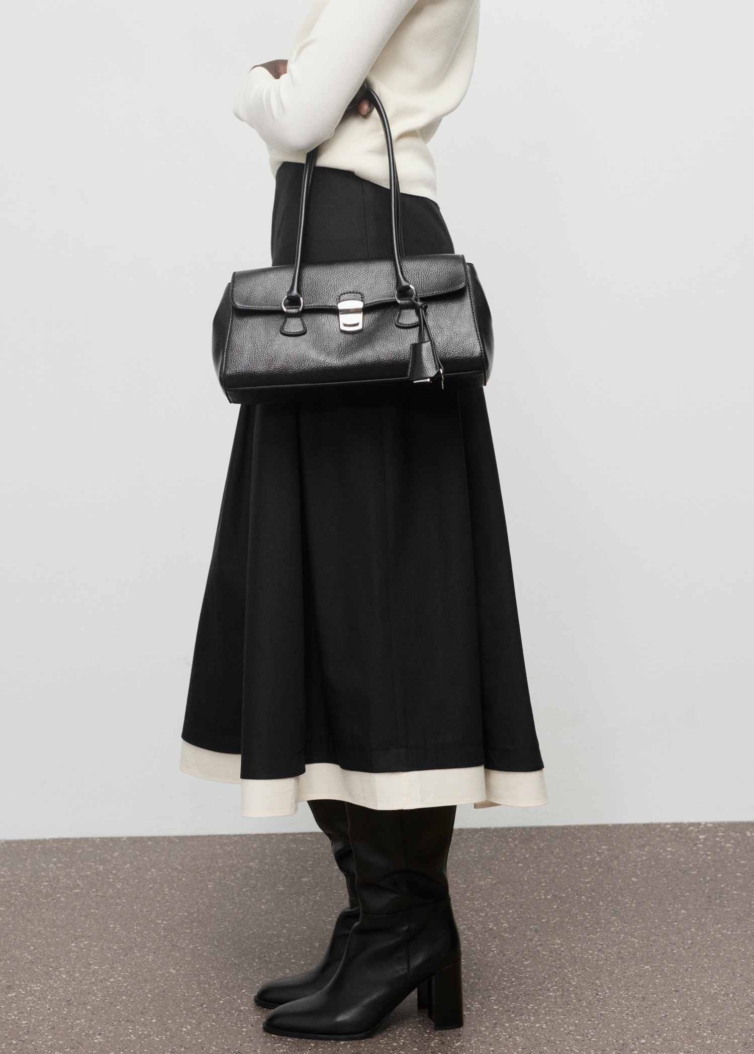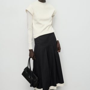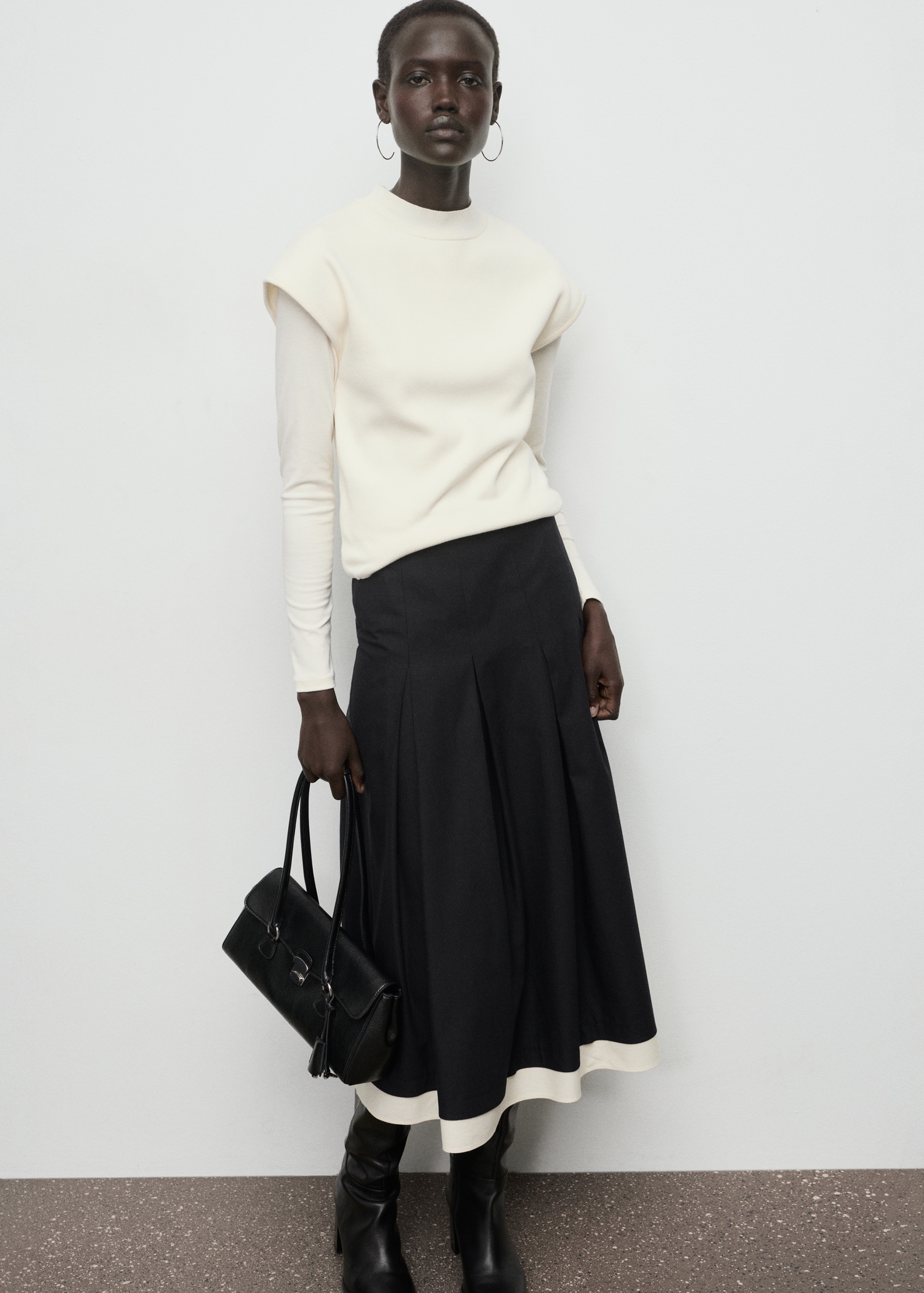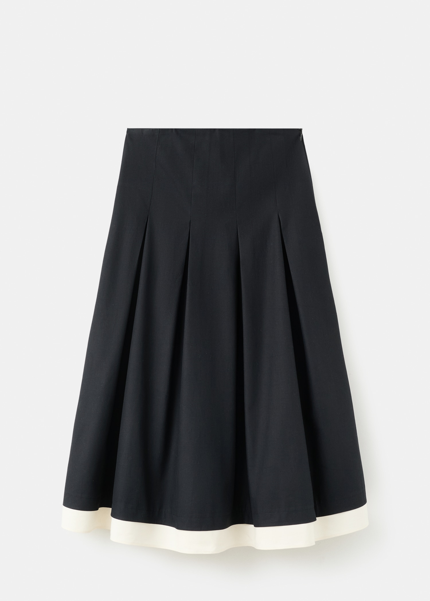 Crafted from 100% cotton fabric, this skirt features a mixed design with a midi and A-line cut. The pleats add texture, while the mid-rise and side zip ensure a comfortable fit.
