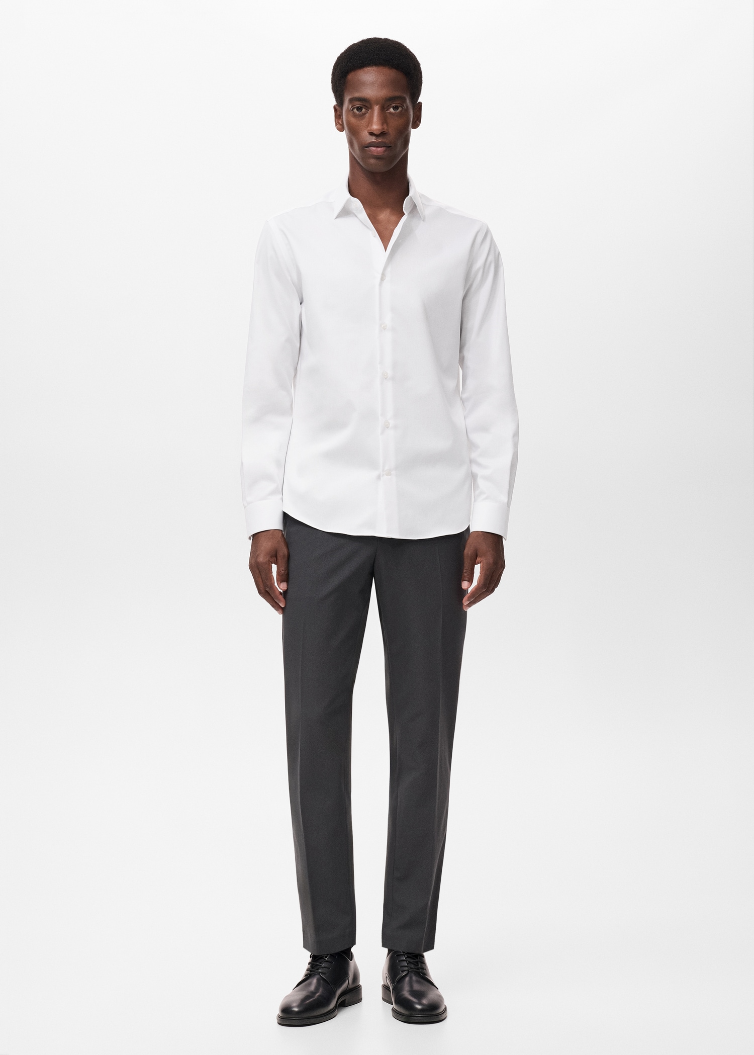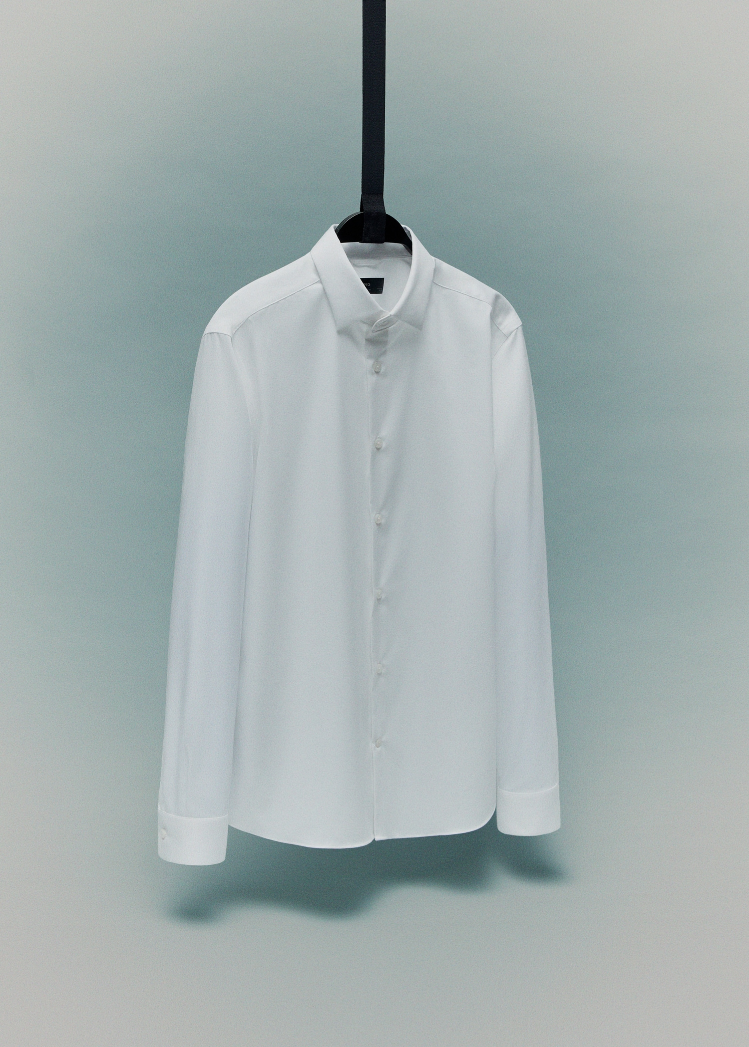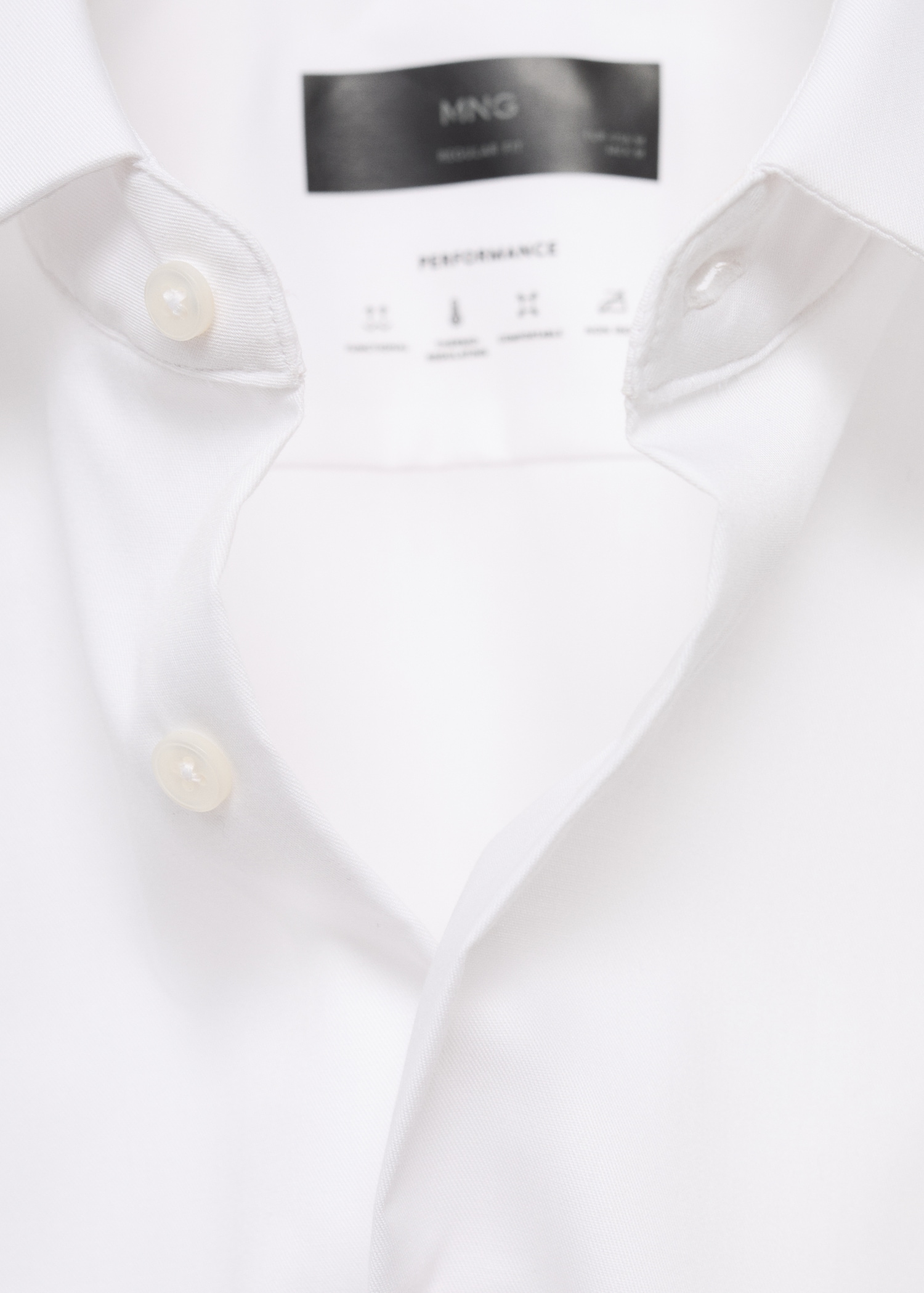 Cotton blend fabric. Regular fit. Non iron: garment that does not require ironing, made of a wrinkle-resistant fabric. Comfort Stretch fabric: Offers freedom of movement and easily returns to its original shape. Thermoregulator fabric. Classic collar. Long sleeves with buttoned cuffs. Front button closure. PERFORMANCE: A collection of garments crafted from technical fibers. This selection offers a wide range of advanced features such as bi-stretch fabrics, and quick-drying, easy-iron, thermoregulating, breathable or water-repellent properties, organised into three general categories: Thermoregulating, Functional and Comfort