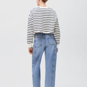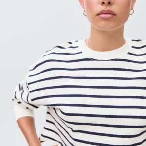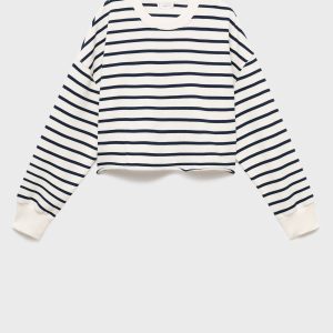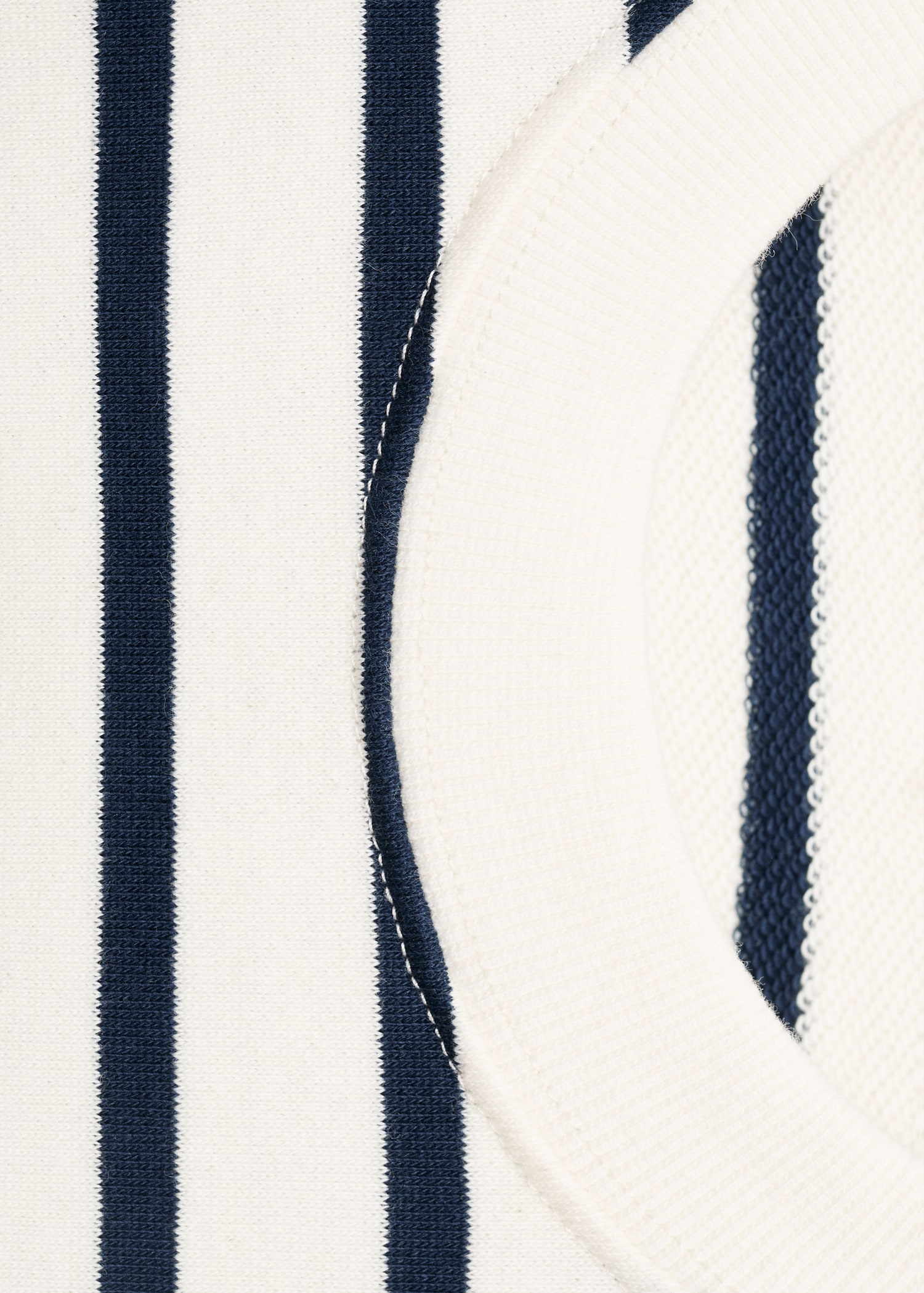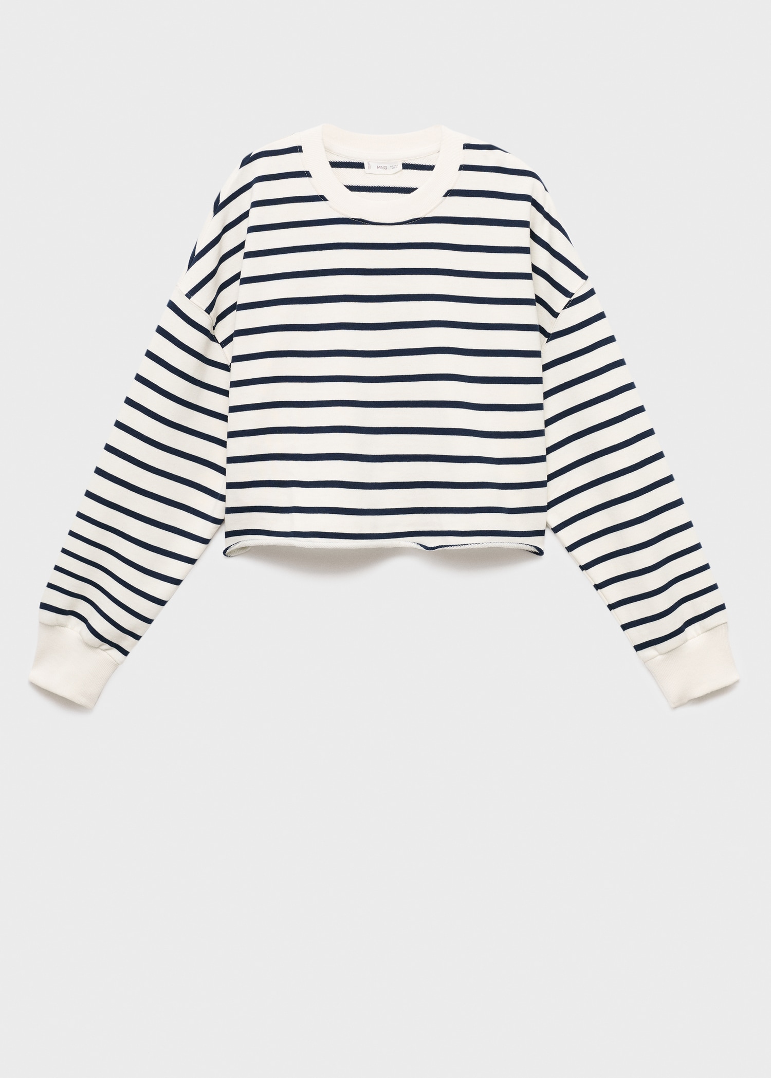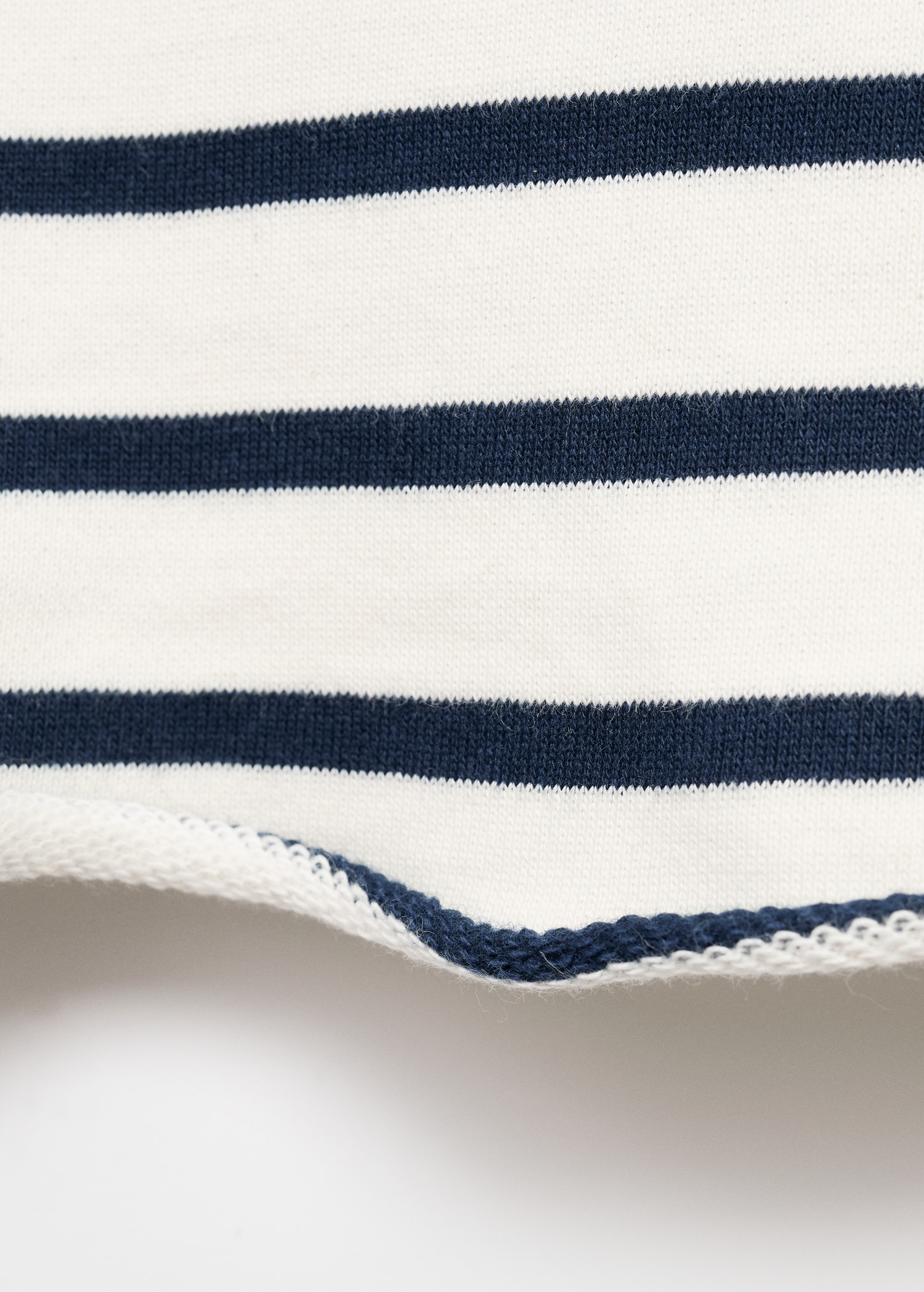 100% cotton fabric. Striped fabric. Straight Design. Crew neck. Long Sleeve. Contrasting collar and cuffs. Ribbed collar and cuffs