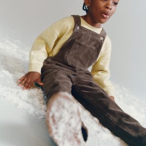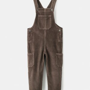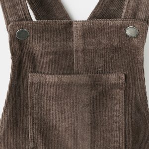 Corduroy fabric. Cotton blend fabric. Straight Design. Long design. Cargo design. Square Neckline. Sleeveless. Thin straps. Front patch pocket. Two side patch pockets. Two patch pockets at the back. Button closure