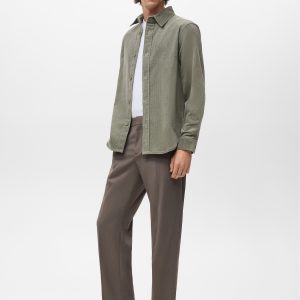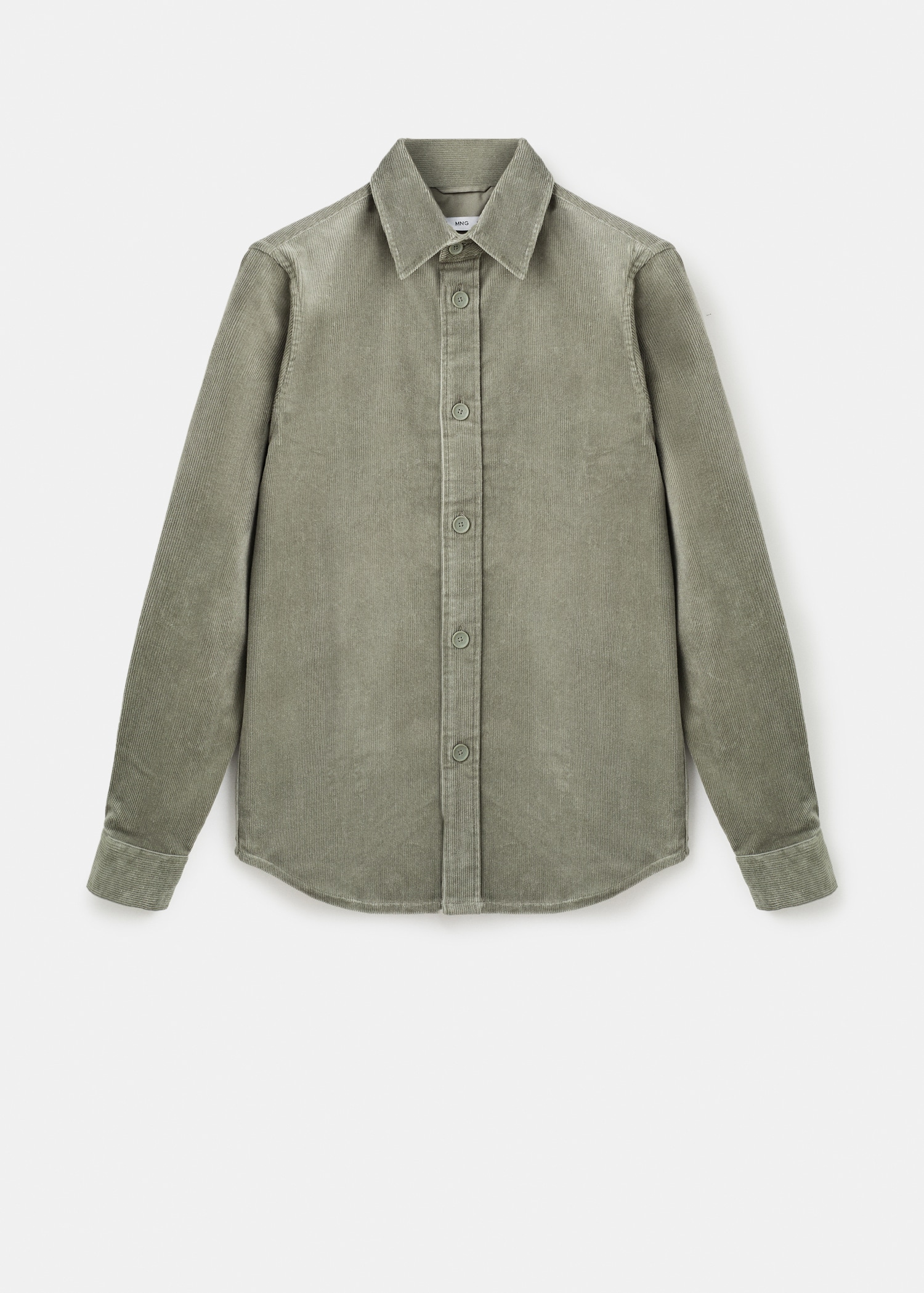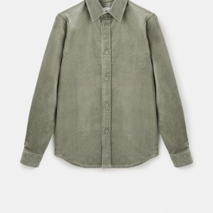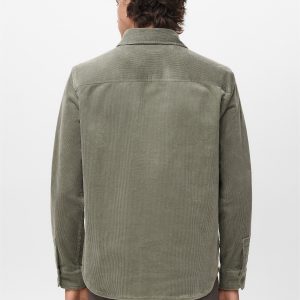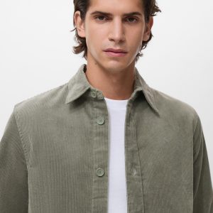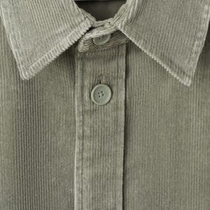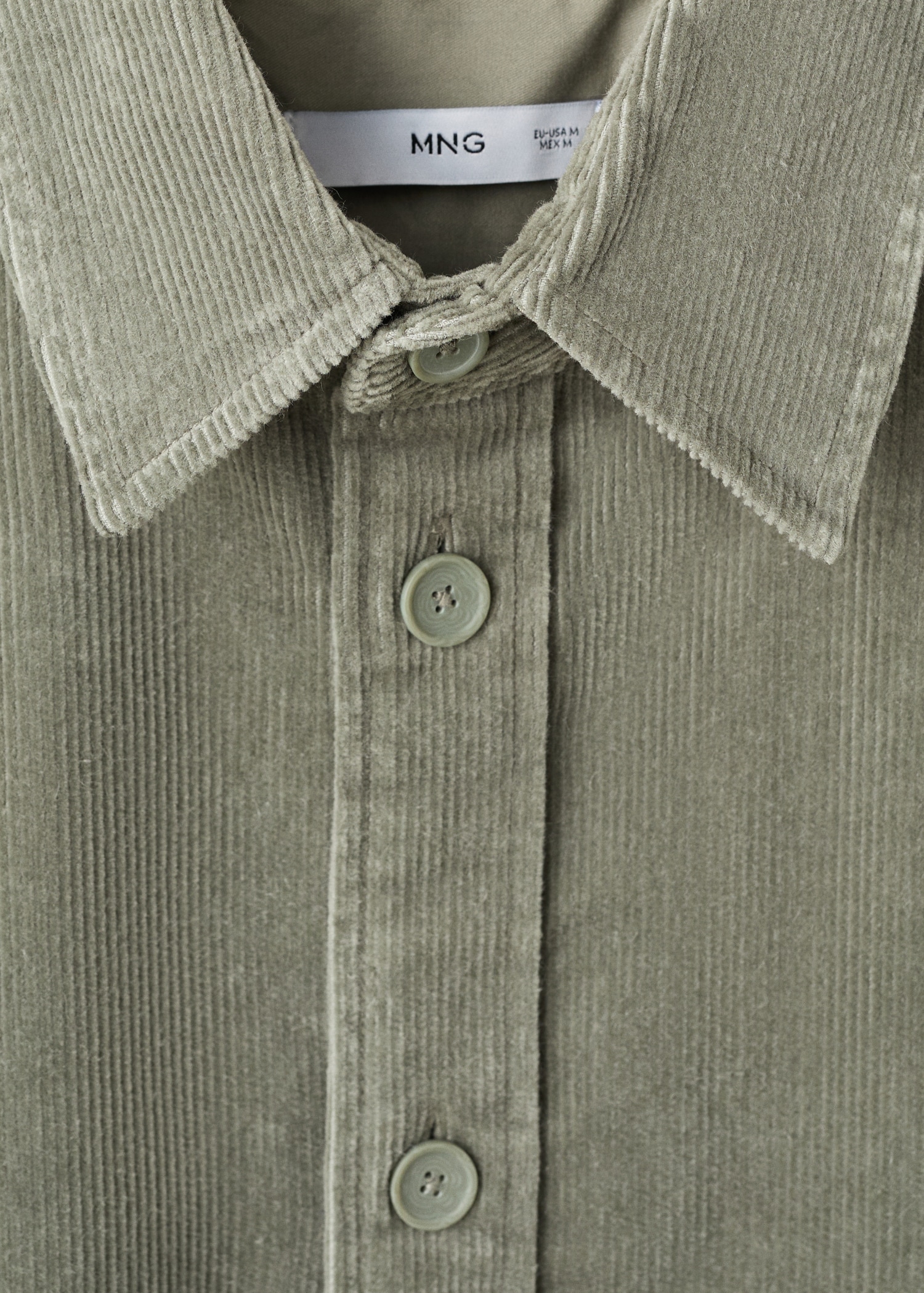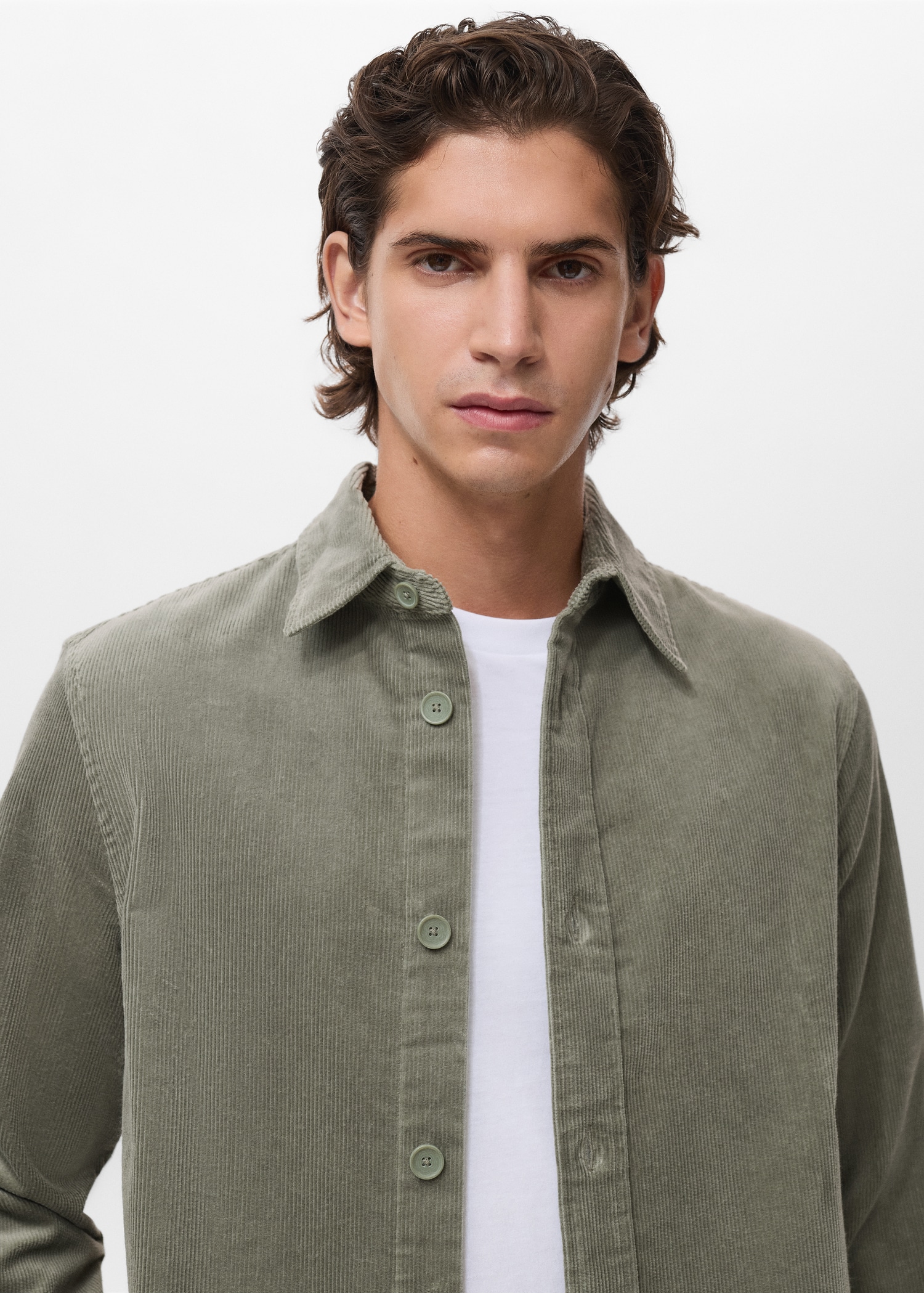 Corduroy fabric. Cotton blend fabric. The green color is exclusive online. Oversized. Classic collar. Long Sleeve. Button closure. Front closure