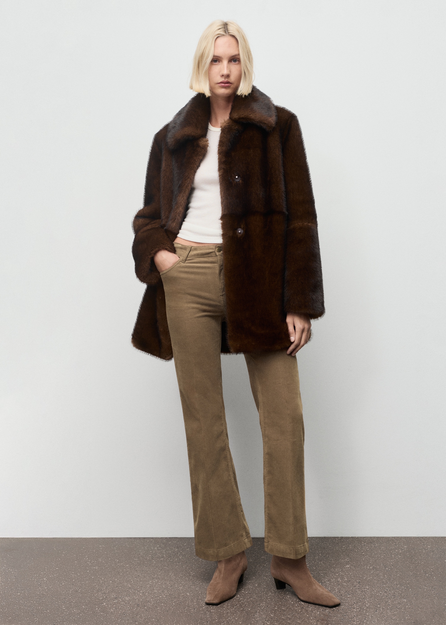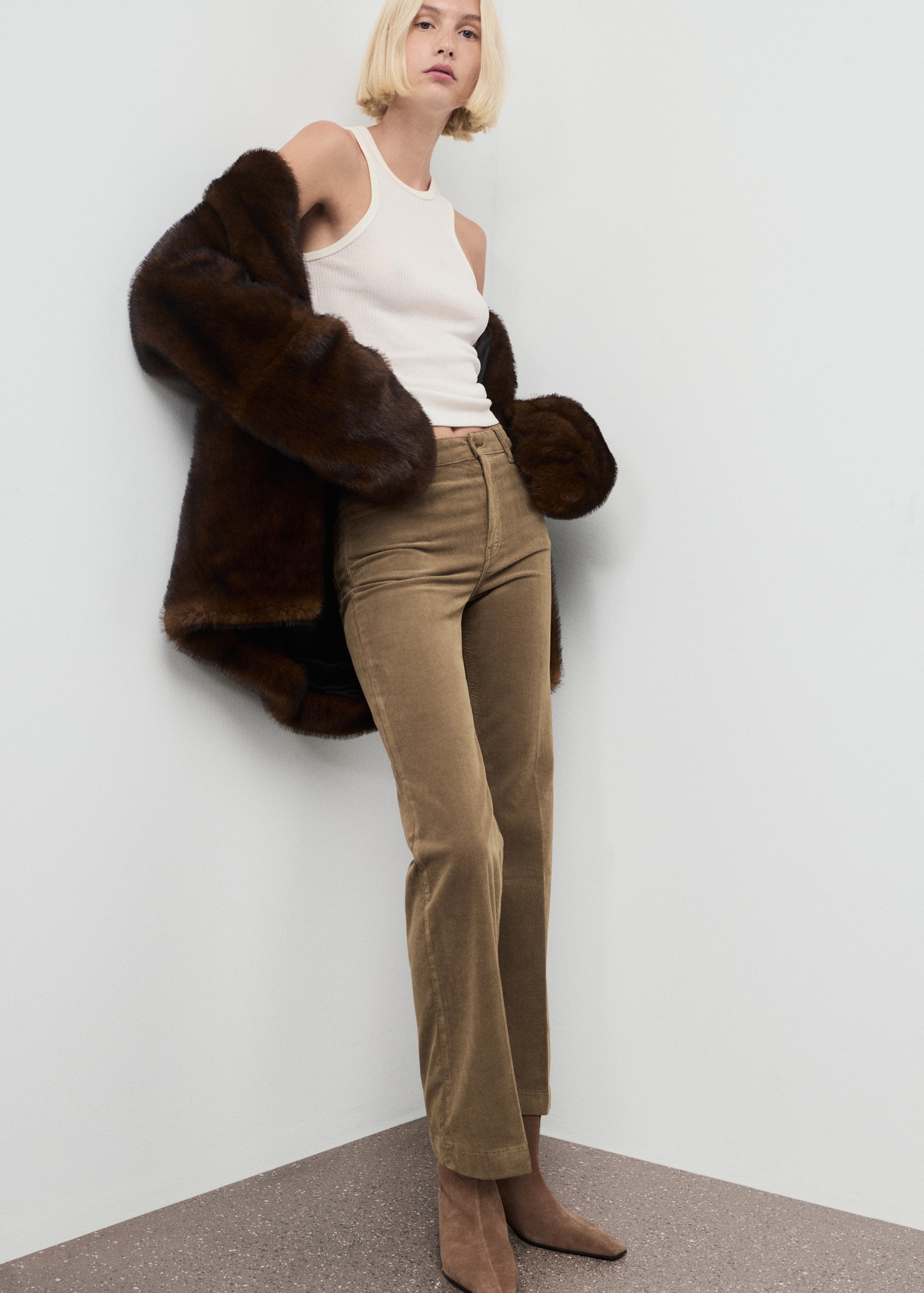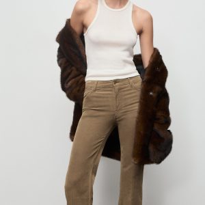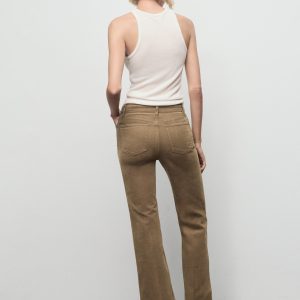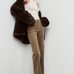 Corduroy fabric. Long design. Flare design. Mid-rise. Belt loops. Five pockets. Button and zipper closure. 100% cotton lining. Comfort fabric with elasticity