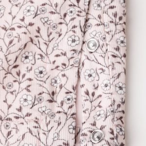 Corduroy fabric. Cotton fabric. Long design. Straps with button closure. Side button closing. Metal snap closure at the bottom