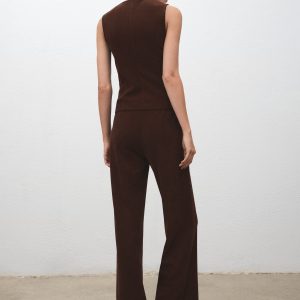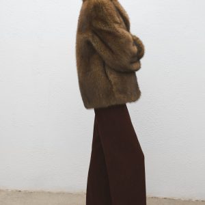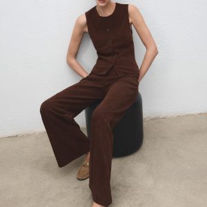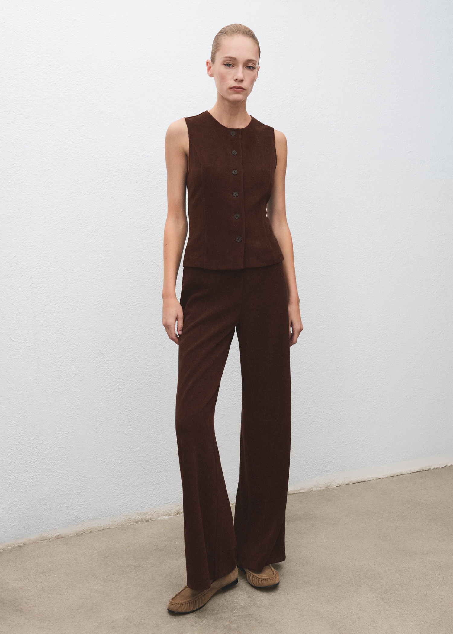 Corduroy fabric. Long design. Straight Design. Mid-rise. Elastic waistband. No closure. Total look