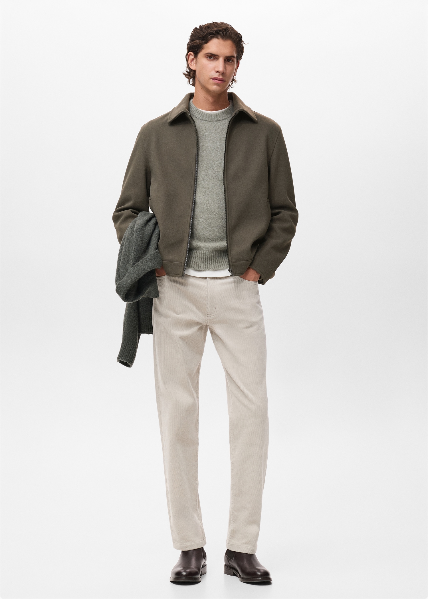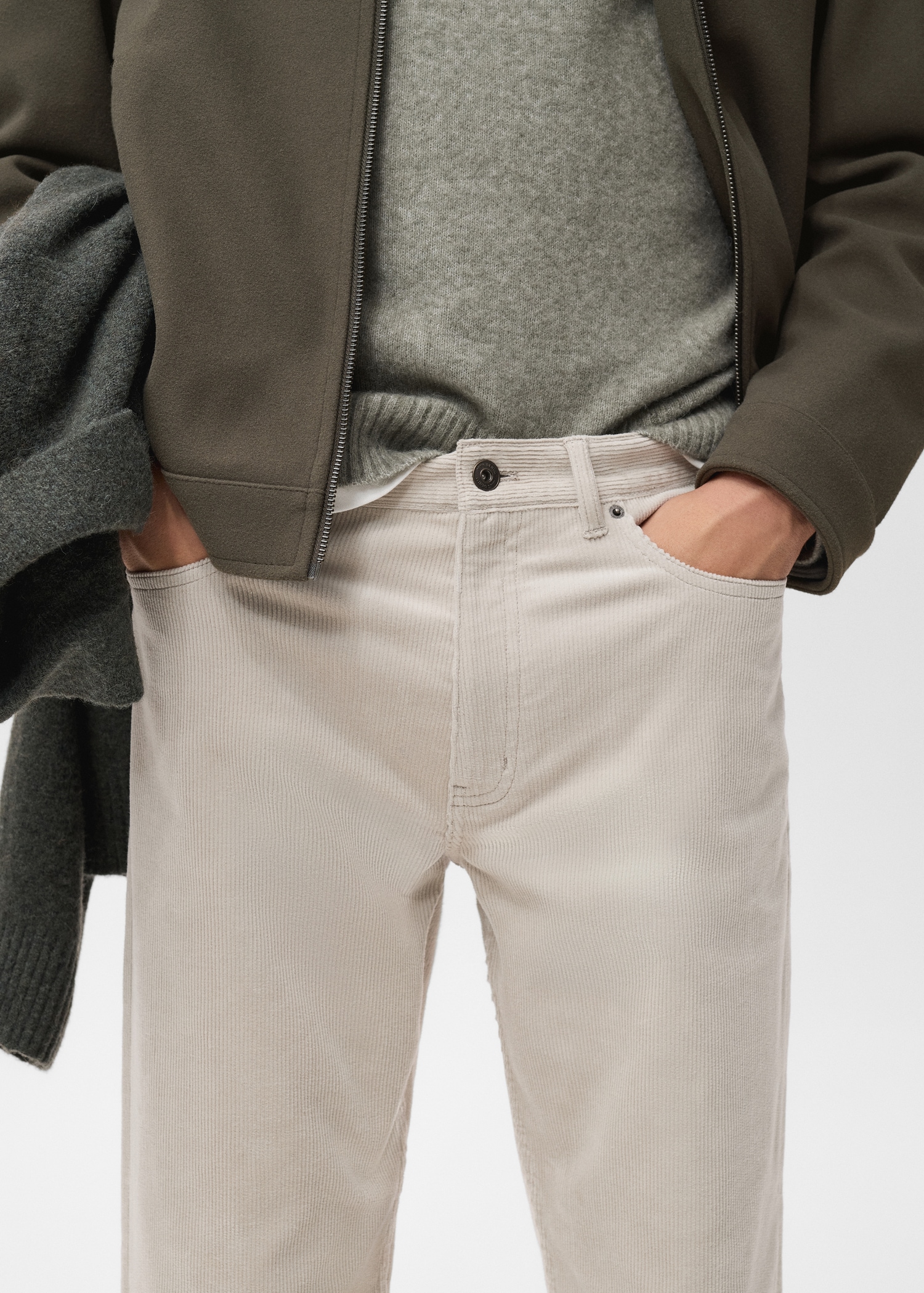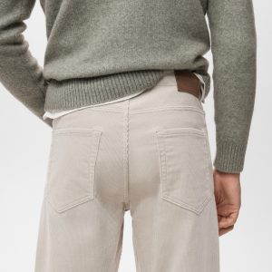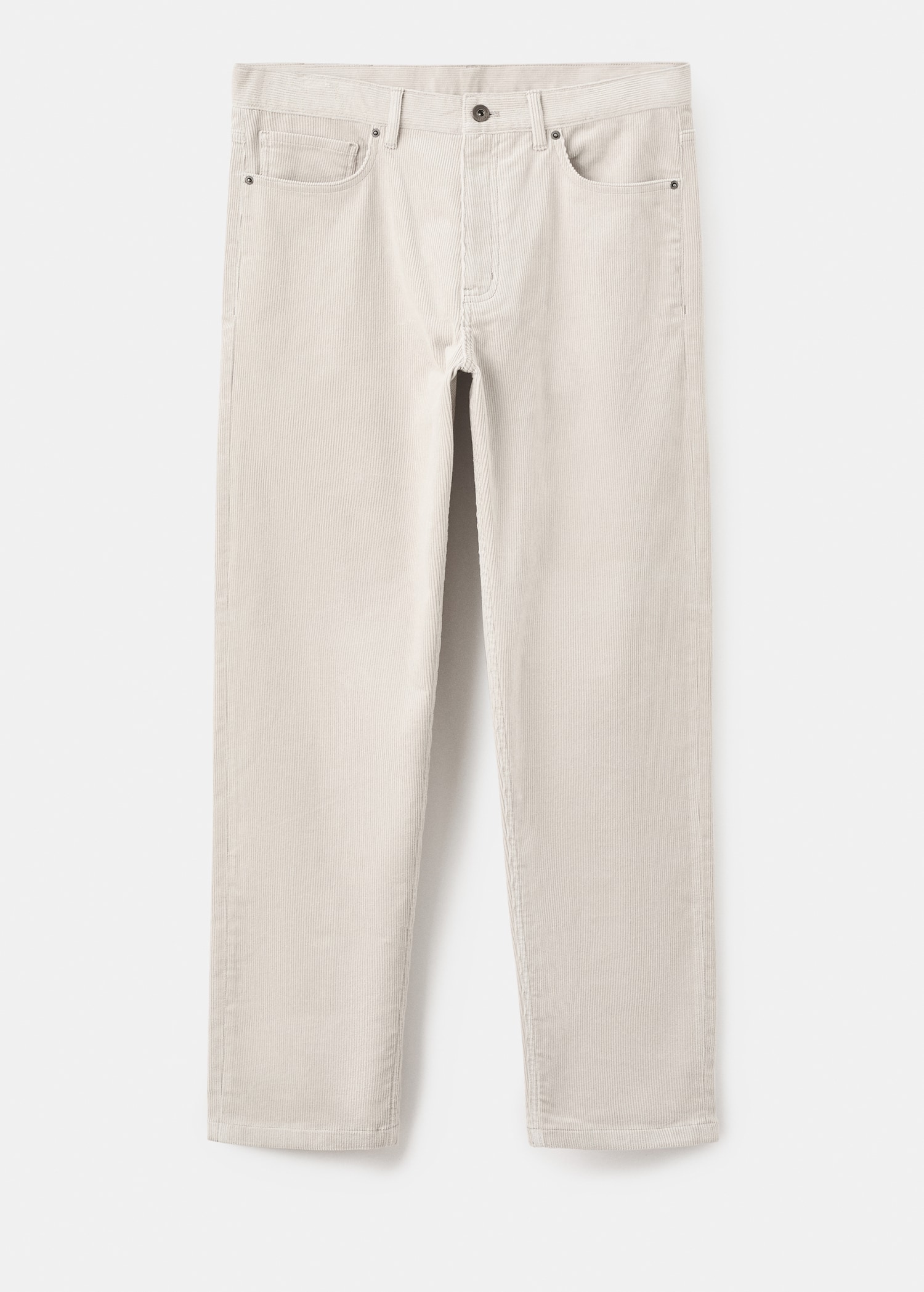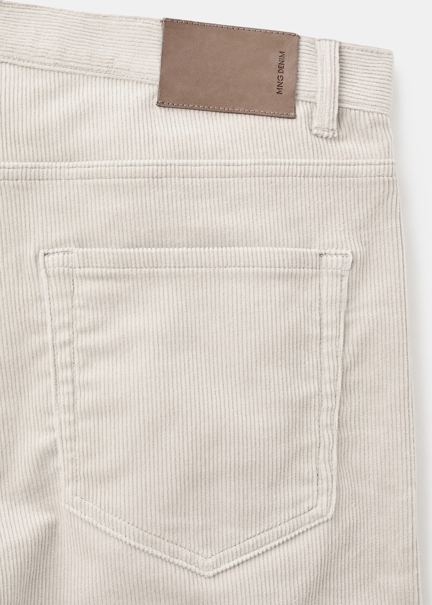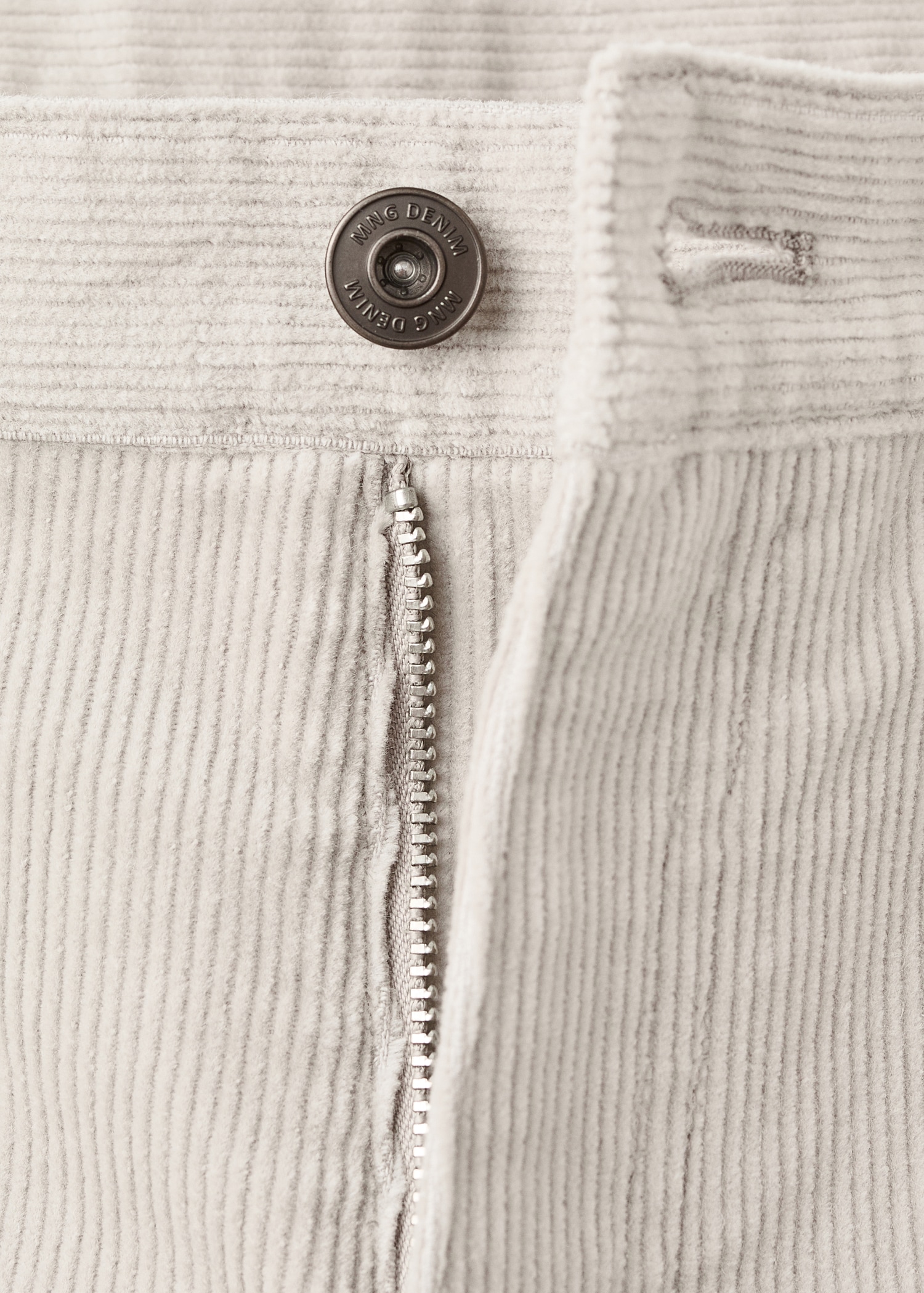 The color brown is exclusive online. Regular fit. Corduroy fabric. Cotton fabric. Two side pockets. Coin pocket at hip height. Patch pockets on the back. Belt loops. Zip and button closure