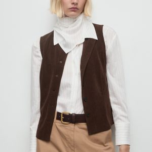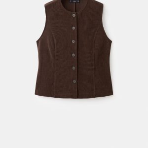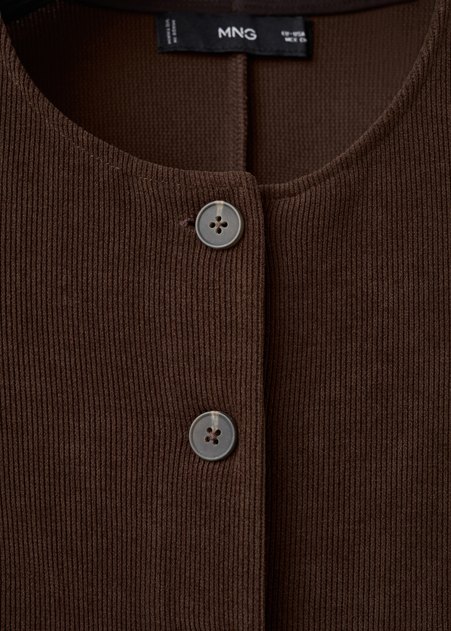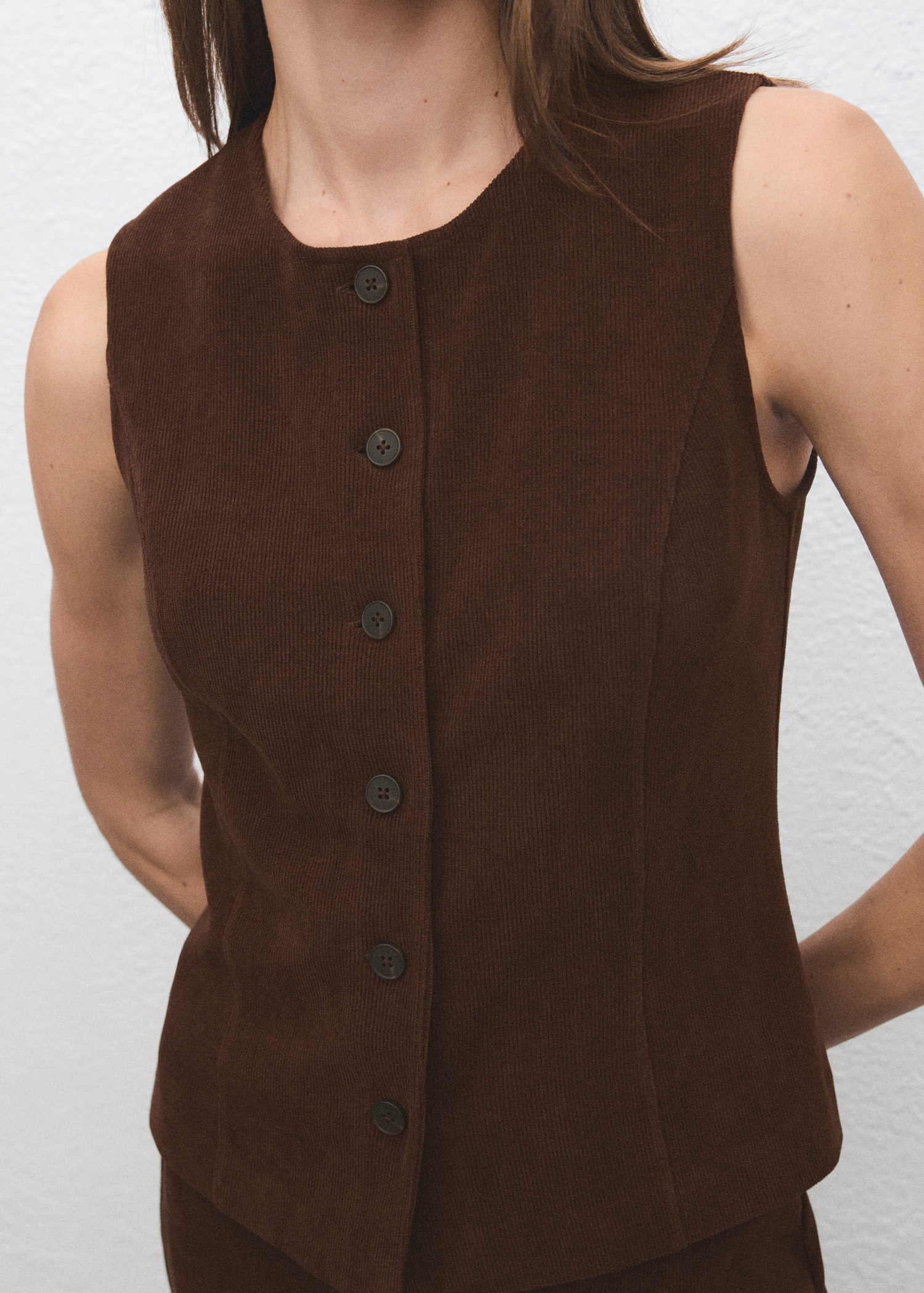 Crafted from corduroy fabric, this straight design features a round neckline and wide straps. It fastens with buttons at the front. It comes with matching trousers