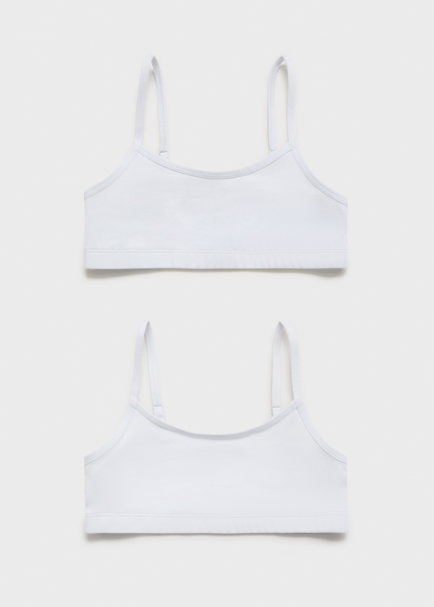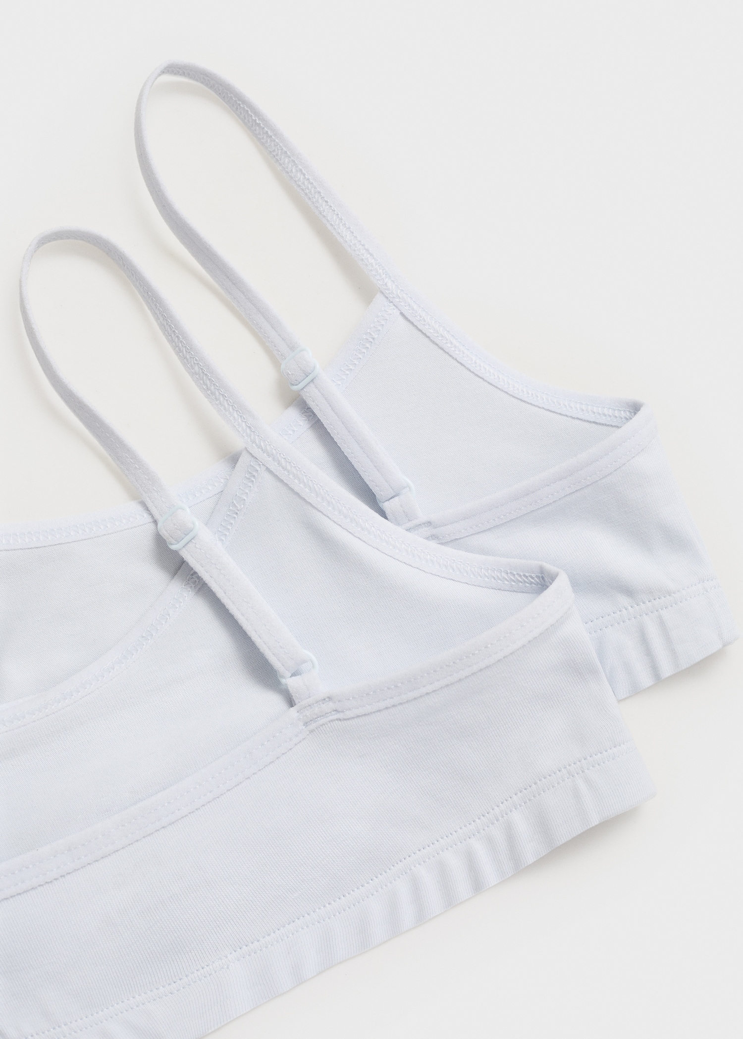 Cotton fabric. Stretch fabric. Plain design. Thin straps. Hem with elastic band. No closure