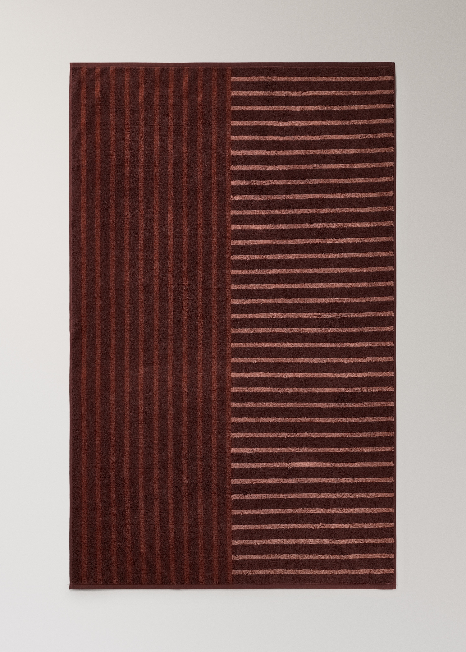 Size: 90x150cm. 100% Cotton. Two-tone stripe design. Highly absorbent and breathable for quick drying. Available in various colors. Coordinates with more products from the collection