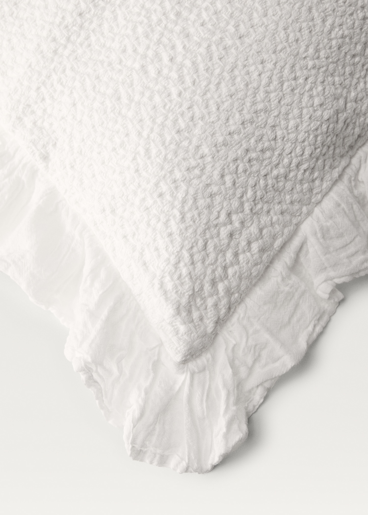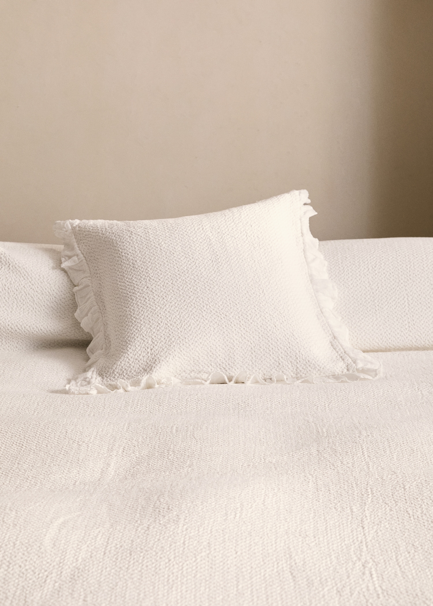 100% Cotton. Size: 50x50cm. Does not include insert. Soft texture. Finished with decorative ruffles that offer an elegant and classic style. Structure of durable and high-quality materials. Ideal for a warm and comfortable rest in winter. Coordinates with more products from the collection. Cushion cover