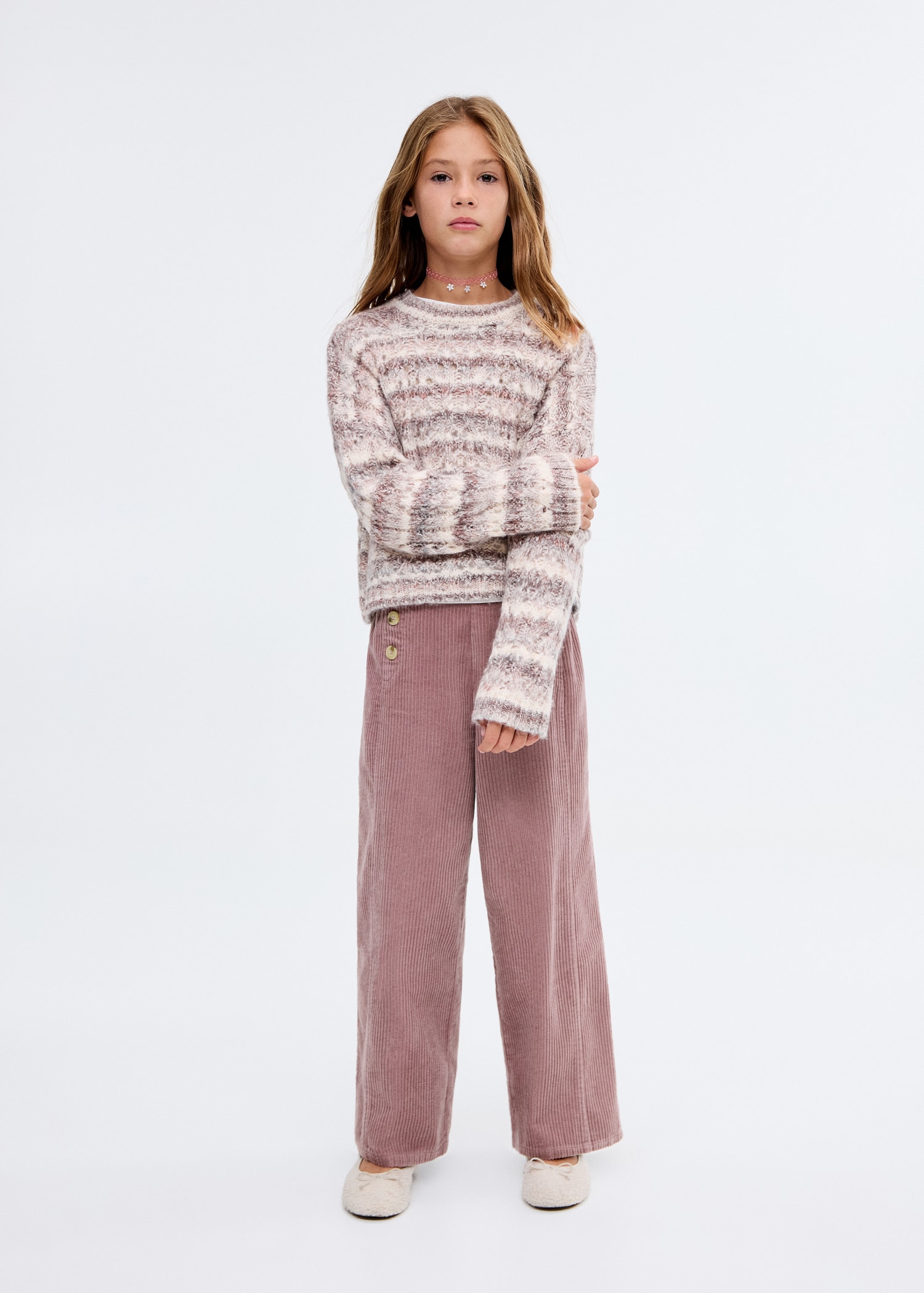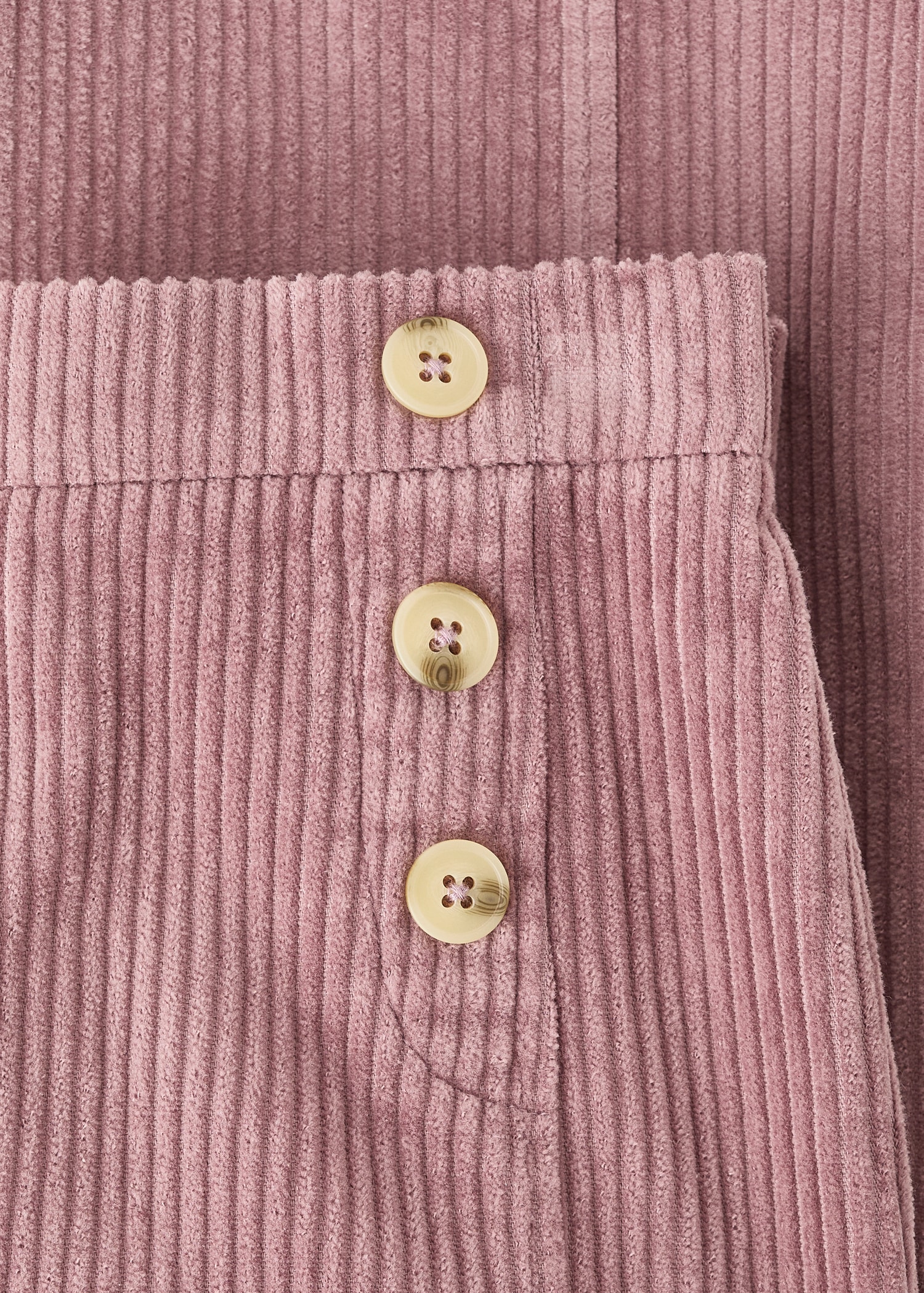 Crafted from 100% cotton corduroy fabric, this long and straight design features an elasticated waist for added comfort. The buttons at the front and detailed stitching complete its style.