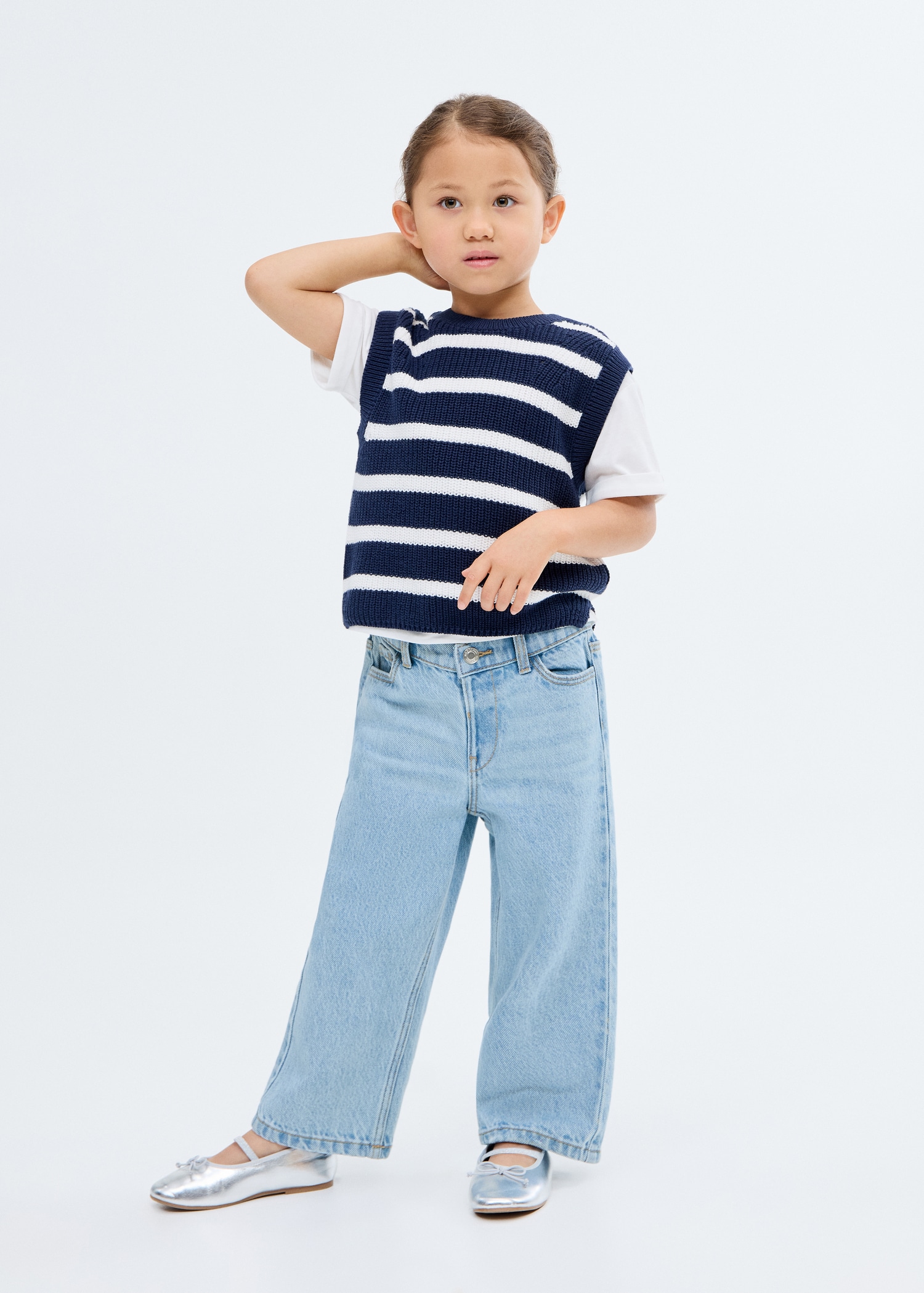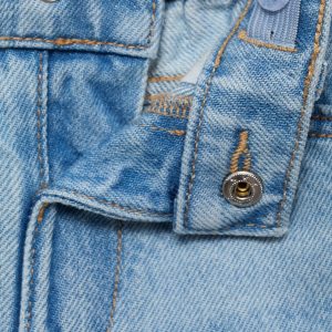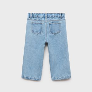 100% cotton fabric. Long design. Culotte fit. Elastic waist. Belt loops. Button closure. Adjustable waistband with elastic. Two side pockets. Two patch pockets at the back. Back to school