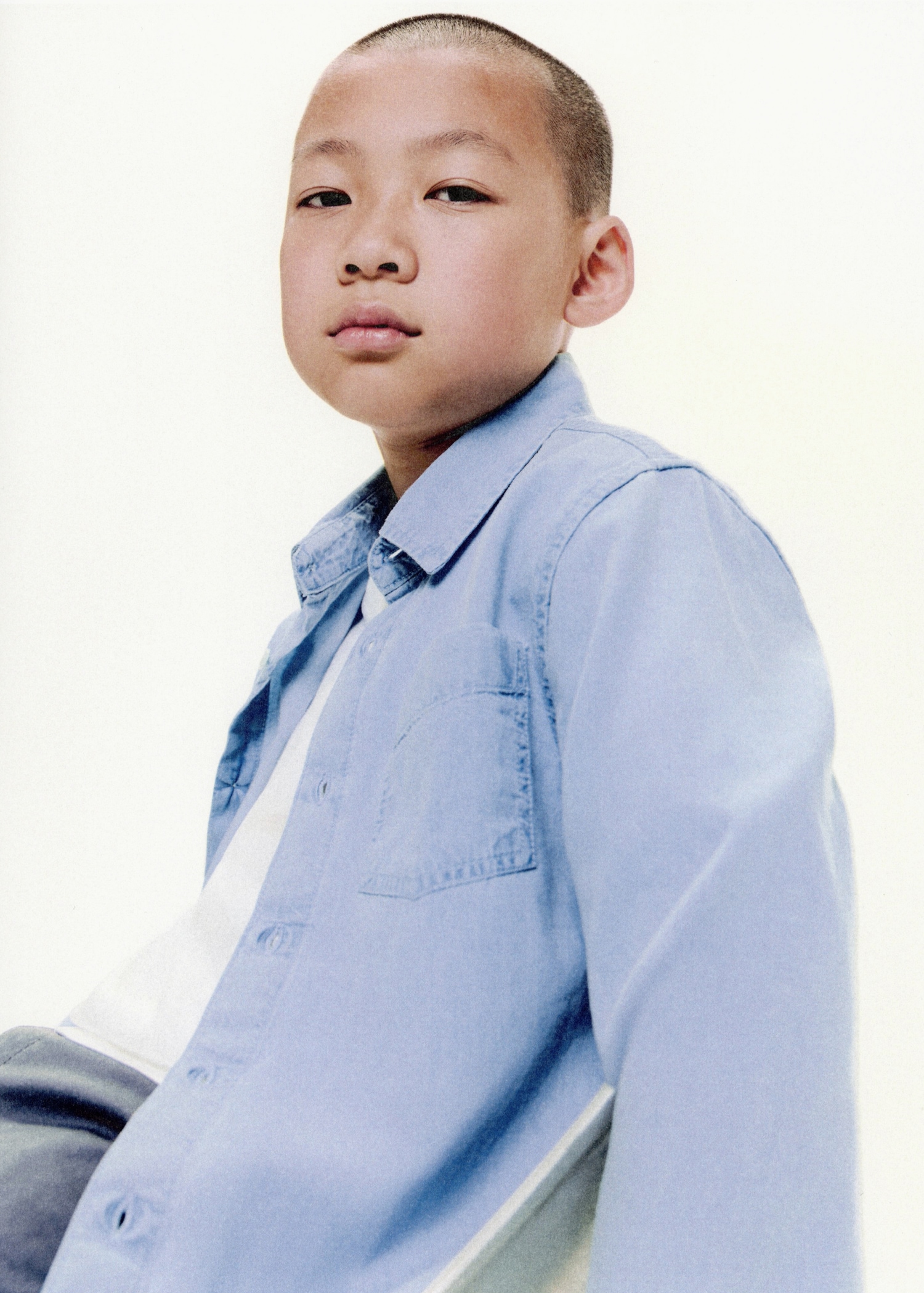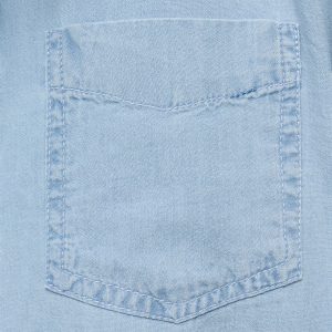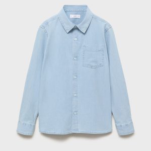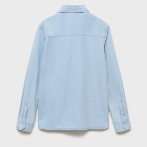 100% cotton fabric. Denim fabric. Straight Design. Shirt collar. Long sleeves with buttoned cuffs. Front button closure. Front patch pocket