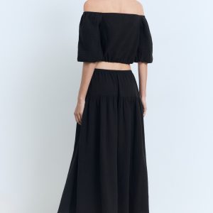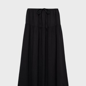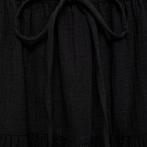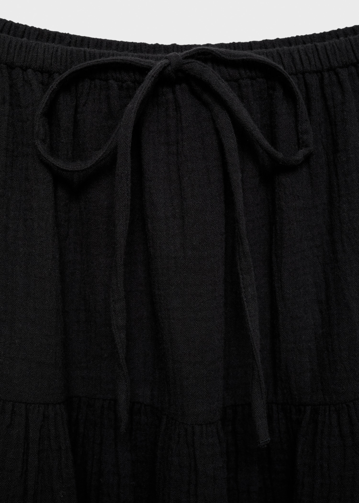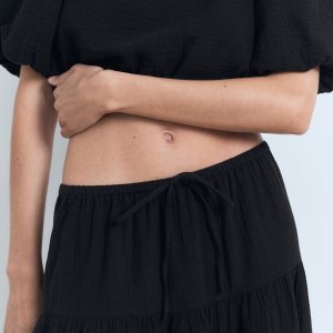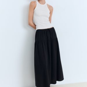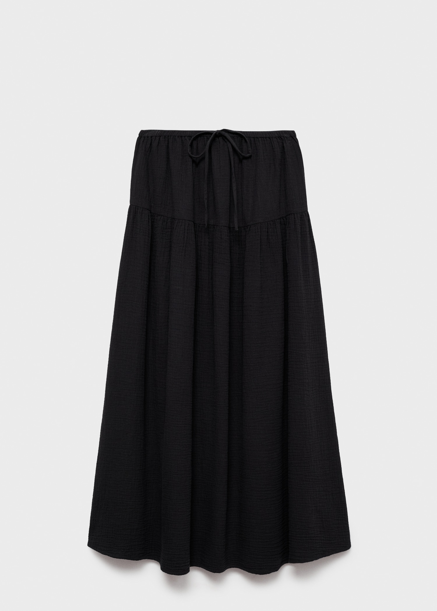 100% cotton fabric. Long design. A-line design. Low waist. Drawstring waist. No closure. Total look