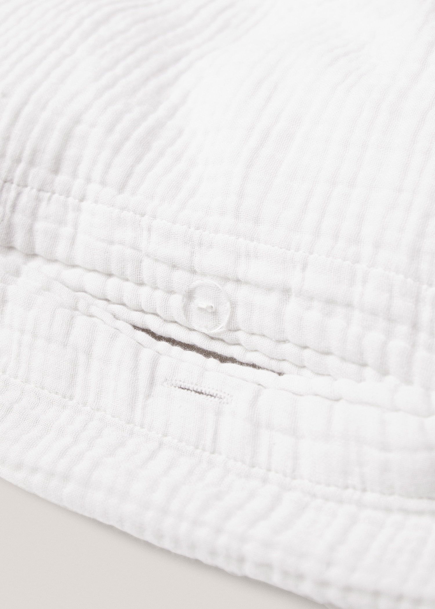 100% Cotton. Size: 94×86 inches. Queen/King Bed. Chiffon fabric. Three-layer muslin. Soft texture. Wrinkled and natural finishing. Quick-dry fabric. Adds a cozy and warm touch. Available in various colors. Coordinates with more items from the collection. Mediterranean style. Match it with the pillowcases and cushion covers of the same collection to have a bedroom in perfect harmony. Button closure. Does not include insert. Online Exclusive