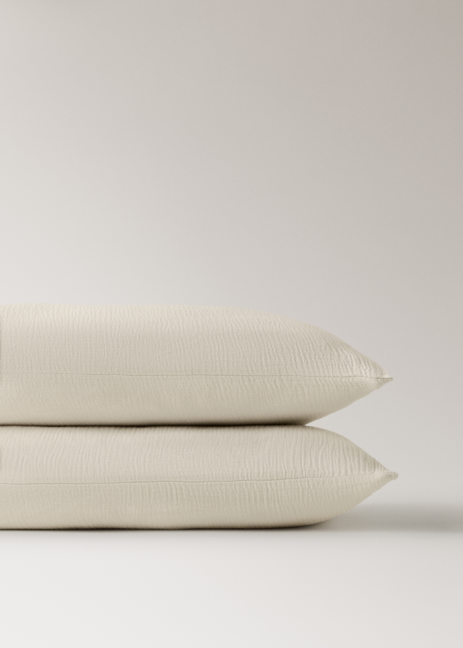 Pack of 2. Size: 50x75cm. 100% cotton fabric. 250 threads. Chiffon fabric. No closure. Does not include insert. Three-layer muslin. Pleasant texture. Combine matching pillowcases in three available sizes. Soft texture. Quick-dry fabric. Wrinkled and natural finishing. Available in various colors. Pair it with more items