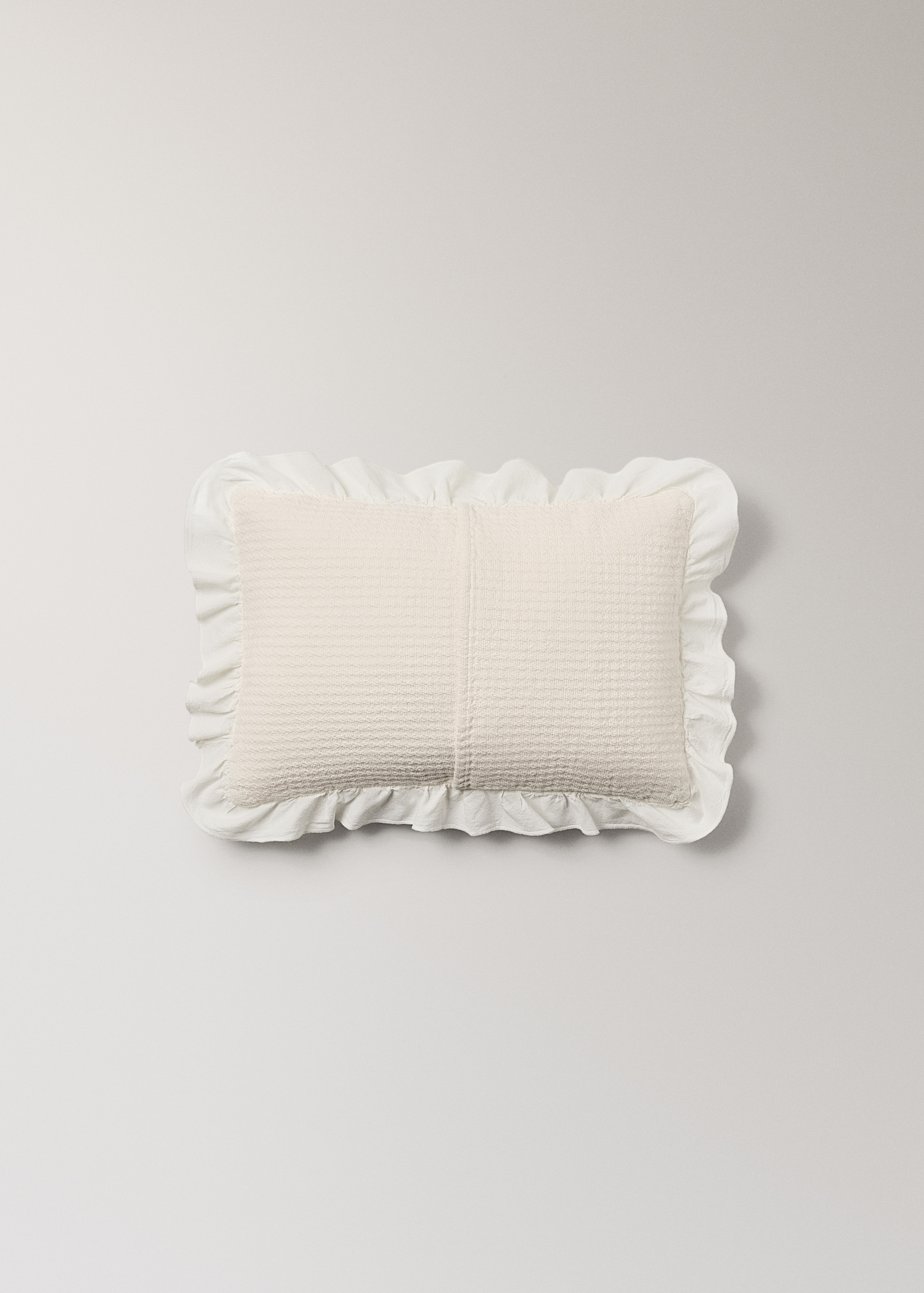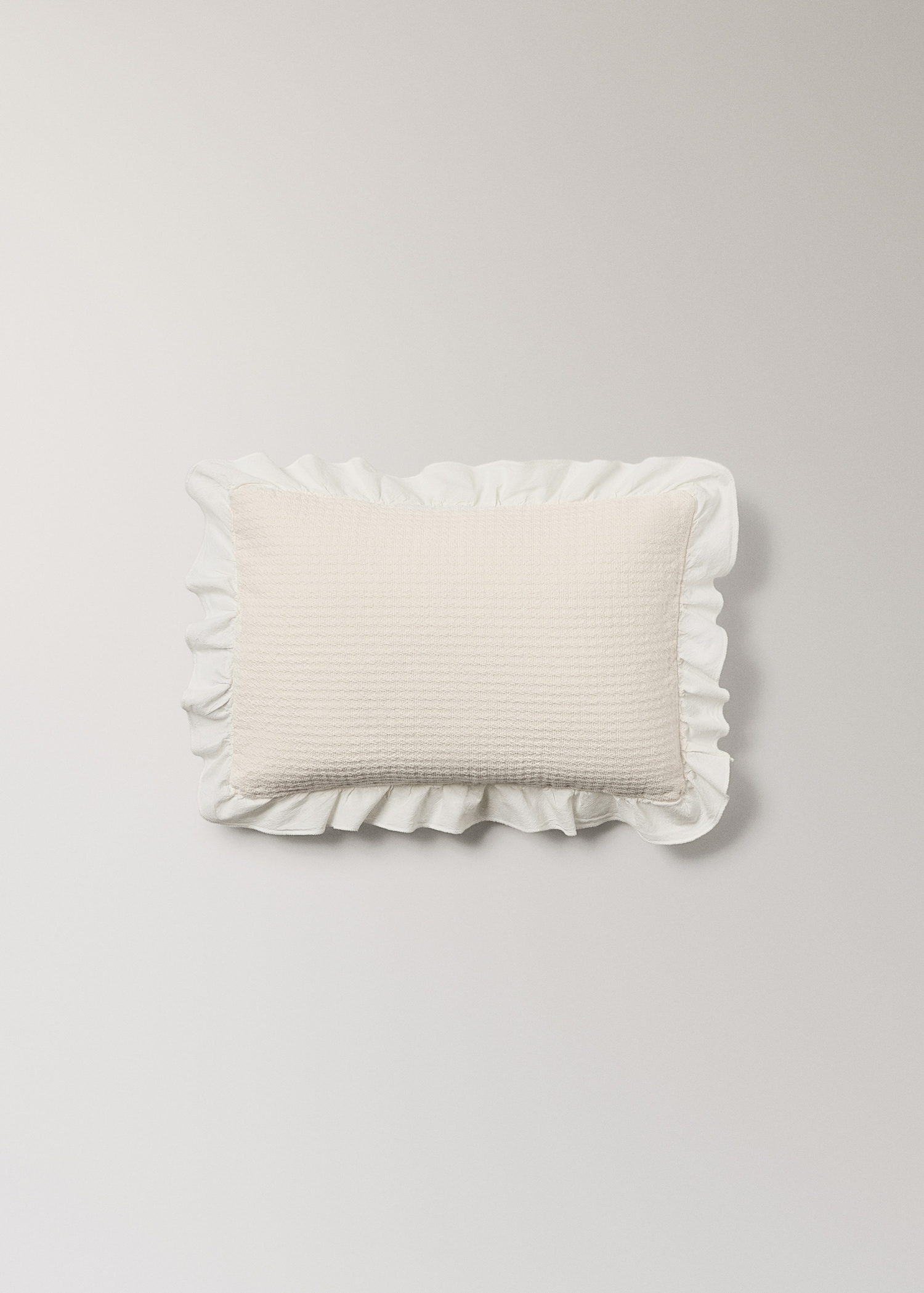 100% Cotton. Size: 30x40cm. Garment-dyed fabric. Finished with ruffles. Ideal for a comfortable rest for the little ones at home. Coordinates with more products from the collection