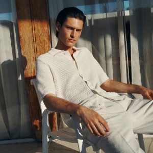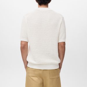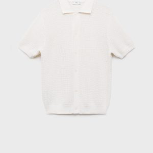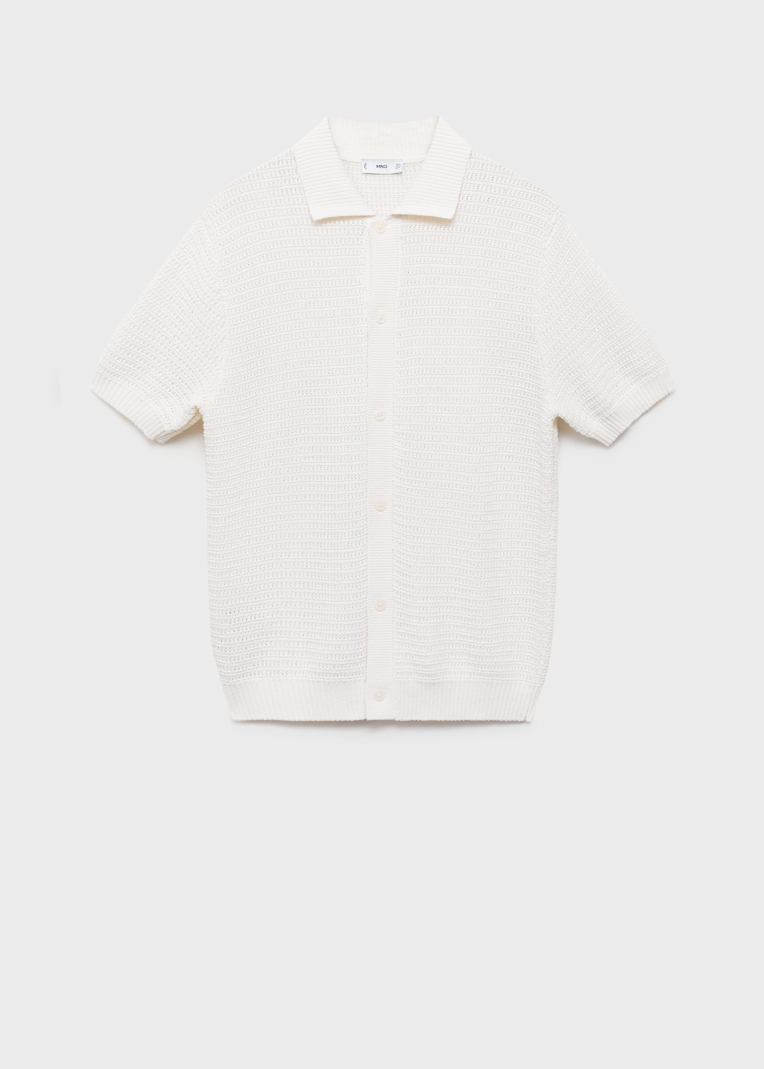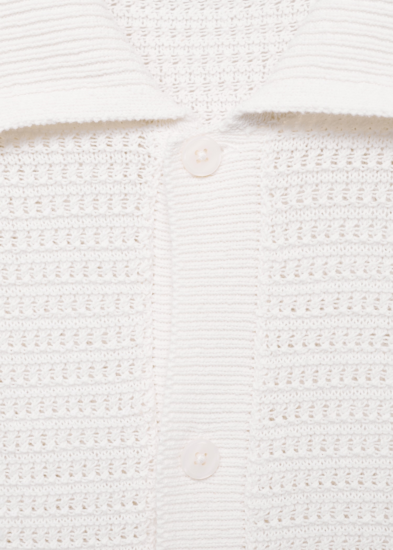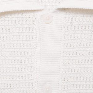 Regular fit. Cotton blend fabric. Fine-knit fabric featuring striped eyelet details. Front button closure. Ribbed finish on collar, sleeves, placket and hem. Straight hem. Promotional product