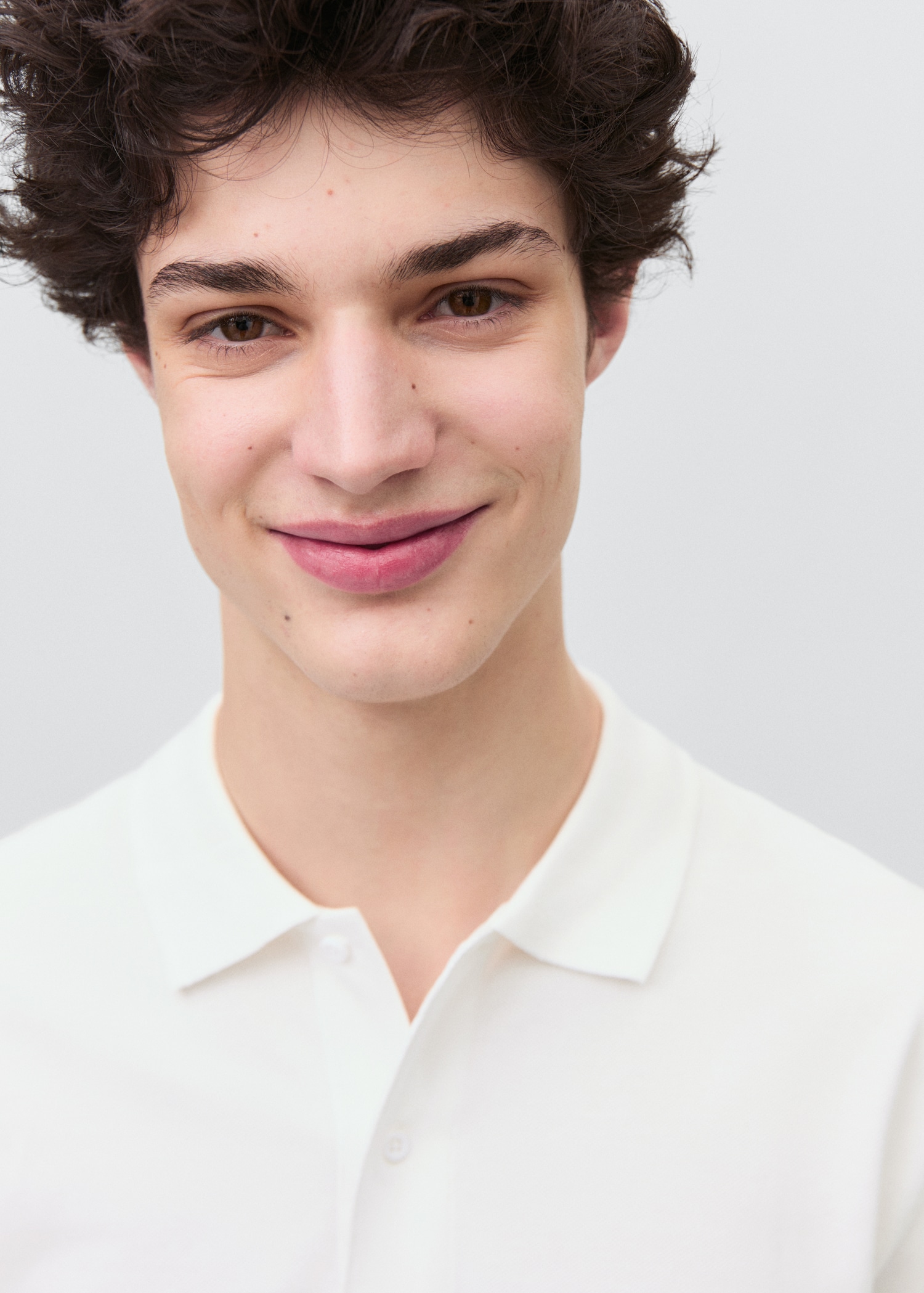 100% Cotton. Piqué fabric. Polo collar with button closure. Short sleeves. Hem with two side slits