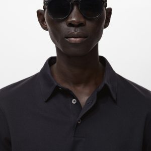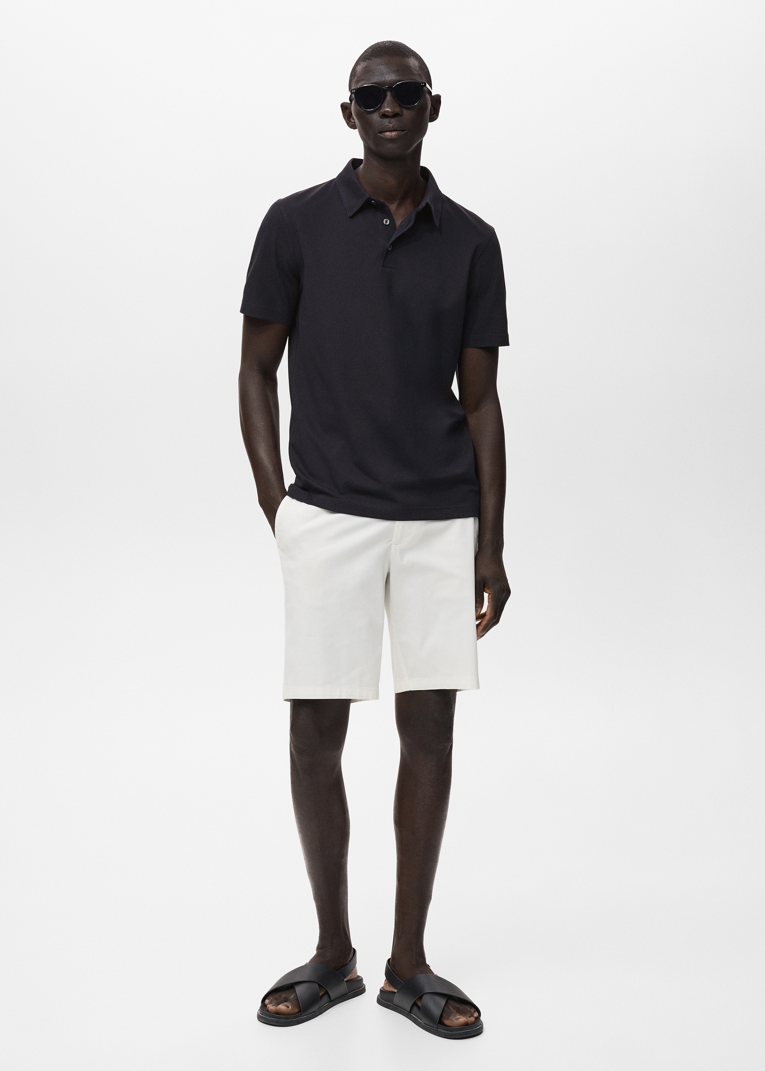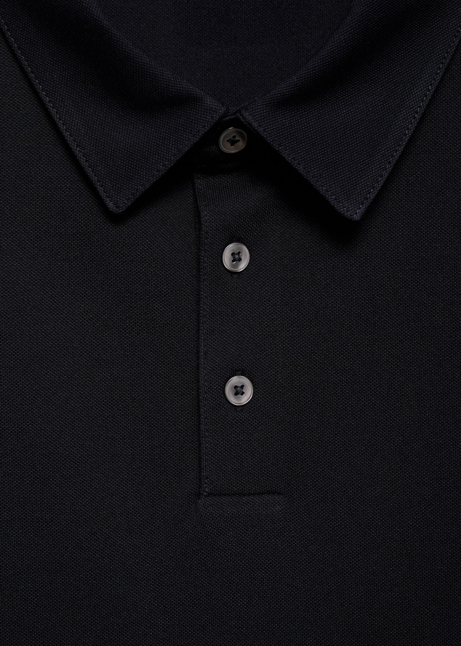 Cotton blend fabric. Slim Silhouette. Polo collar with button closure. Stitching detail. Short sleeve. Straight hem. ESSENTIALS: Made to last. Slim fit. Cotton piquet fabric. Short sleeves. The color brown is exclusive online