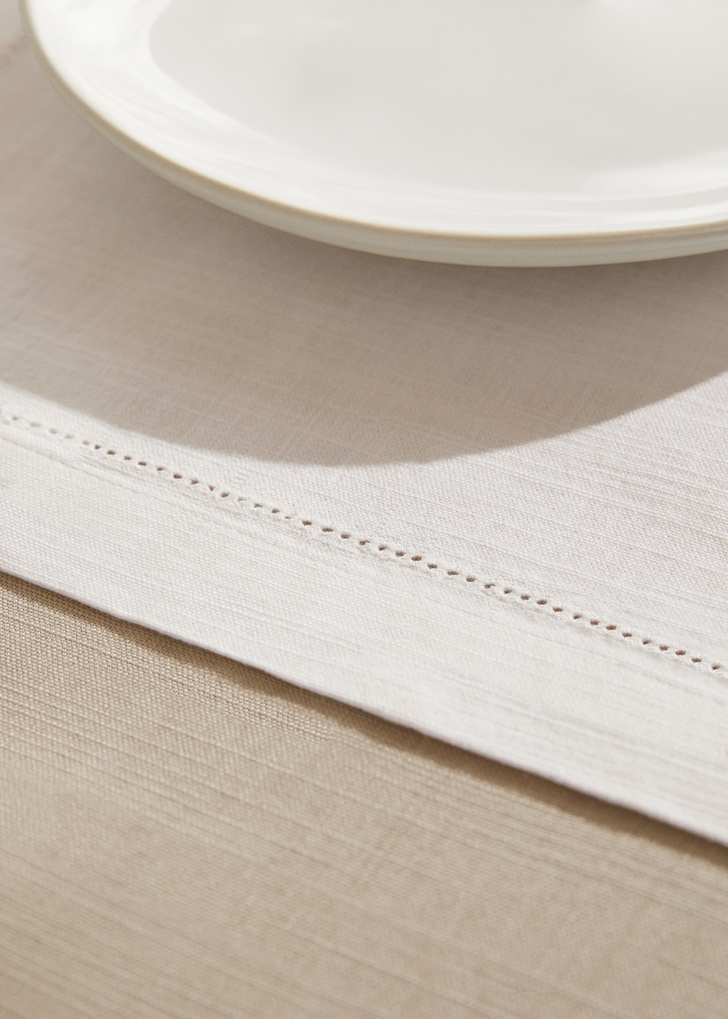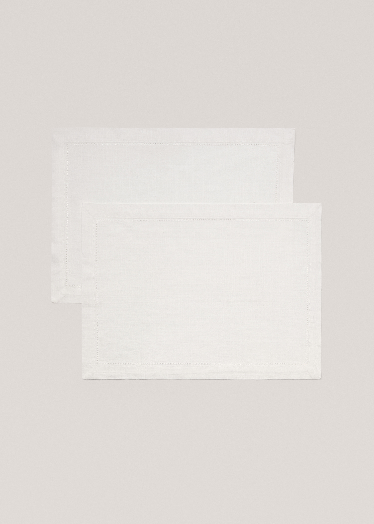 Individual placemat. 100% Cotton. Pack of 2. Size: 30x50cm. Embroidered finish. Hemstitch detail. The best fabrics to set the table and share meal moments with your loved ones. Coordinates with more products from the collection