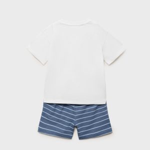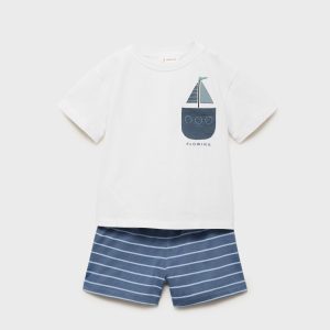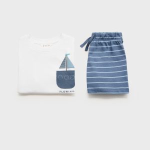 Pack of short-sleeved t-shirt and short pajama pants. 100% cotton fabric. Short design. Printed design. Sailor print. Pajama top. Short sleeve. Crew neck. Printed graphic on the chest. Shorts. Striped print. Elastic waistband with adjustable drawstring
