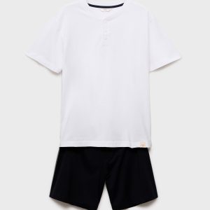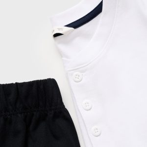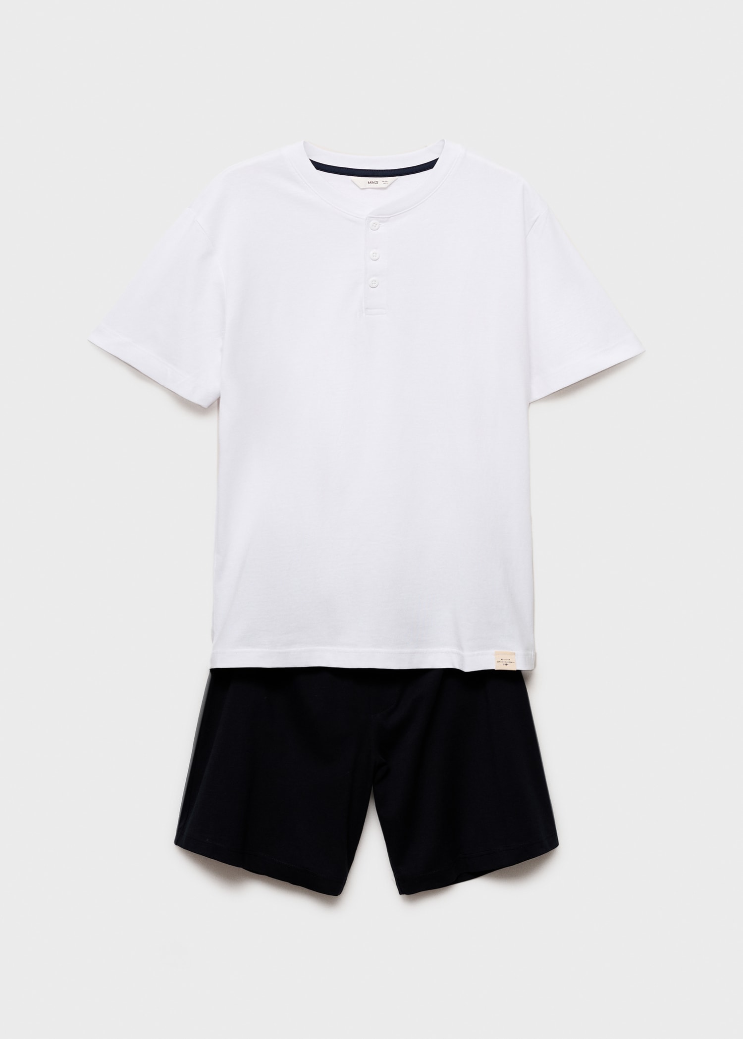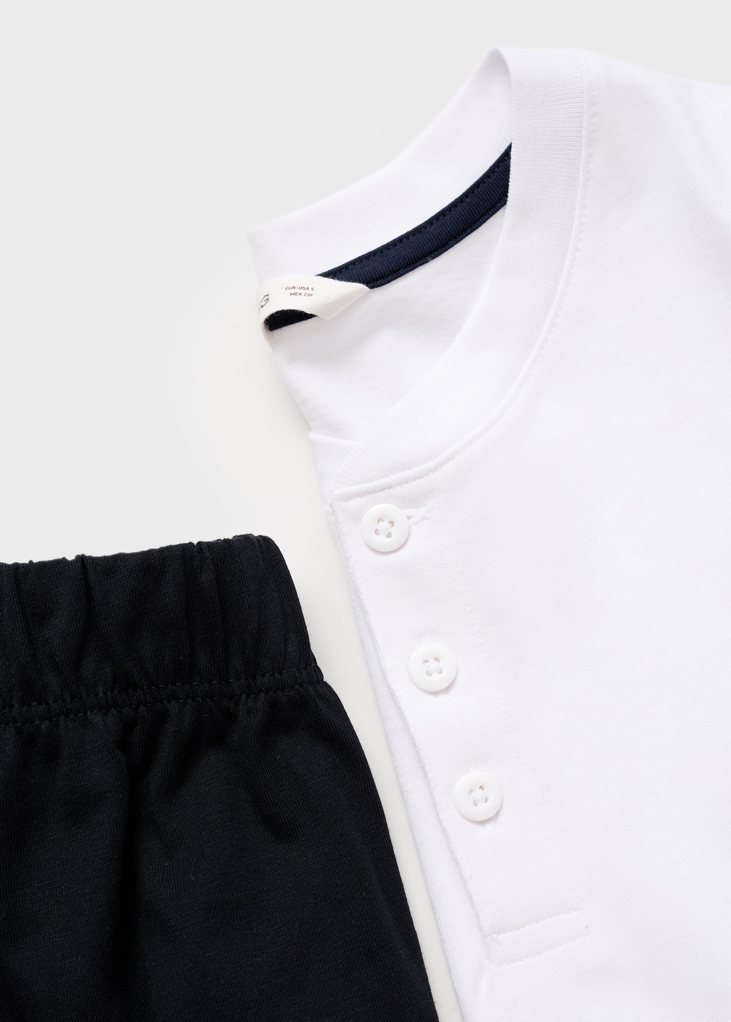 Pack of 2. 100% cotton fabric. Short design. T-shirt. Crew neck. Shorts. Elastic waist