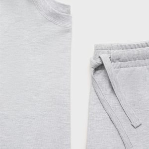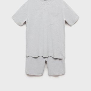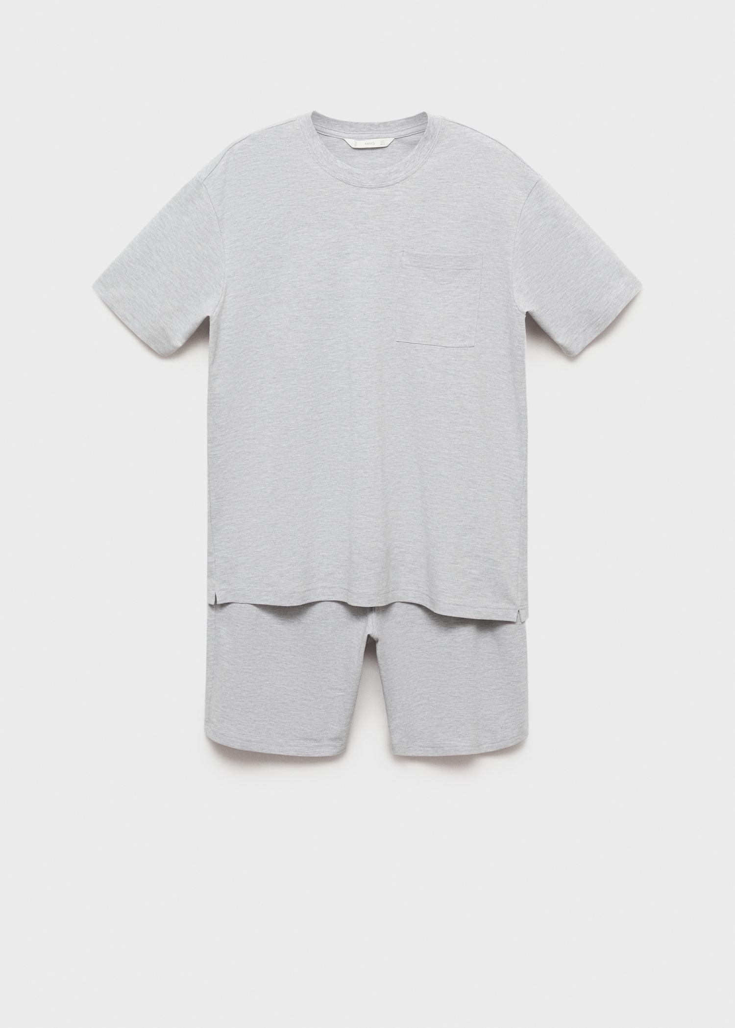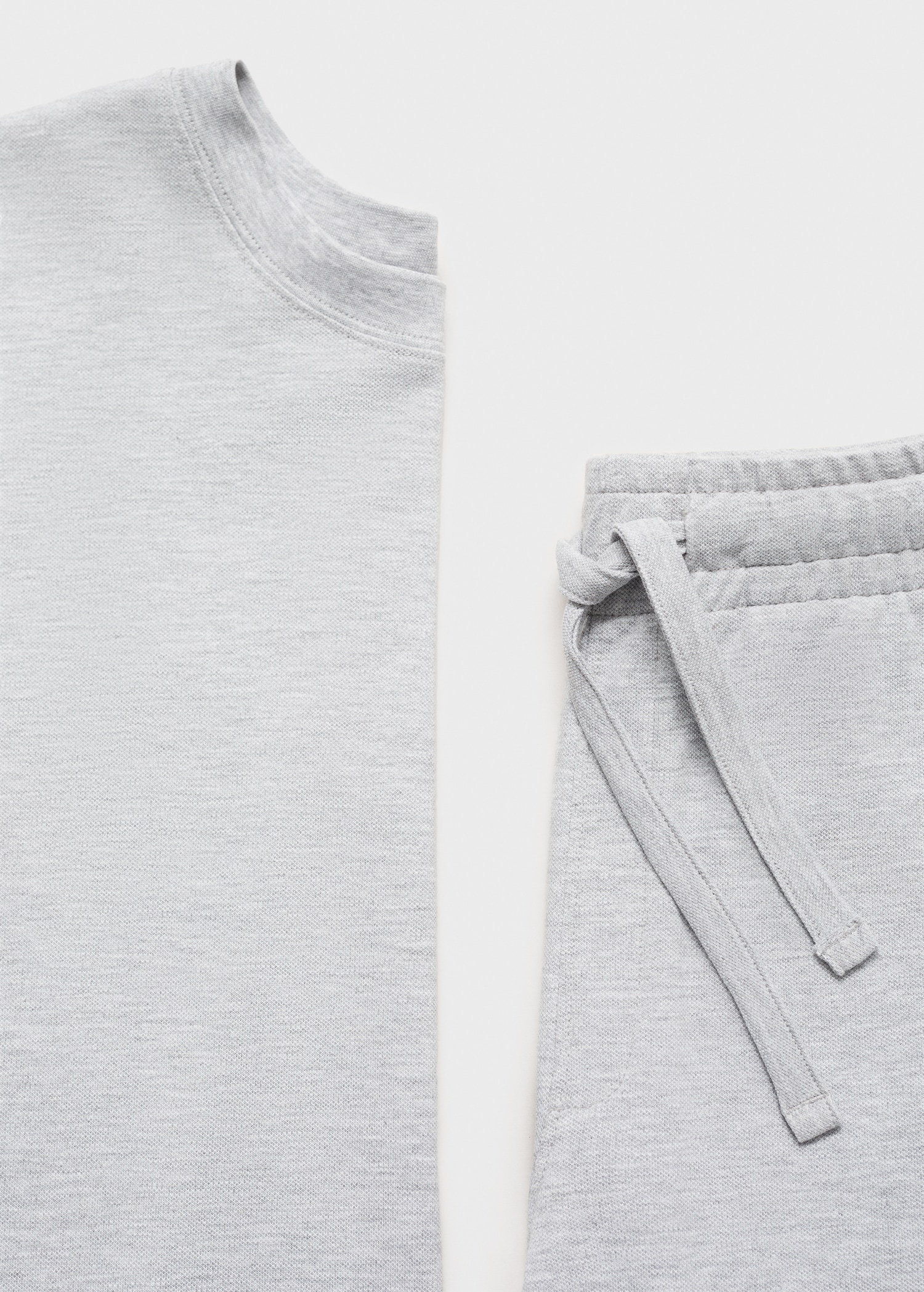 Cotton blend fabric. T-shirt. Bermuda shorts with elastic waist. Drawstring waist. Includes a bag to store the garments