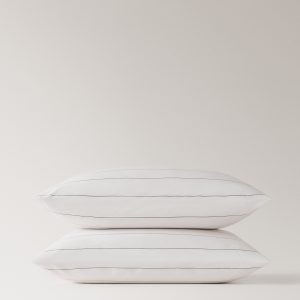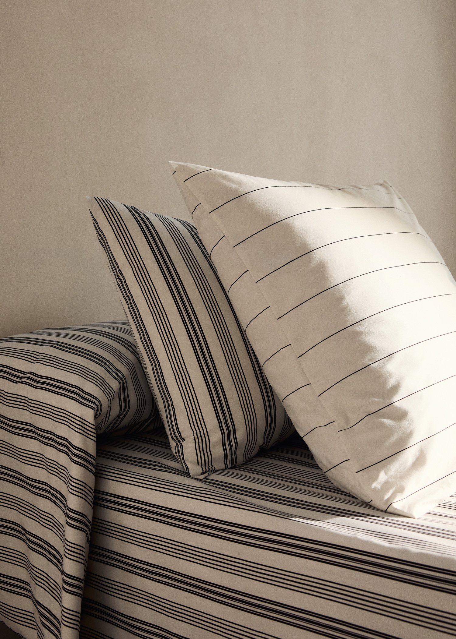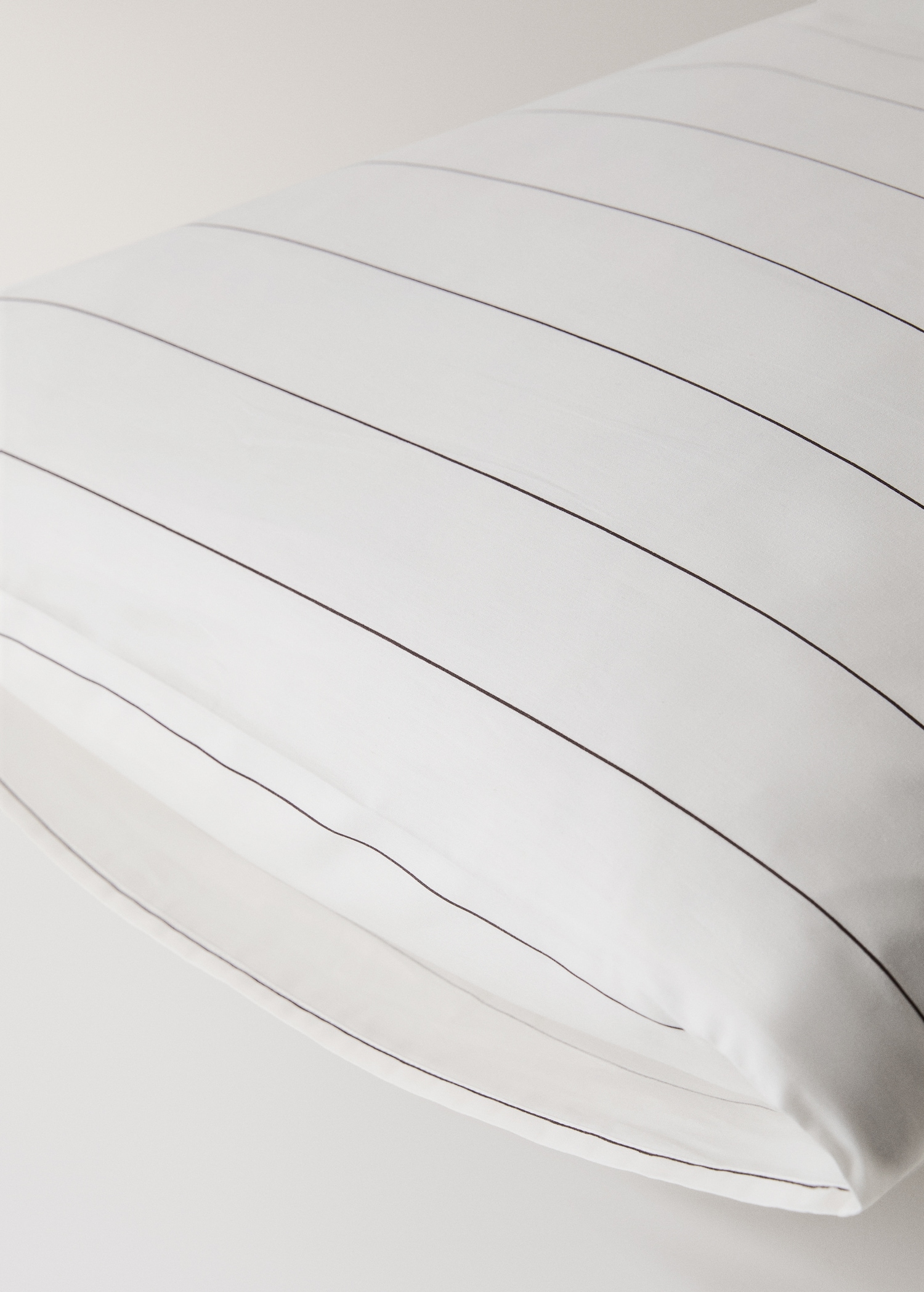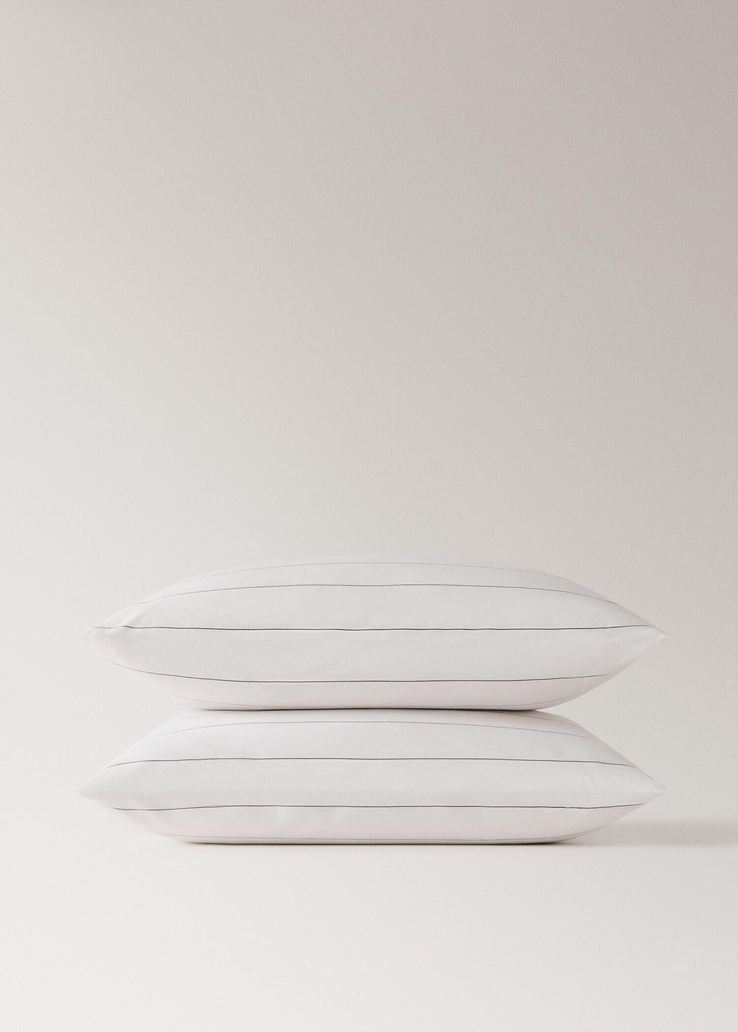 Size: 23.6×23.6 in. Pack of 2. Does not include insert. 100% Cotton. 200 cotton threads offering maximum softness, durability, and breathability, providing a sensation of lightness and smoothness to the touch. Striped print. Pleasant texture. Coordinates with more products from the collection