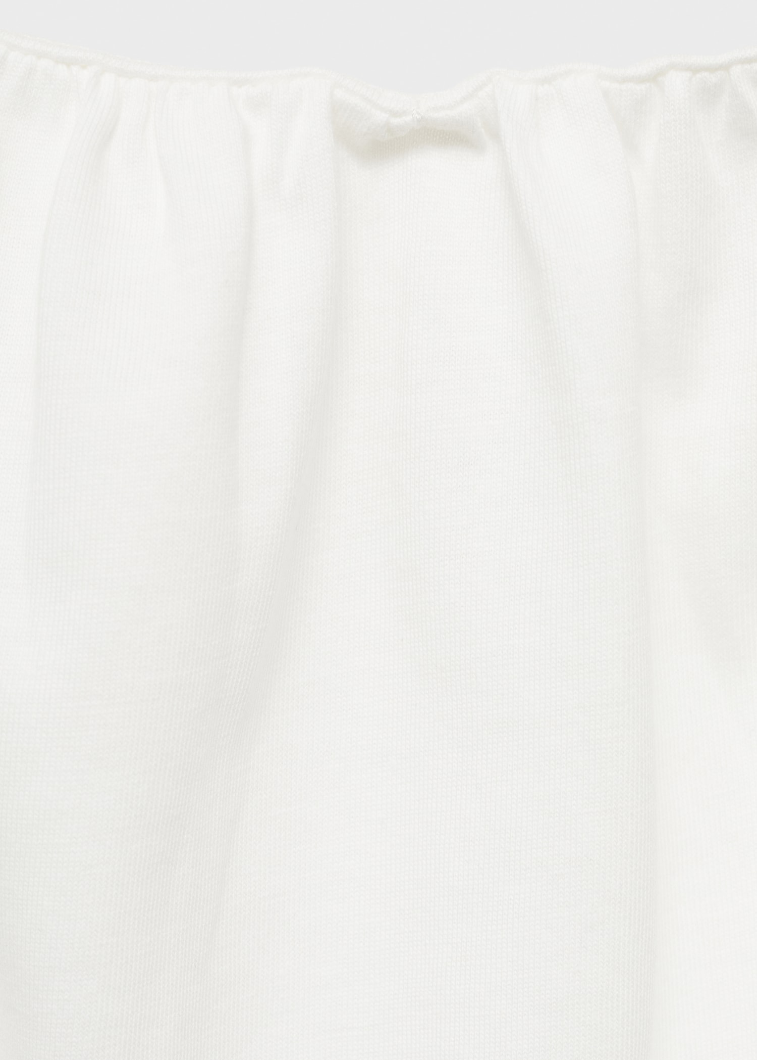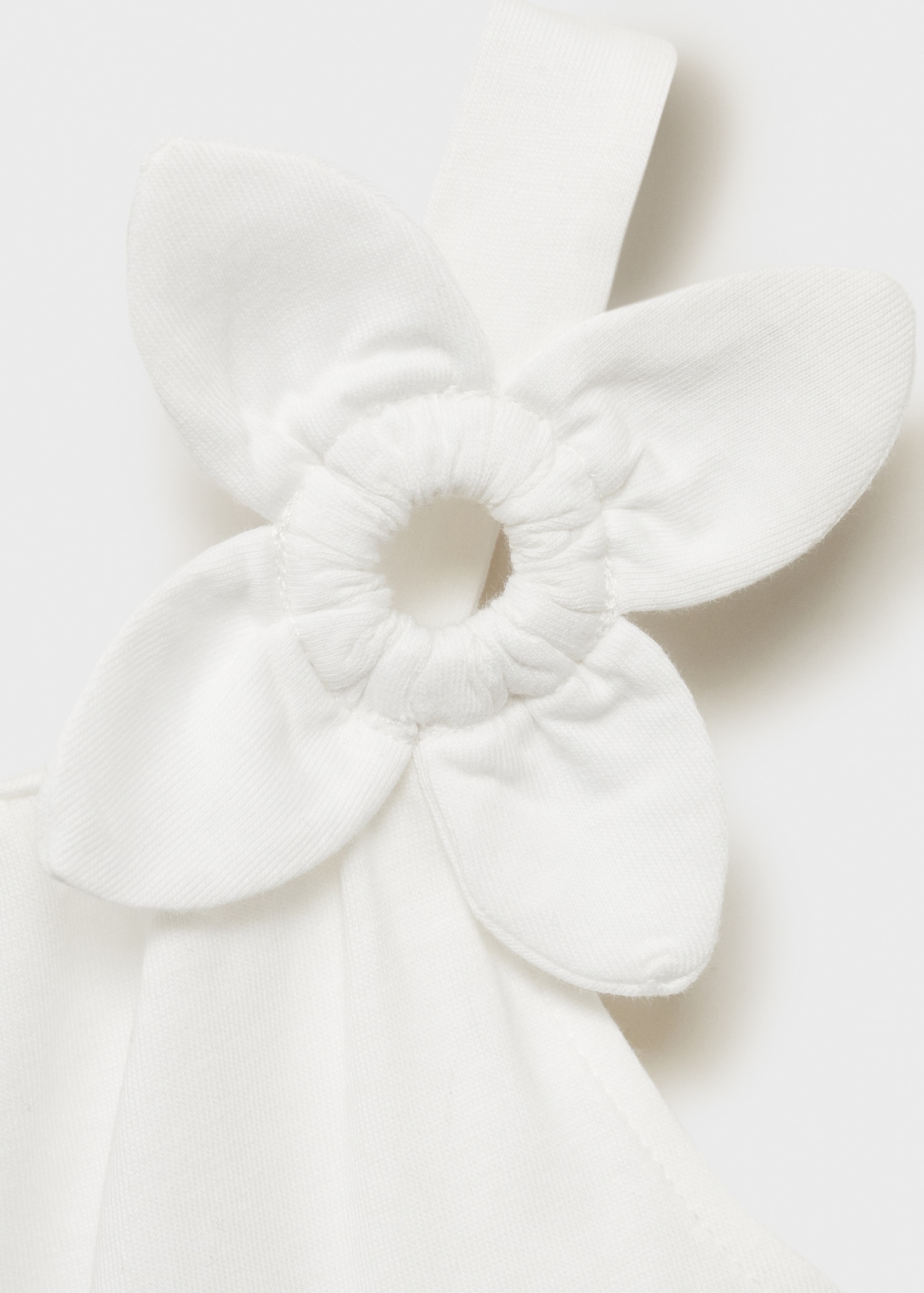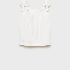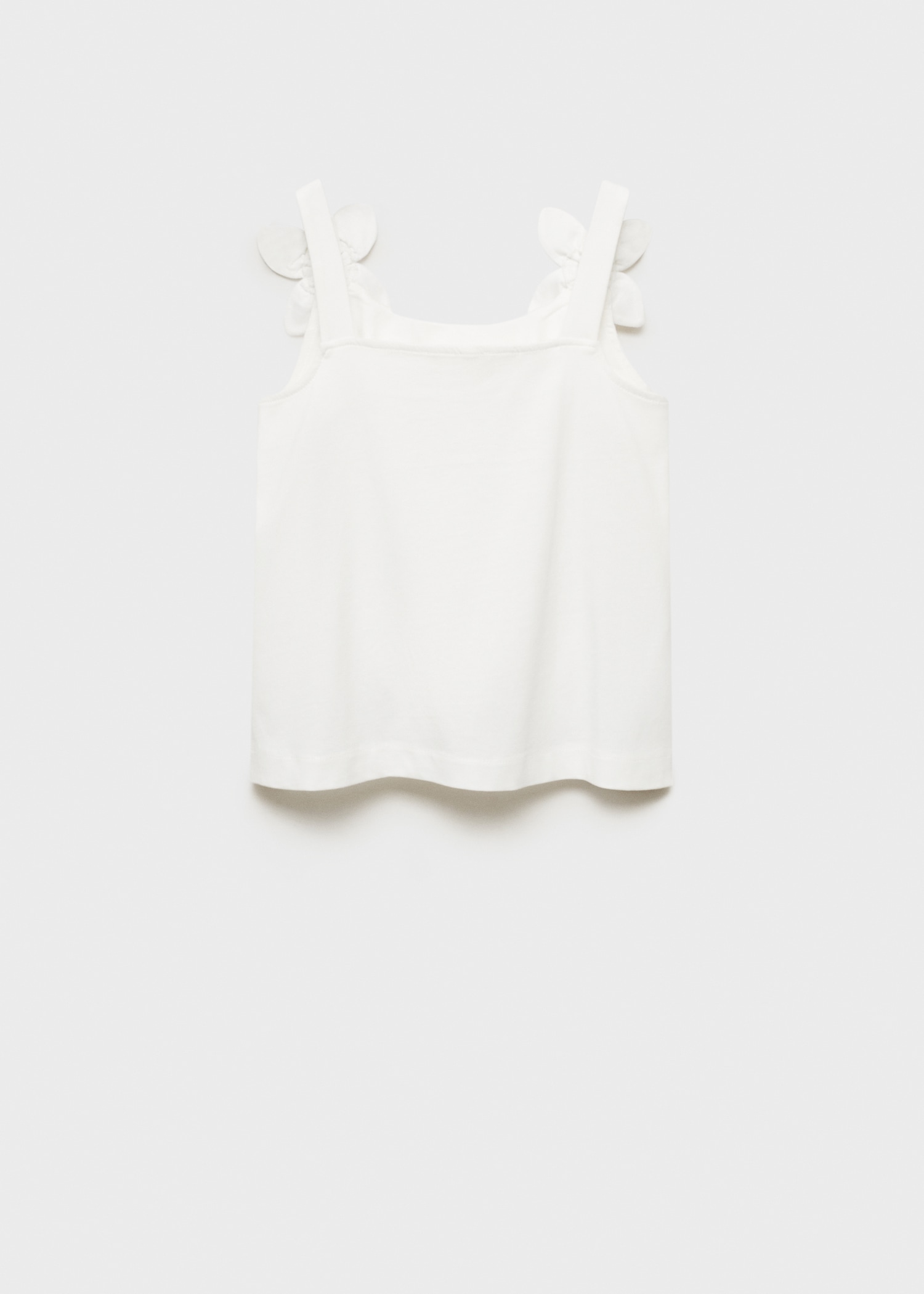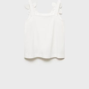100% cotton fabric. Short design. Straight Design. Straight neckline. Thin straps. Top with embroidered flower straps. Ruched detail at the front